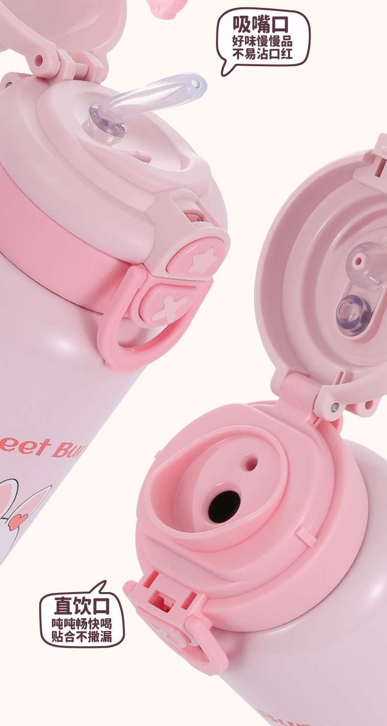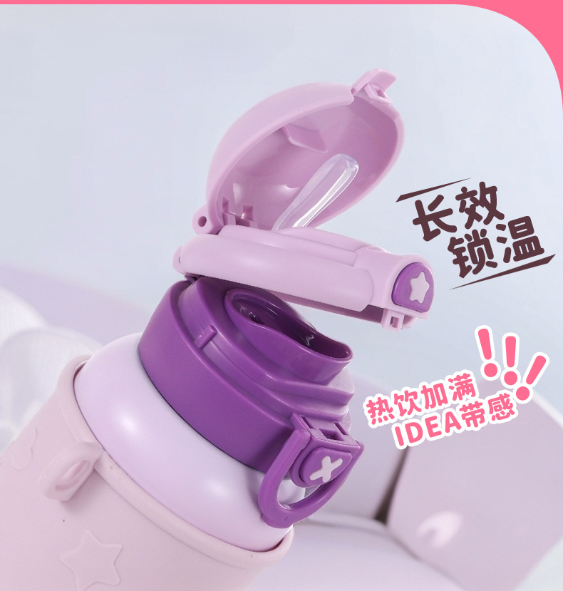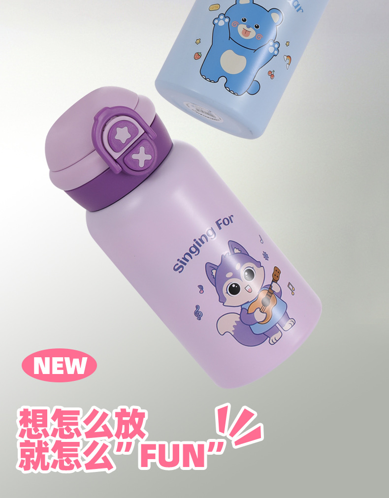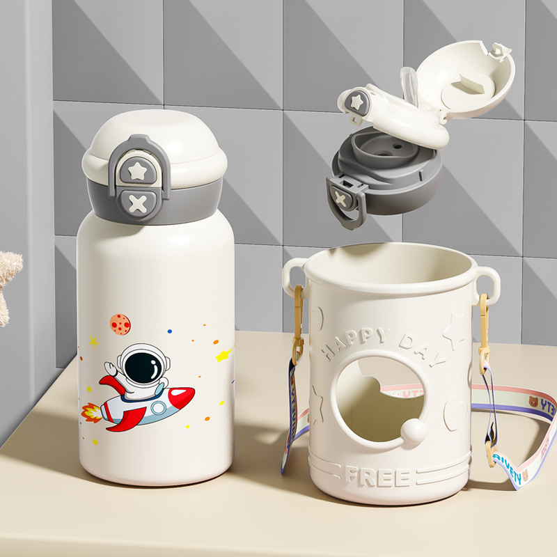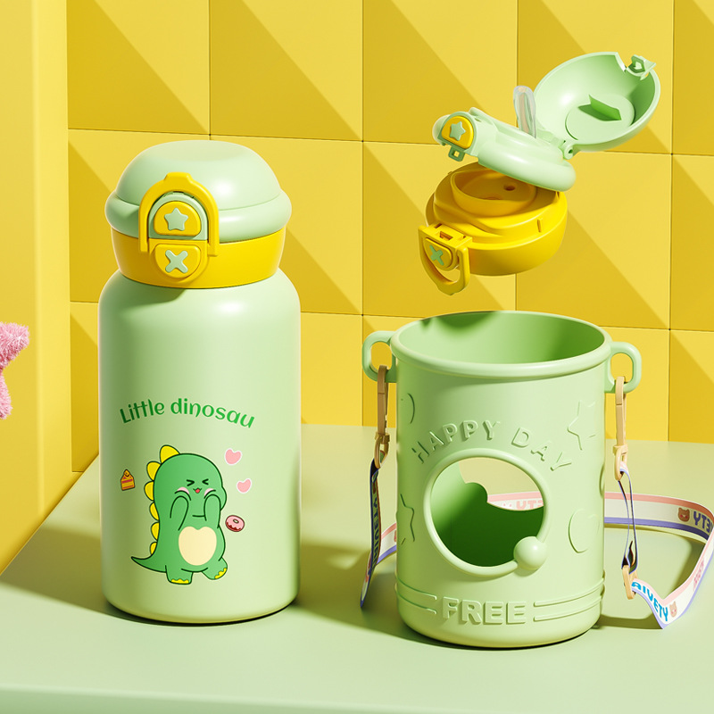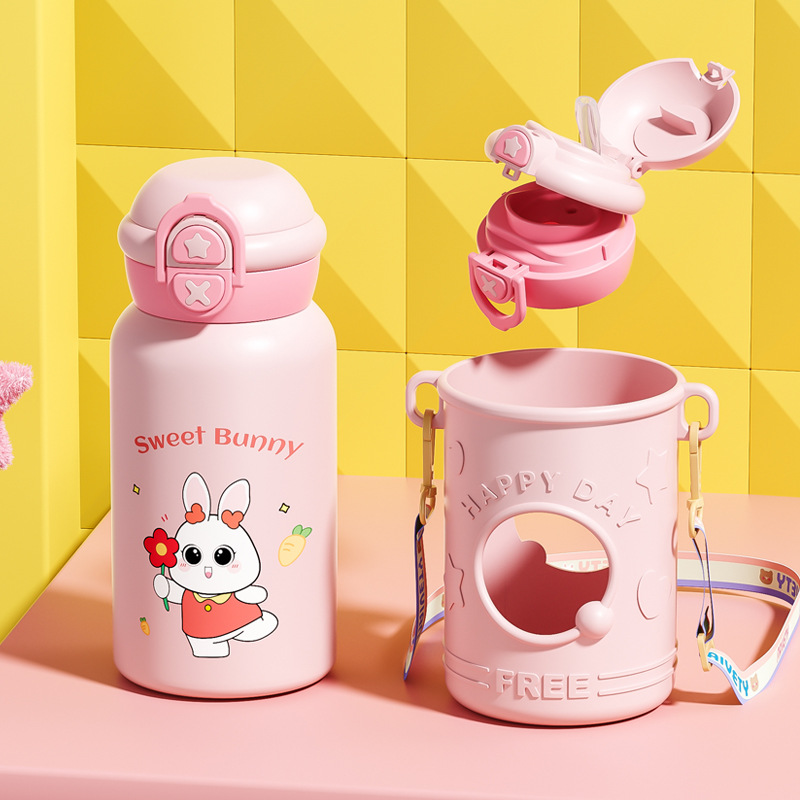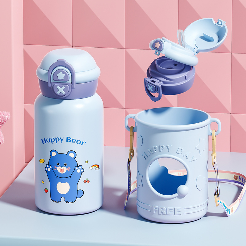 귀여운 총풍 학생 물 컵 316 스테인레스 스틸 어린이 냄비 두 배 음료 귀여운 가죽 케이스 휴대용 바운스 커버 보온병 컵