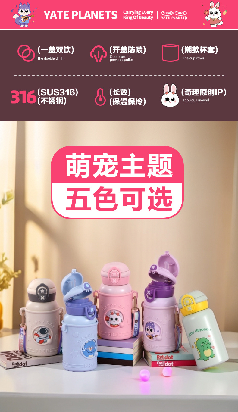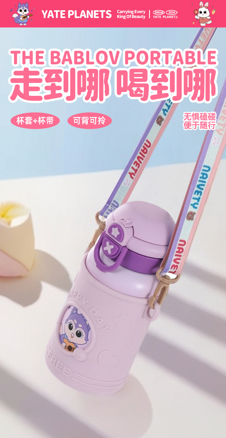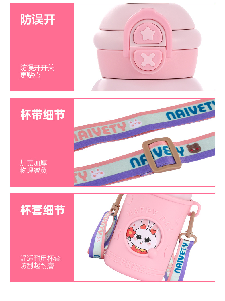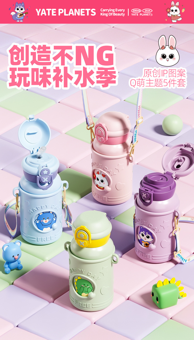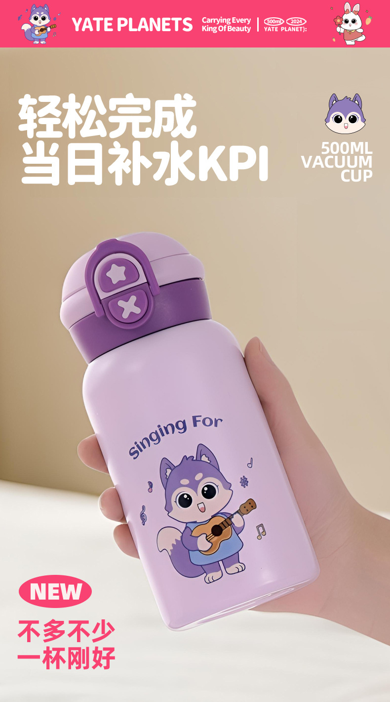 귀여운 총풍 학생 물 컵 316 스테인레스 스틸 어린이 냄비 두 배 음료 귀여운 가죽 케이스 휴대용 바운스 커버 보온병 컵