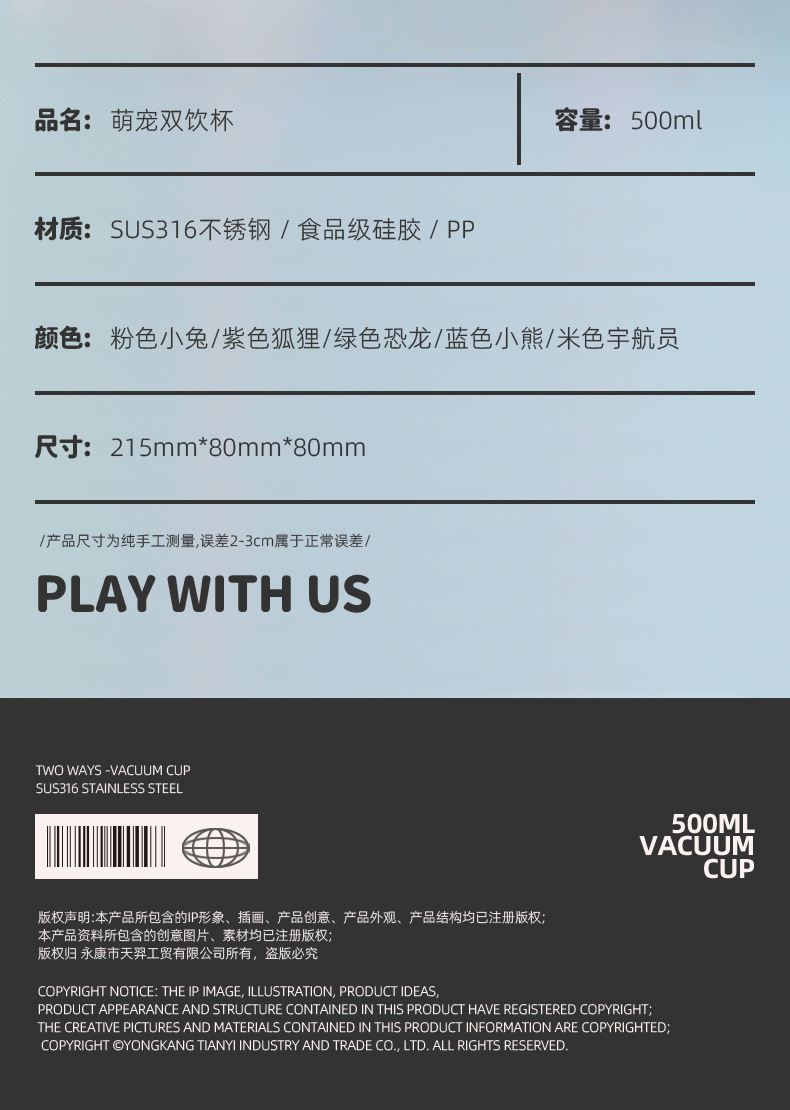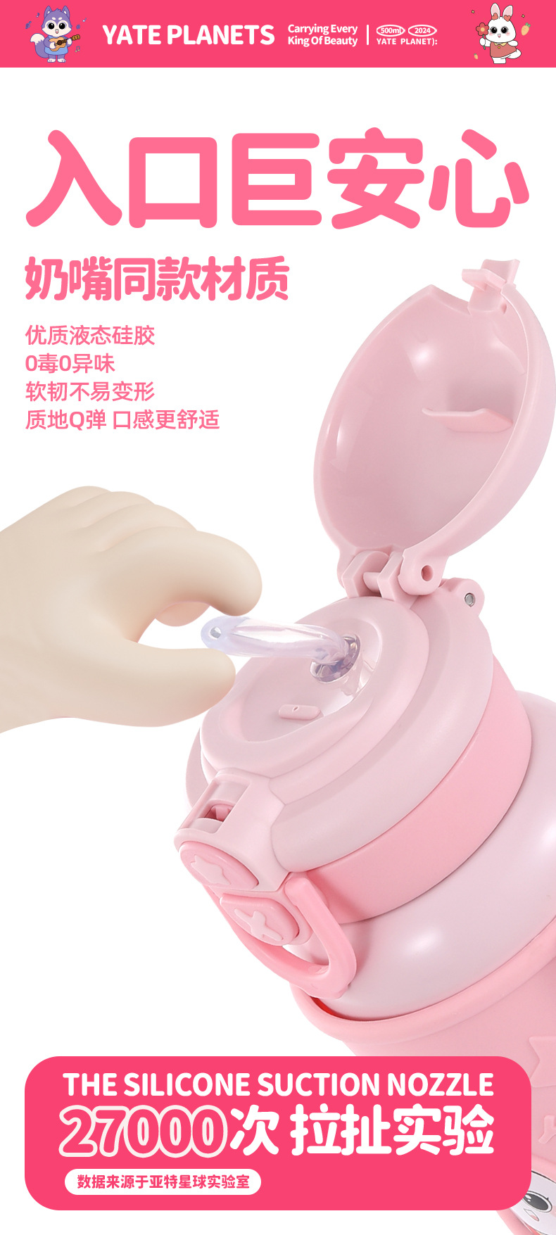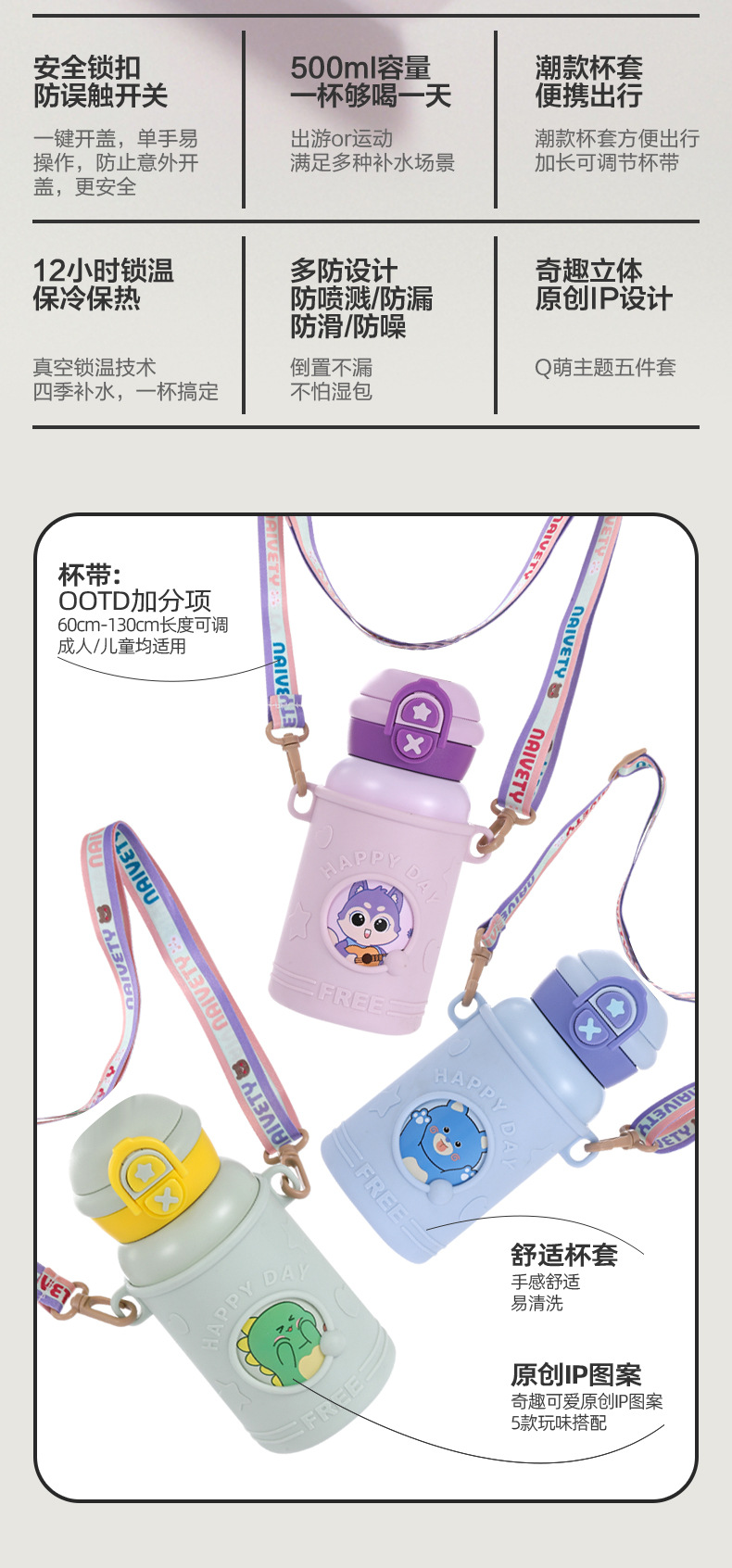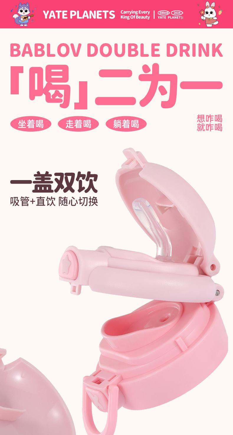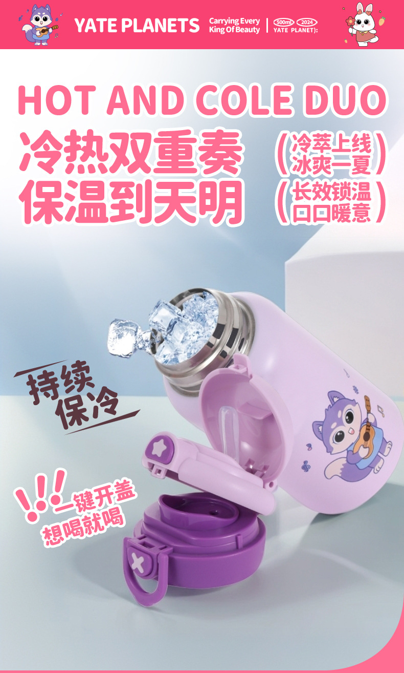 귀여운 총풍 학생 물 컵 316 스테인레스 스틸 어린이 냄비 두 배 음료 귀여운 가죽 케이스 휴대용 바운스 커버 보온병 컵