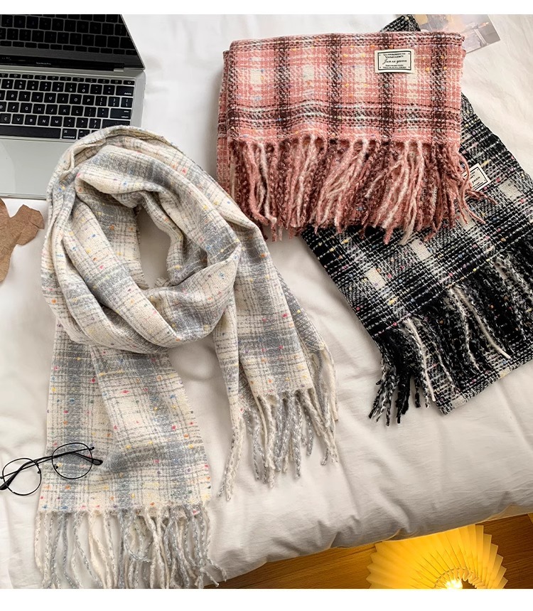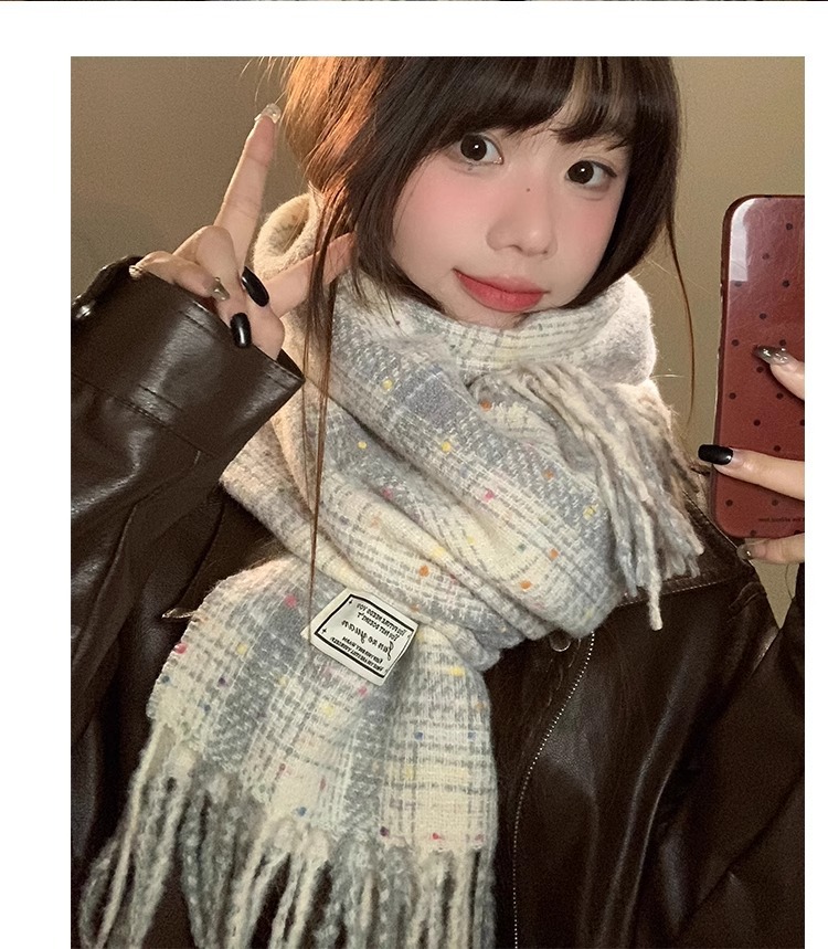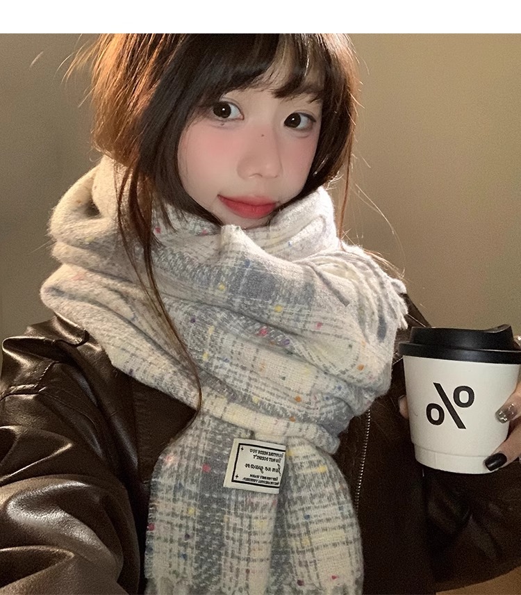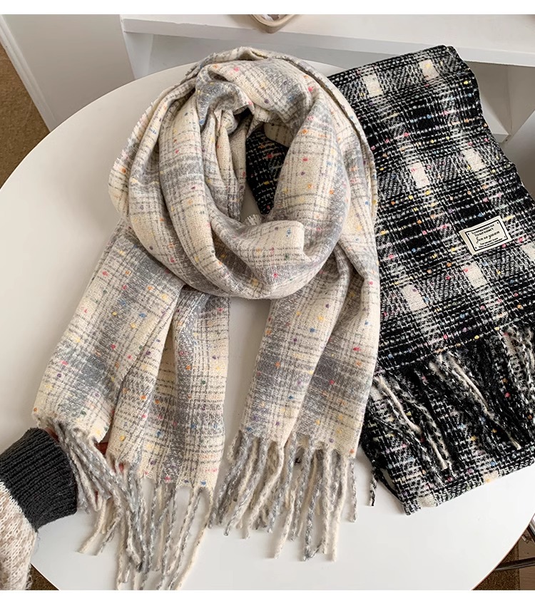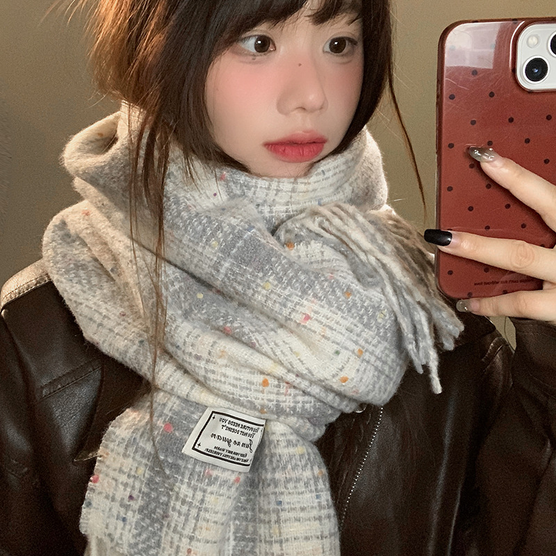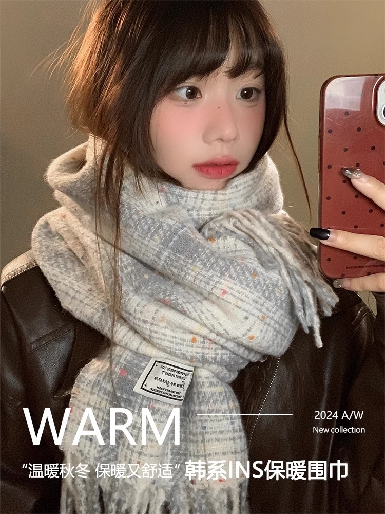 한국식 Ins 따뜻한 스카프 여자 가을 겨울 2024 뉴 컬러 웨이브 도트 모방 캐시미어 올 매치 듀얼 사용 목도리 스카프