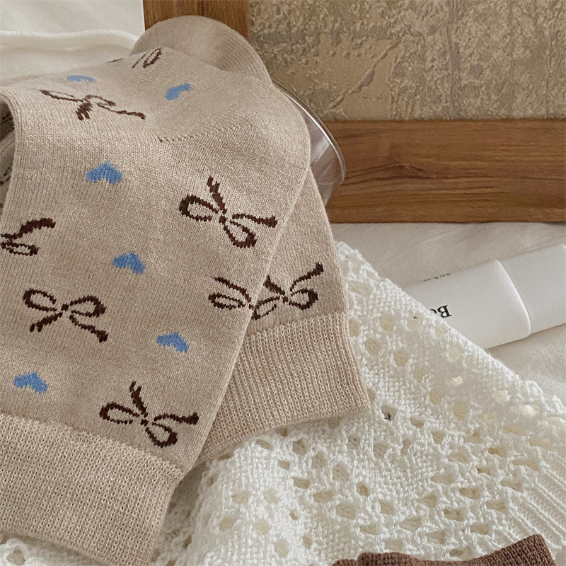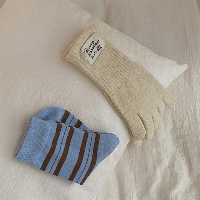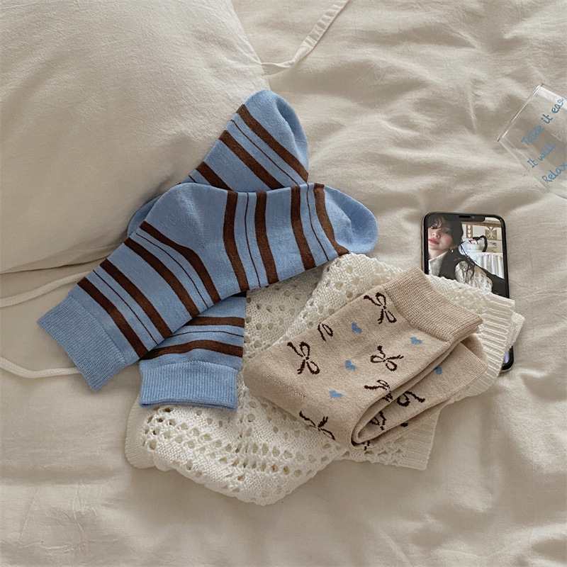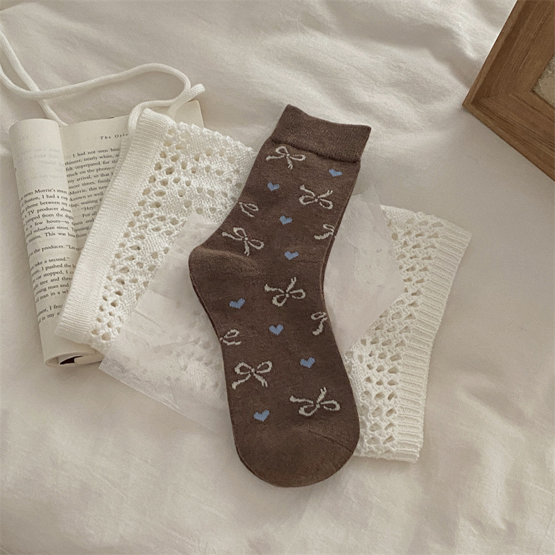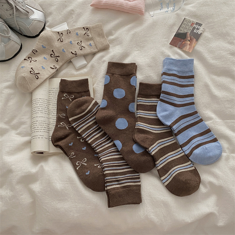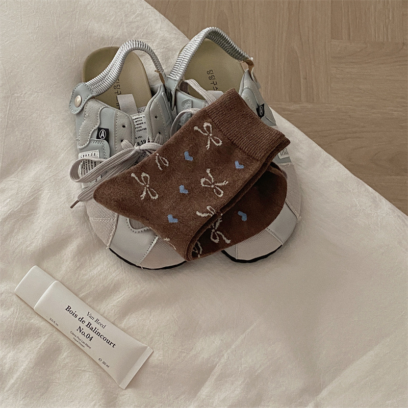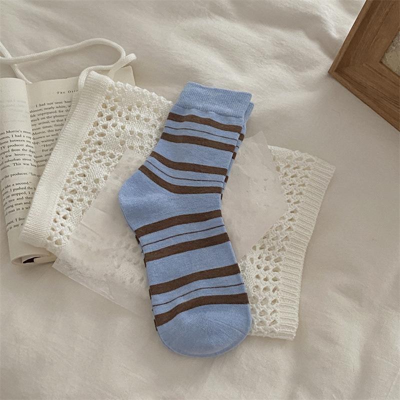 양말은 가을과 겨울 두꺼운 다크 브라운 줄무늬 양모 미드 튜브 양말 활 뼈없는 스타킹 Maillard 여성용 양말스토어 가기