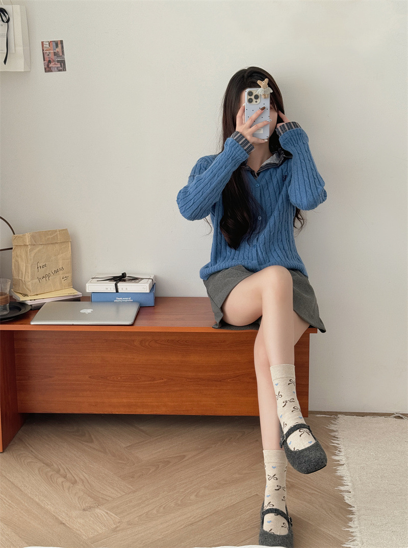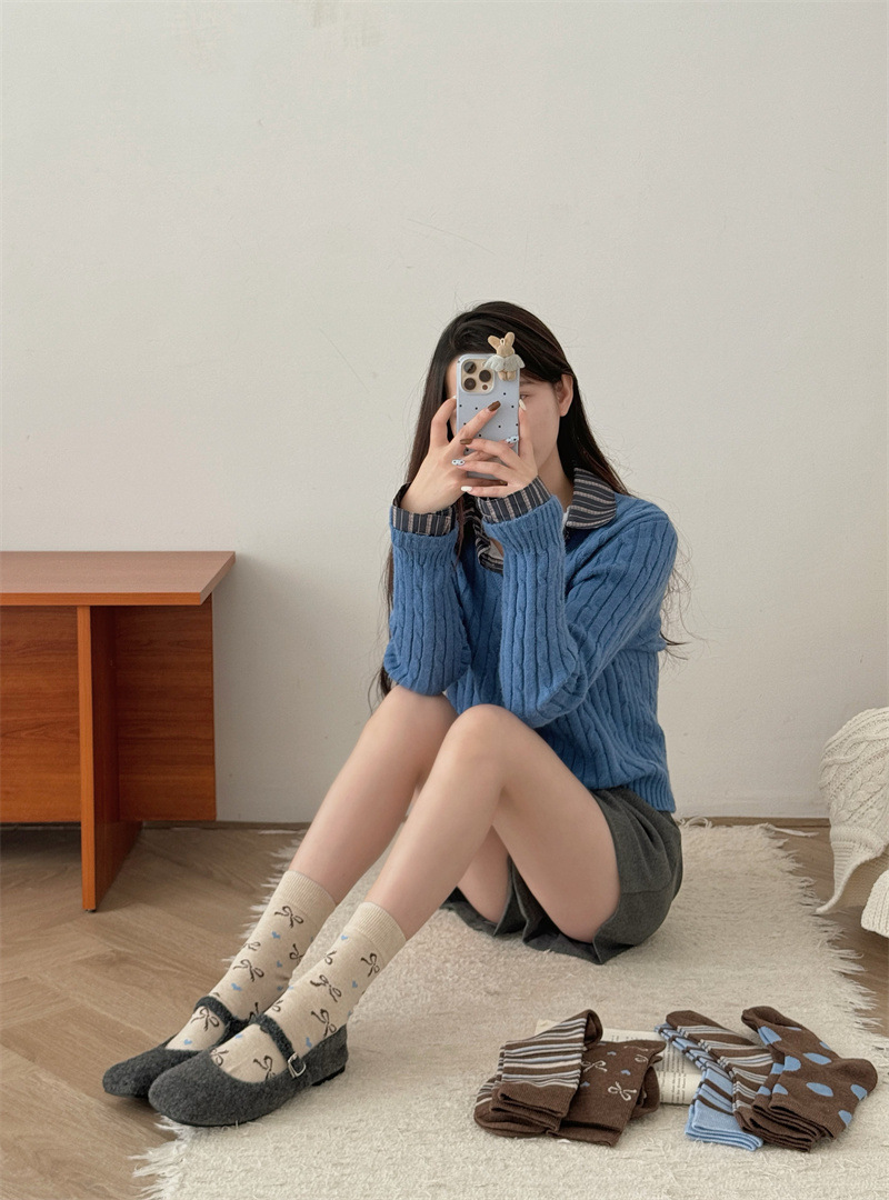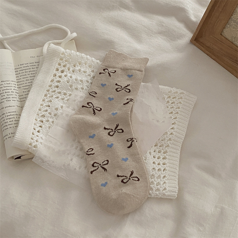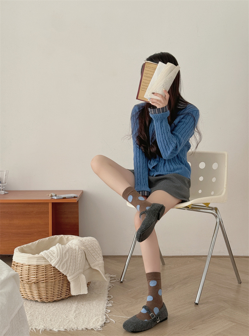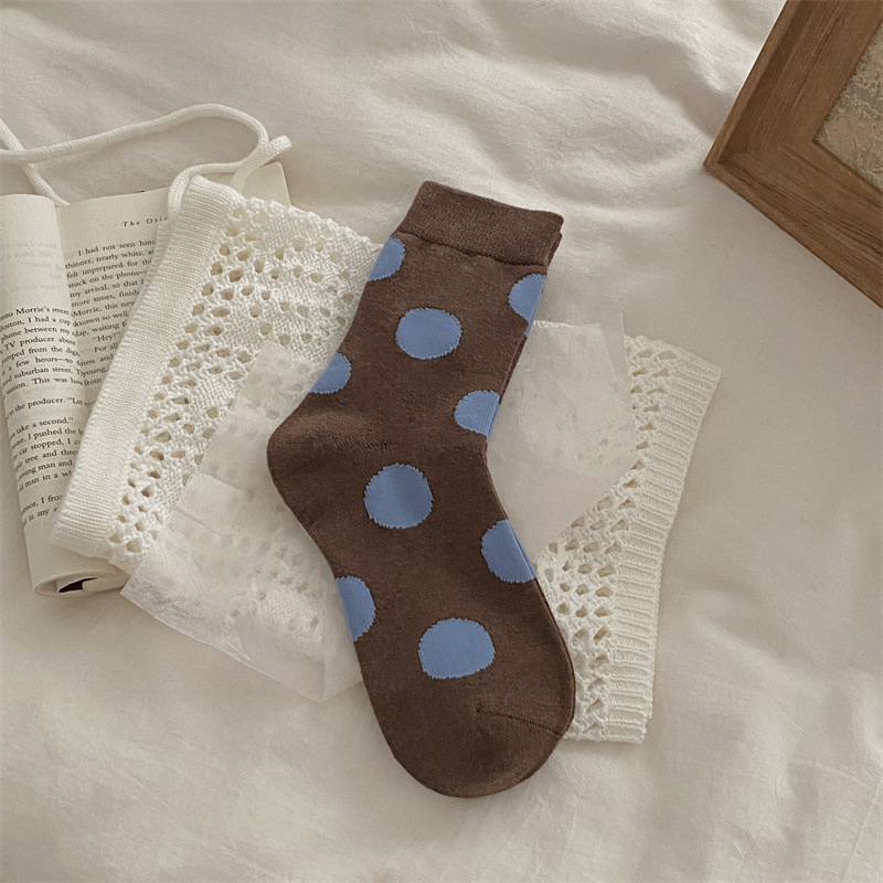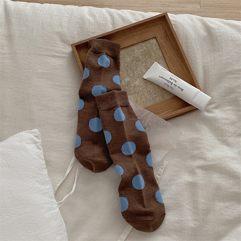 양말은 가을과 겨울 두꺼운 다크 브라운 줄무늬 양모 미드 튜브 양말 활 뼈없는 스타킹 Maillard 여성용 양말스토어 가기