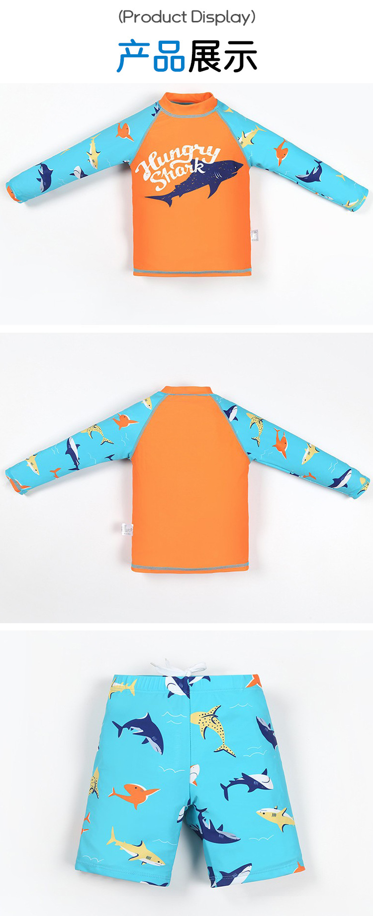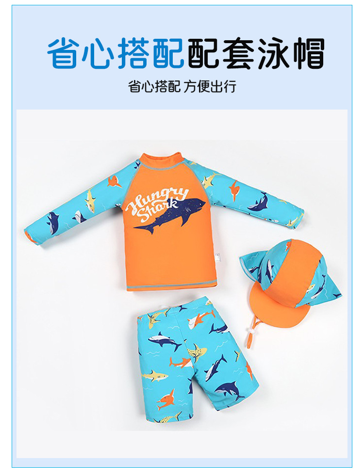 크로스보더 아동용 3피스 수영복 소년 스플릿 속건성 전문 자외선 차단제 중대형 아동 및 청소년 수영복 세트스토어 가기