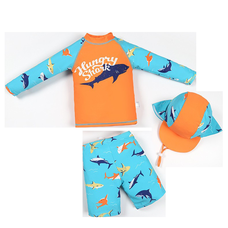 크로스보더 아동용 3피스 수영복 소년 스플릿 속건성 전문 자외선 차단제 중대형 아동 및 청소년 수영복 세트