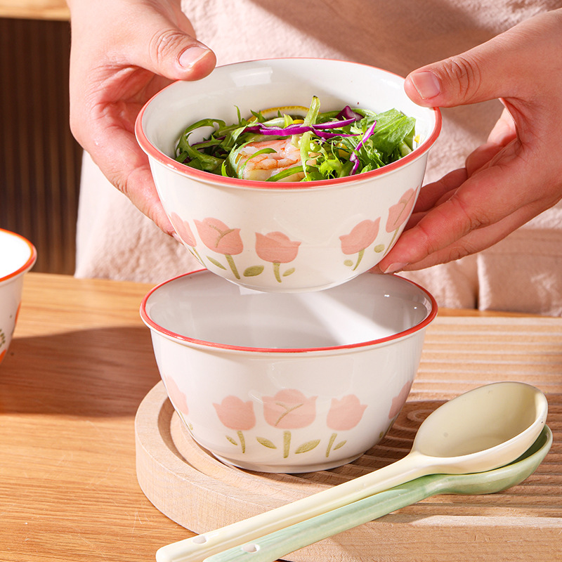 인터넷 축하 만화 세라믹 그릇 유약 컬러 식기 가정용 밥 그릇 Nink 그릇 귀여운 학생 그릇 Sweetheart Bowl 전자 레인지스토어 가기