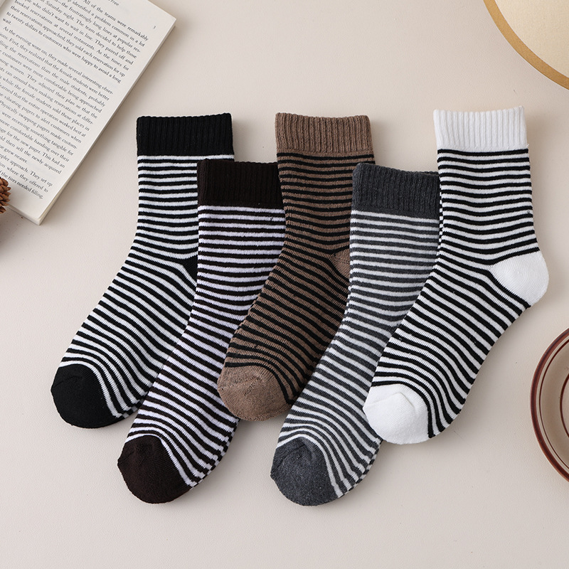 국경 양말 여성 24 가을과 겨울 새로운 패션 양말 일본 줄무늬 조커 여성 양말 땀 흡수성 따뜻한 양말 도매