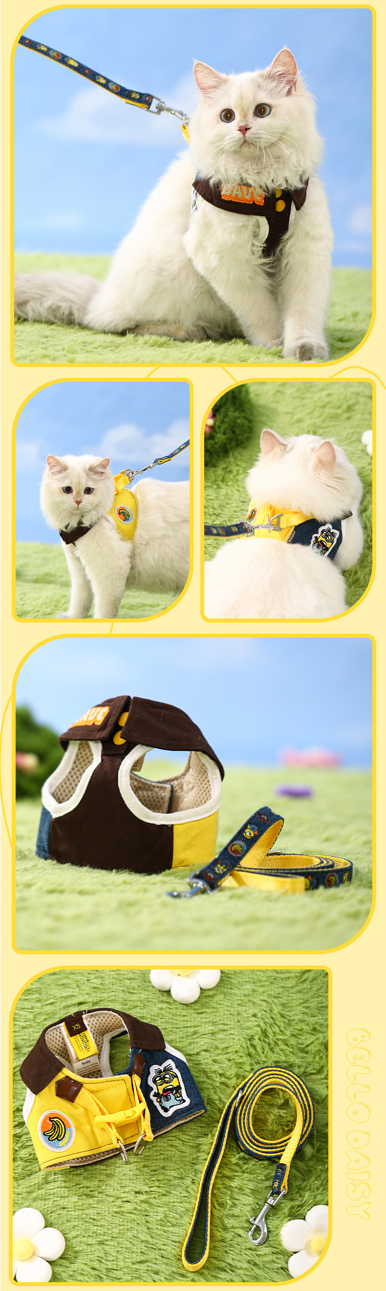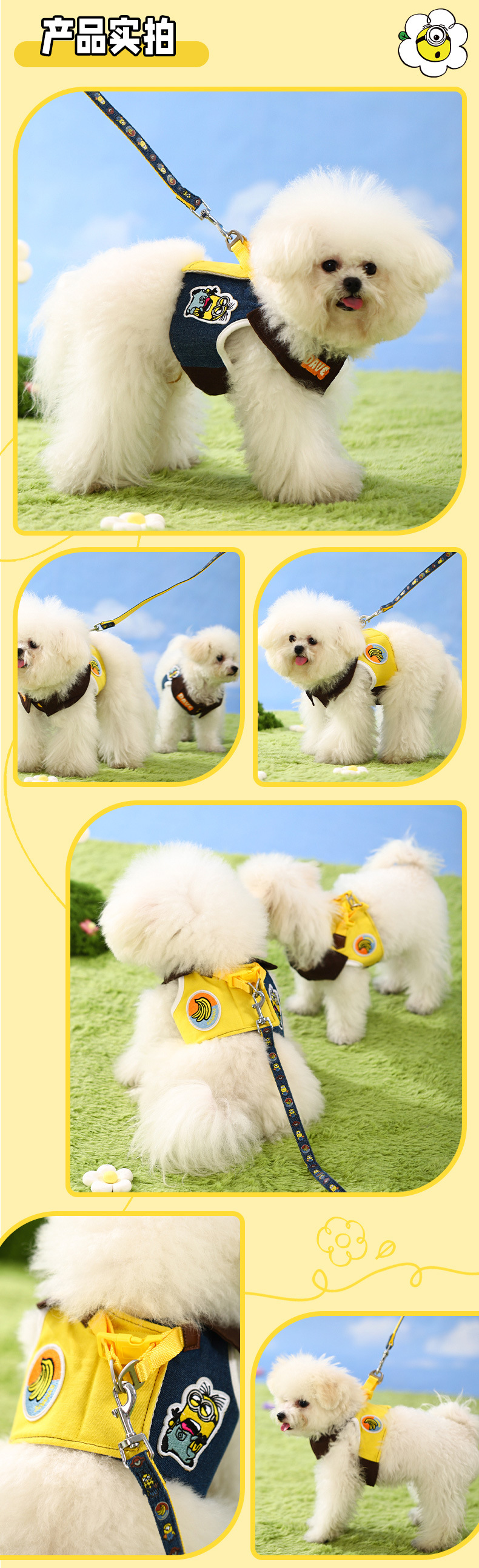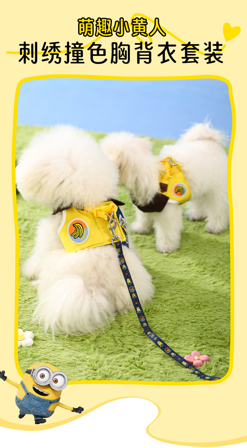 미니언즈 미니언 | Meng Fun 수 놓은 대조 가슴 코트 세트 강아지 걷는 체인 개 가죽 끈 개스토어 가기