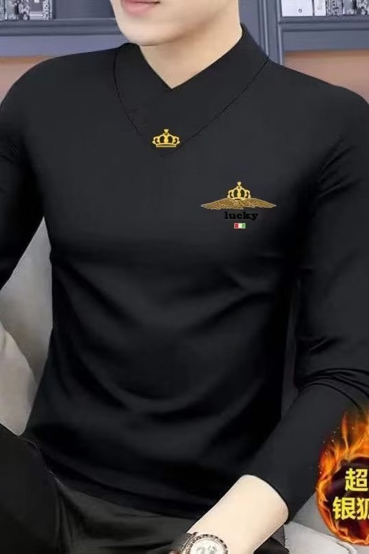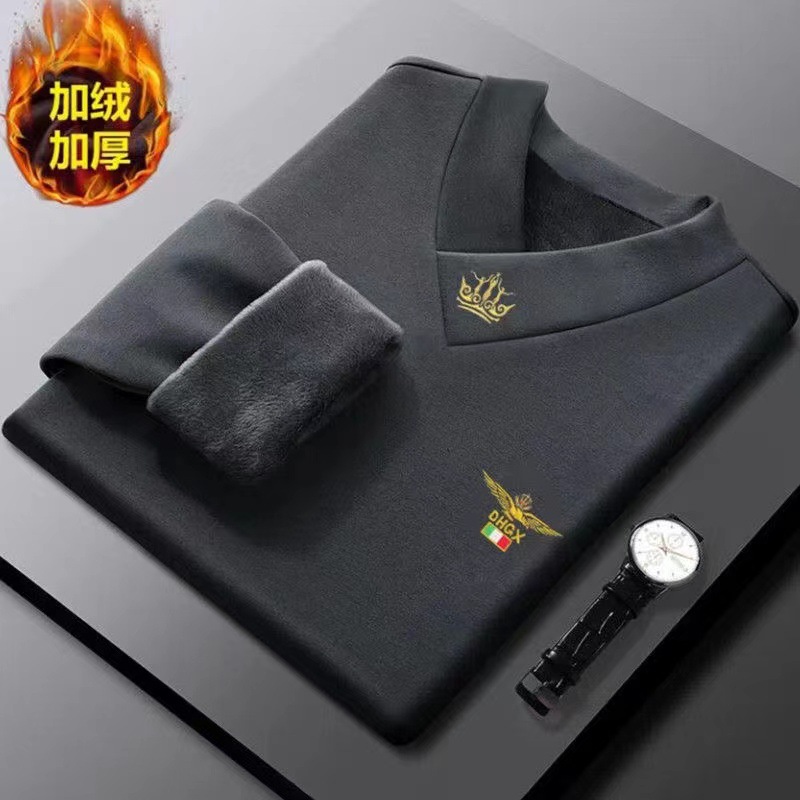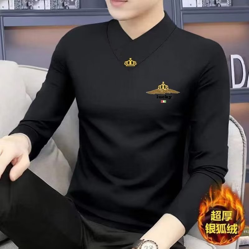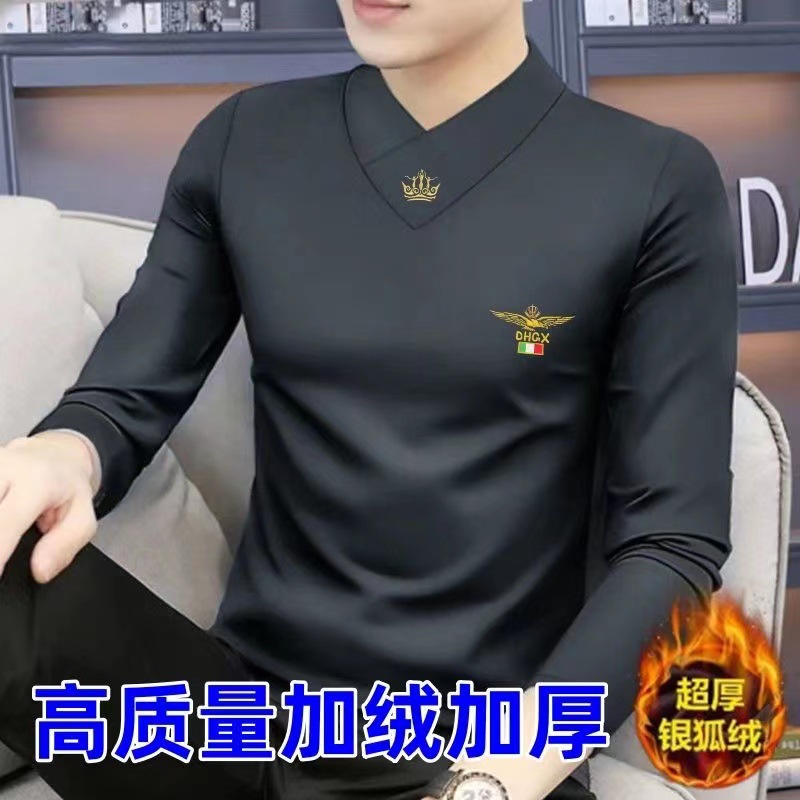 가을과 겨울 새로운 남성용 긴팔 티셔츠 브이넥 슬림핏 하이 엔드 따뜻한베이스 셔츠 기모 두꺼운 속옷 트렌디 탑 옷