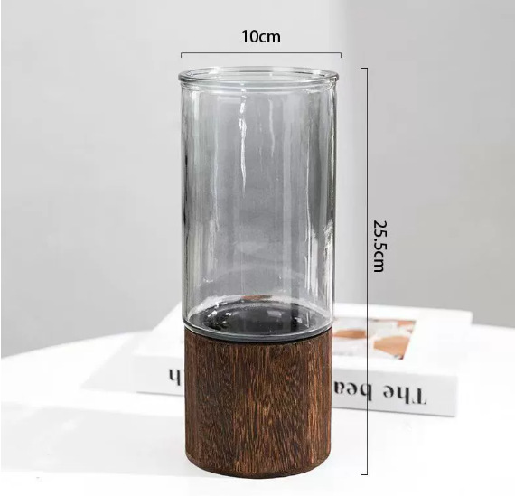 무료 배송 중세풍 나무 받침대 유리 꽃병 ins 투명 꽃꽂이 수경재배 장식품 화분 가정용 녹색 식물
