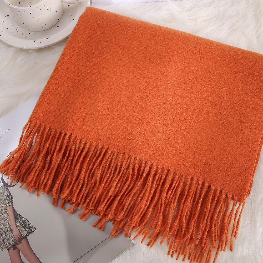 단색 중간 길이 모조 캐시미어 스카프 다용도 숄 여성용 겨울 보온 두꺼운 목도리 고급스러운 패션 다용도