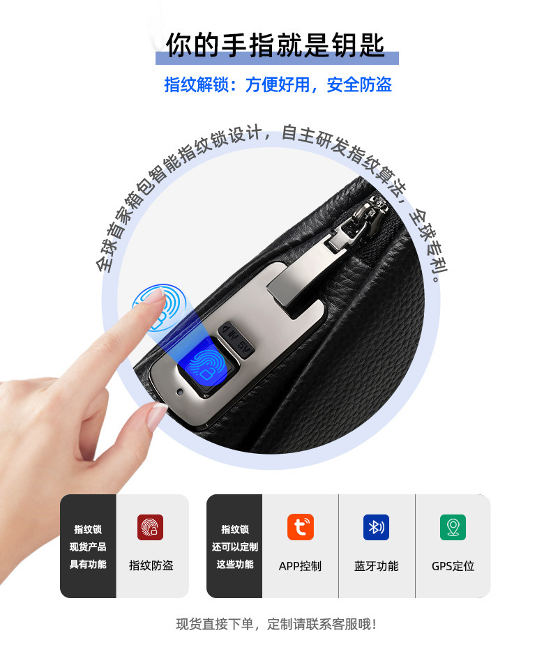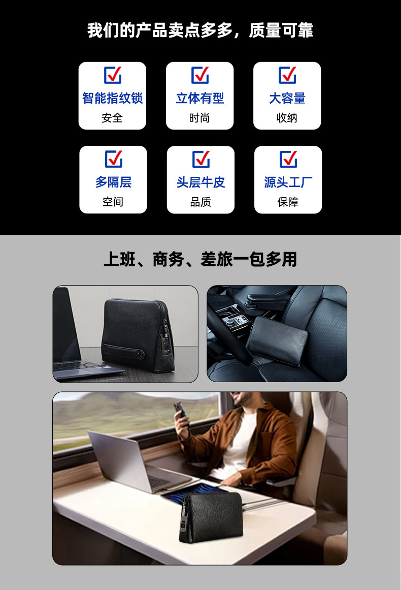 FIPILOCK 스마트 지문 잠금 클러치 백 남성용 고급 센스 핸드백 크로스 보더 폭발성 하이 엔드 가죽 클러치 백