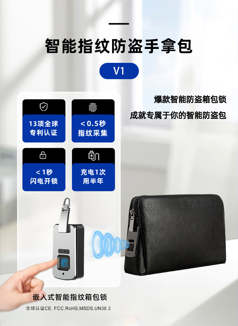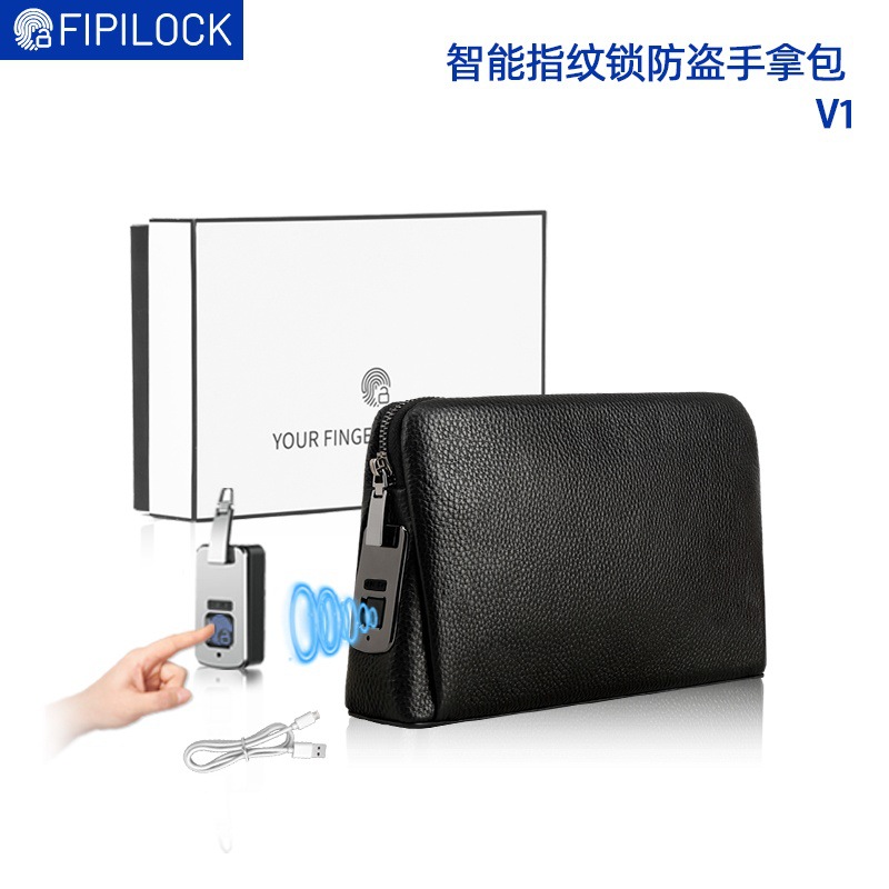 FIPILOCK 스마트 지문 잠금 클러치 백 남성용 고급 센스 핸드백 크로스 보더 폭발성 하이 엔드 가죽 클러치 백스토어 가기