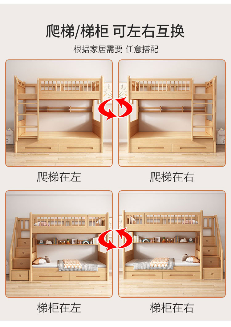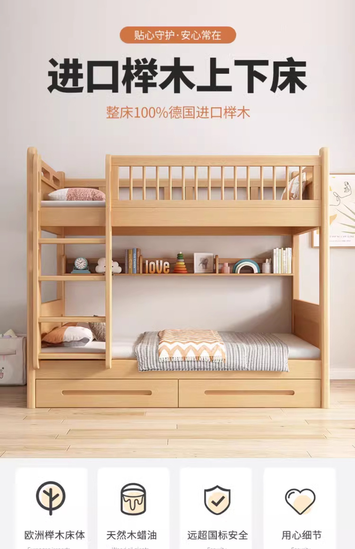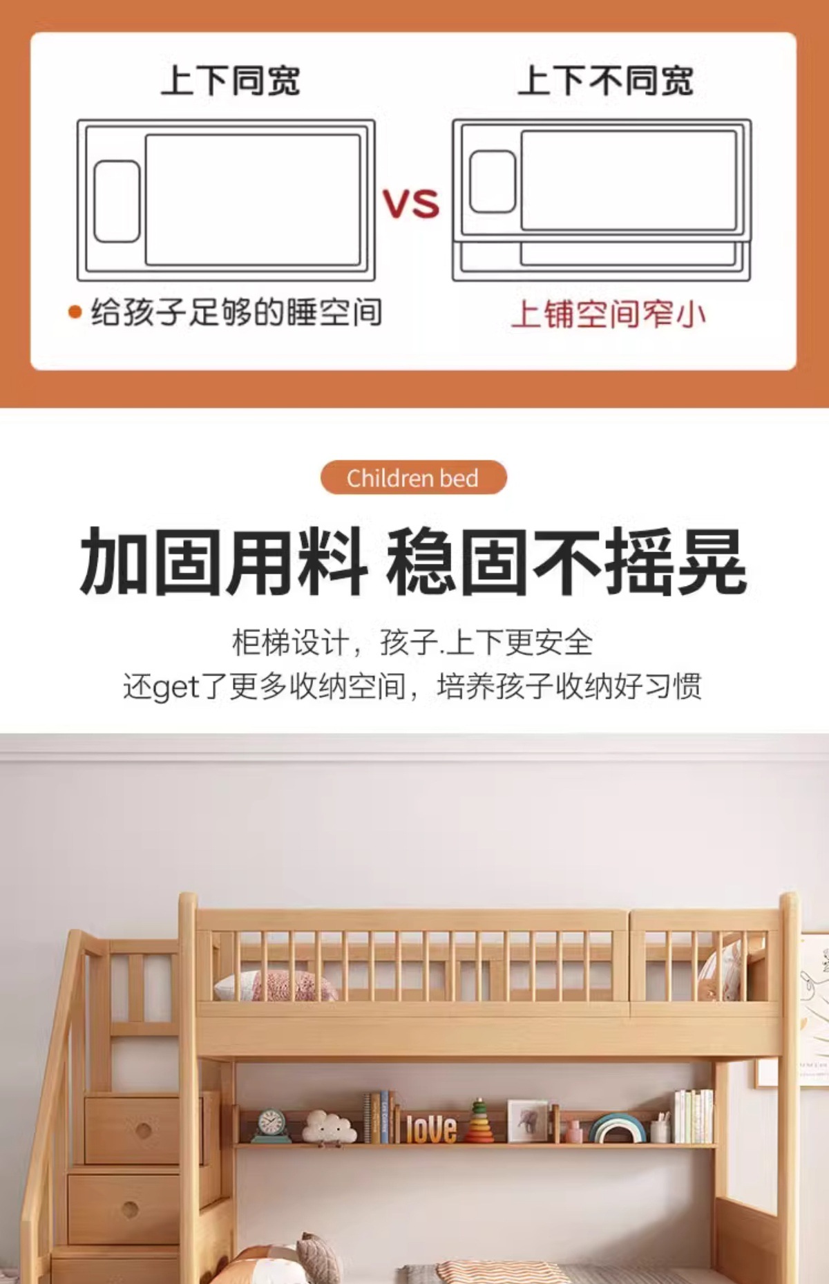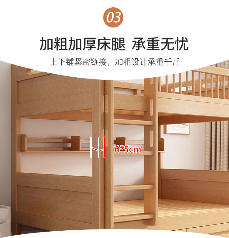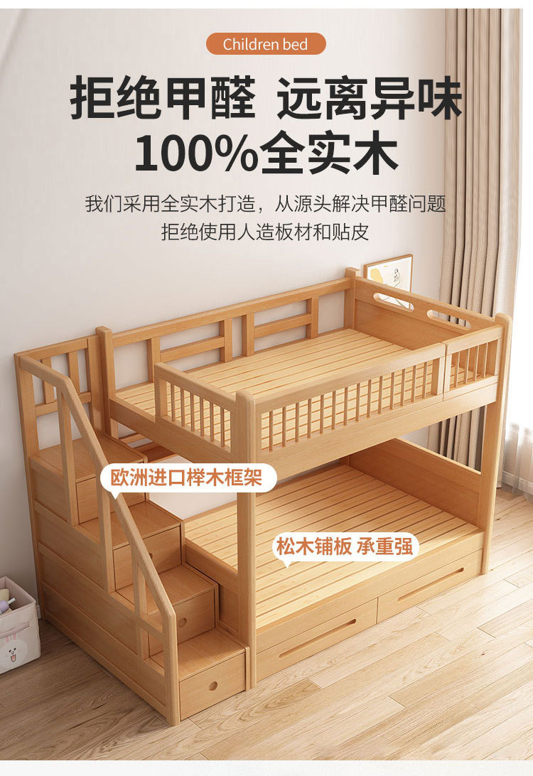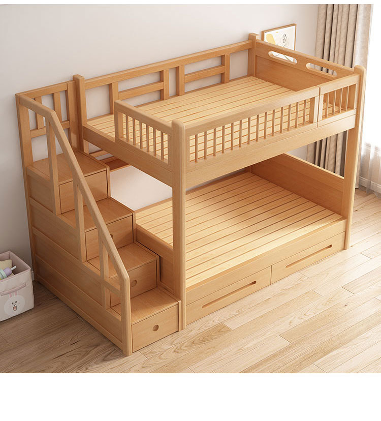 너도밤 나무 기숙사 침대 침대 같은 폭 2 층 침대 풀 솔리드 우드 더블 레이어 어린이 벙크 W18스토어 가기