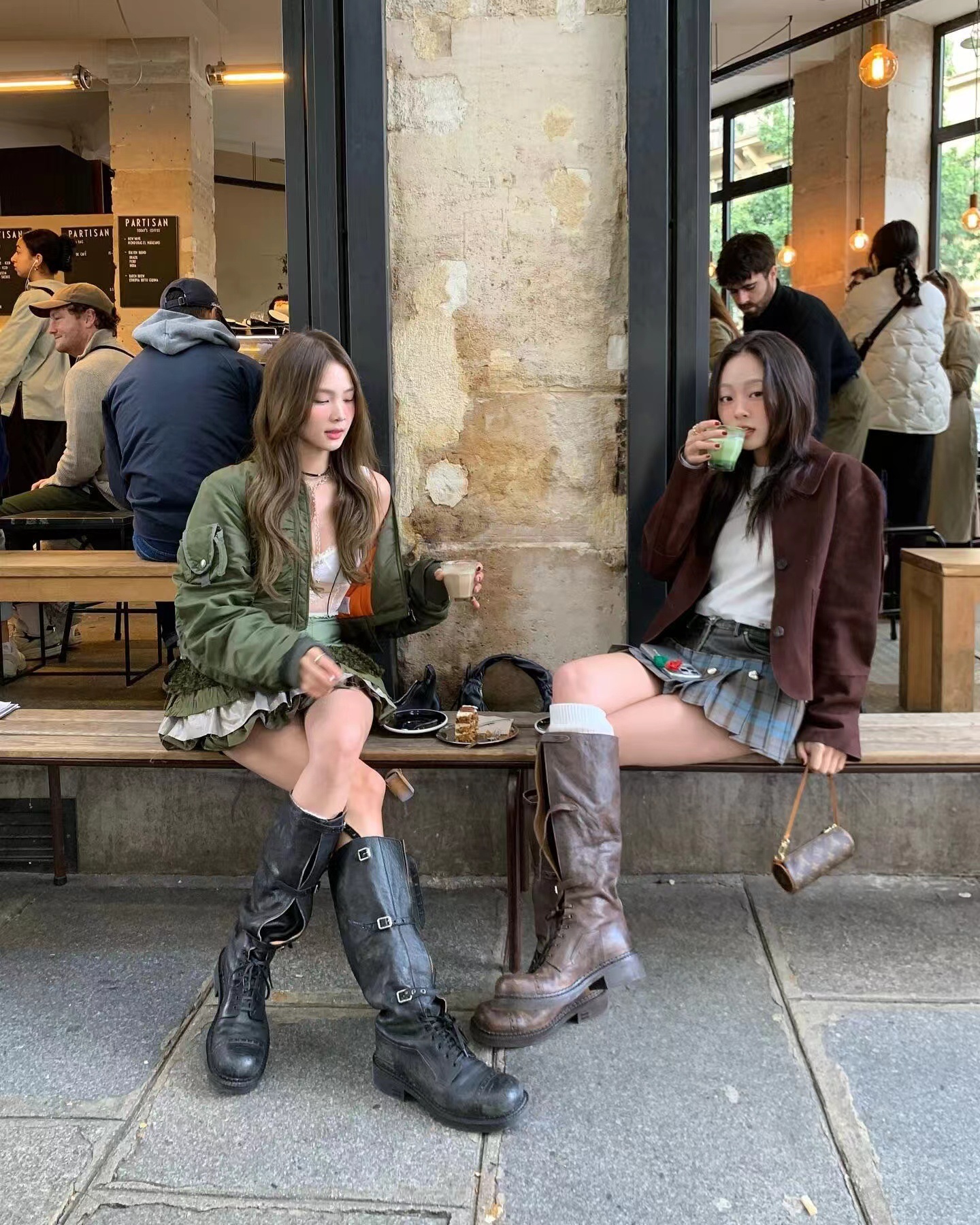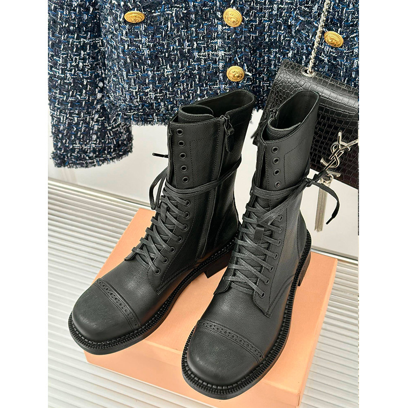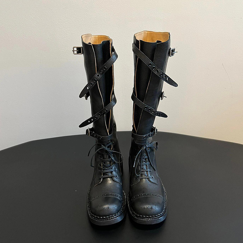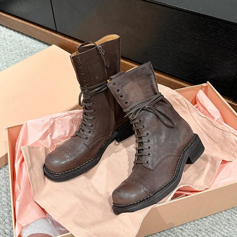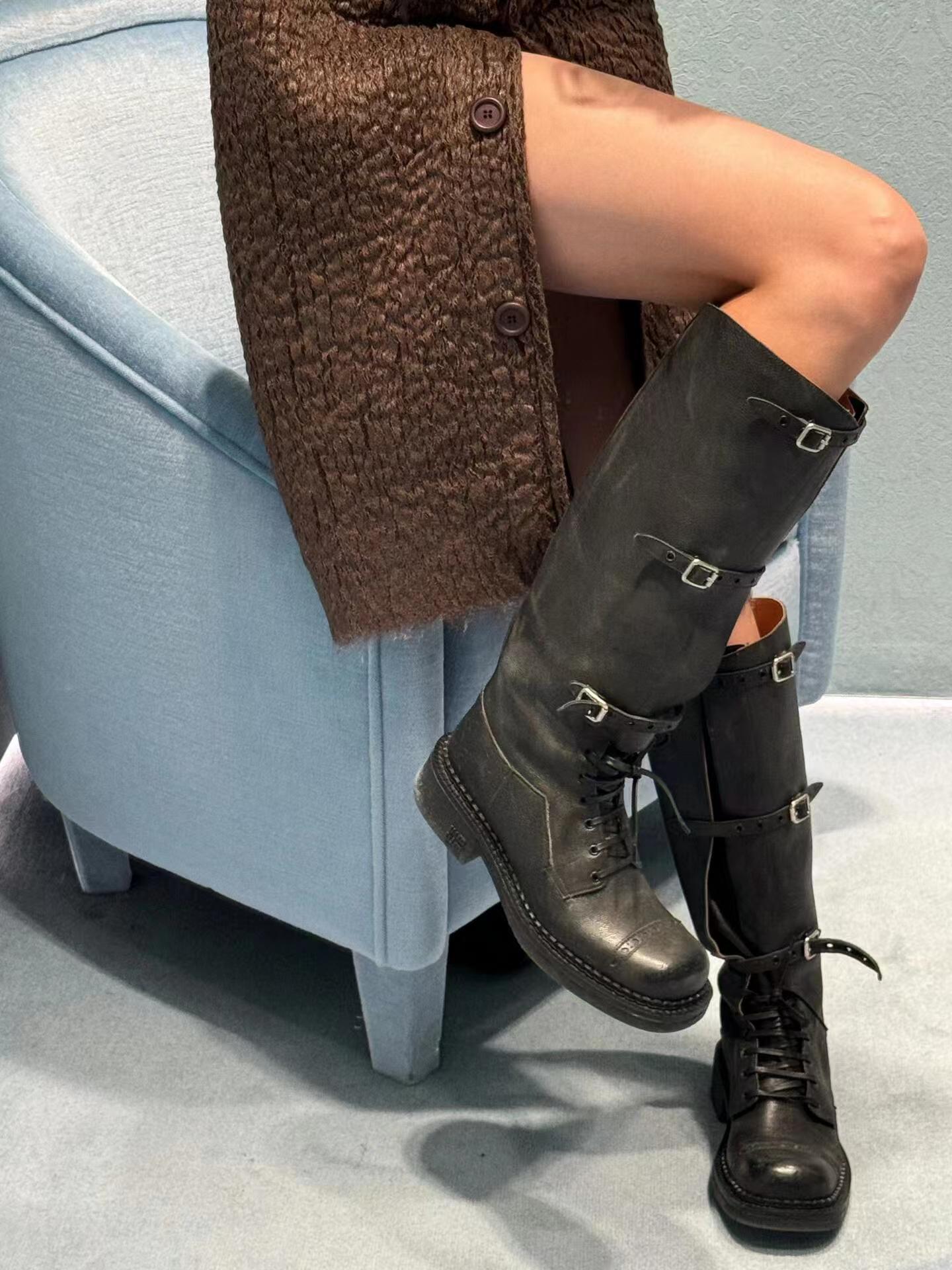 Cowhide 버전 Retro miu ~ 홈 강화 패션 부츠 여성용 2024 새로운 스타일 부츠 벨트 버클 올드 나이츠 부츠스토어 가기