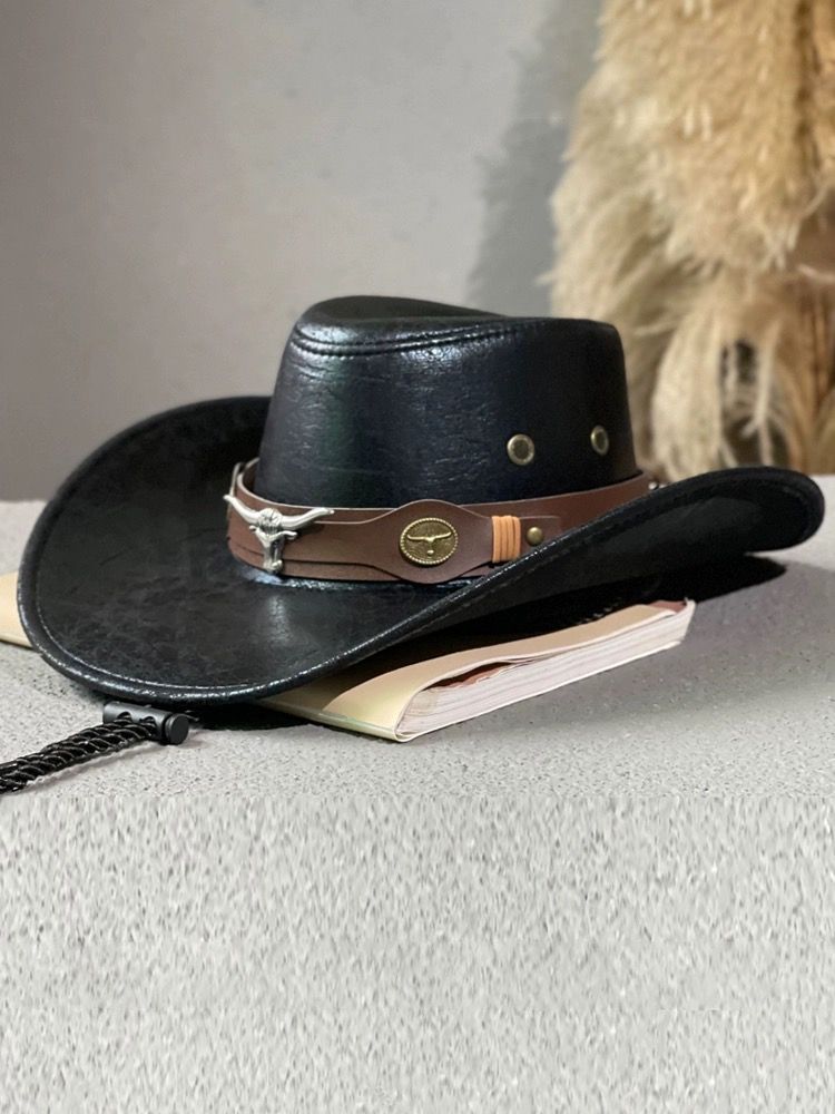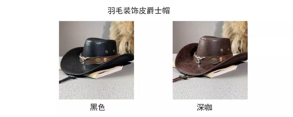 소가죽 벨트 재즈 모자 남성과 여성 봄, 여름, 가을 야외 여행 등산 태양 모자 큰 챙 티베트 서부 카우보이 모자