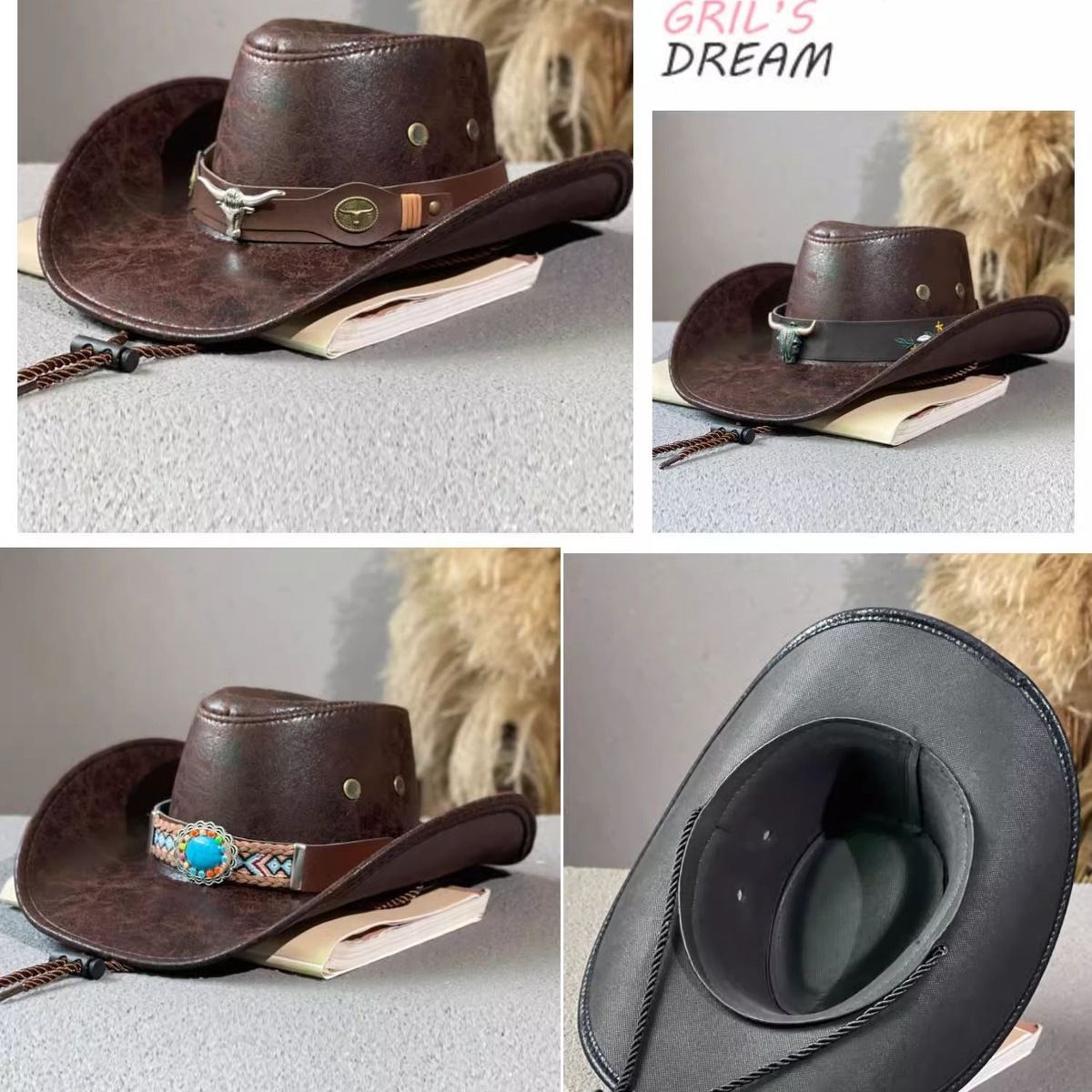 소가죽 벨트 재즈 모자 남성과 여성 봄, 여름, 가을 야외 여행 등산 태양 모자 큰 챙 티베트 서부 카우보이 모자스토어 가기