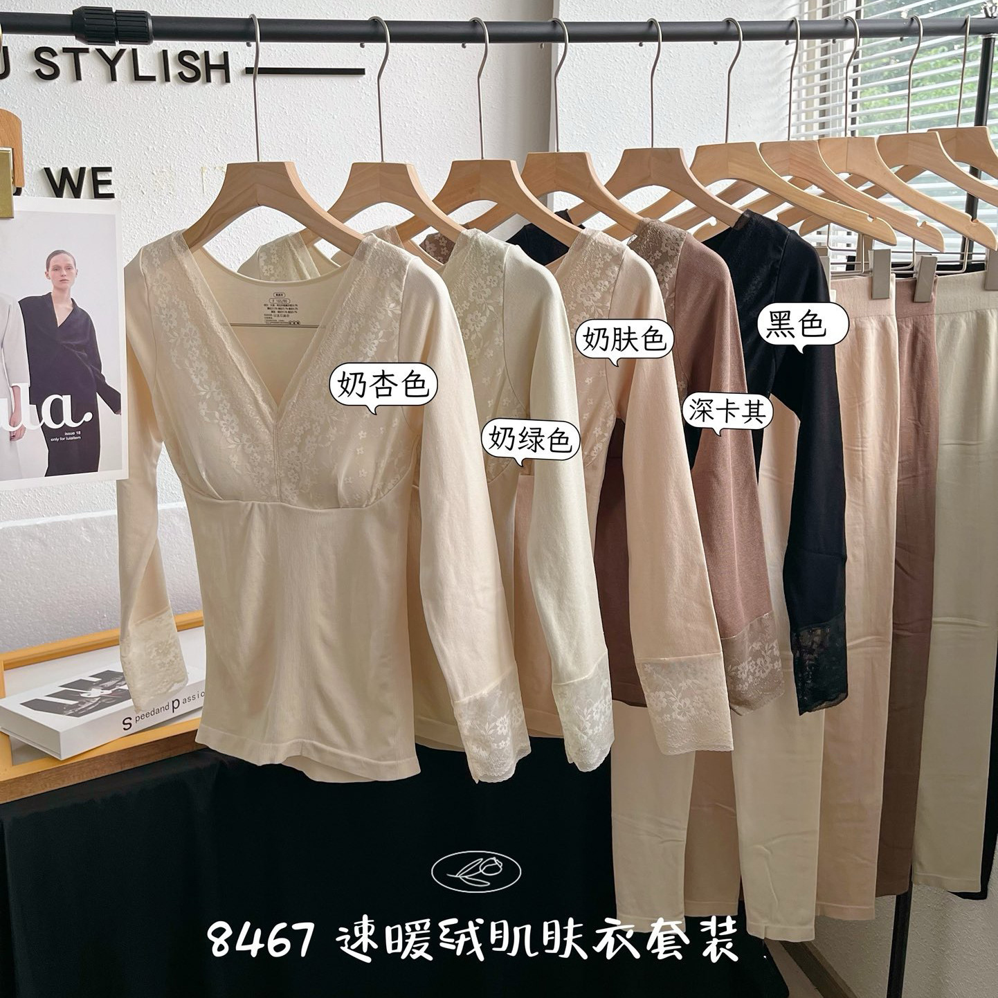Hui Zhixin 8467 레이스 가을 의류 및 바지 여성용 열 속옷 V 넥 레이스 섹시한 슬림 핏 바디 세트스토어 가기