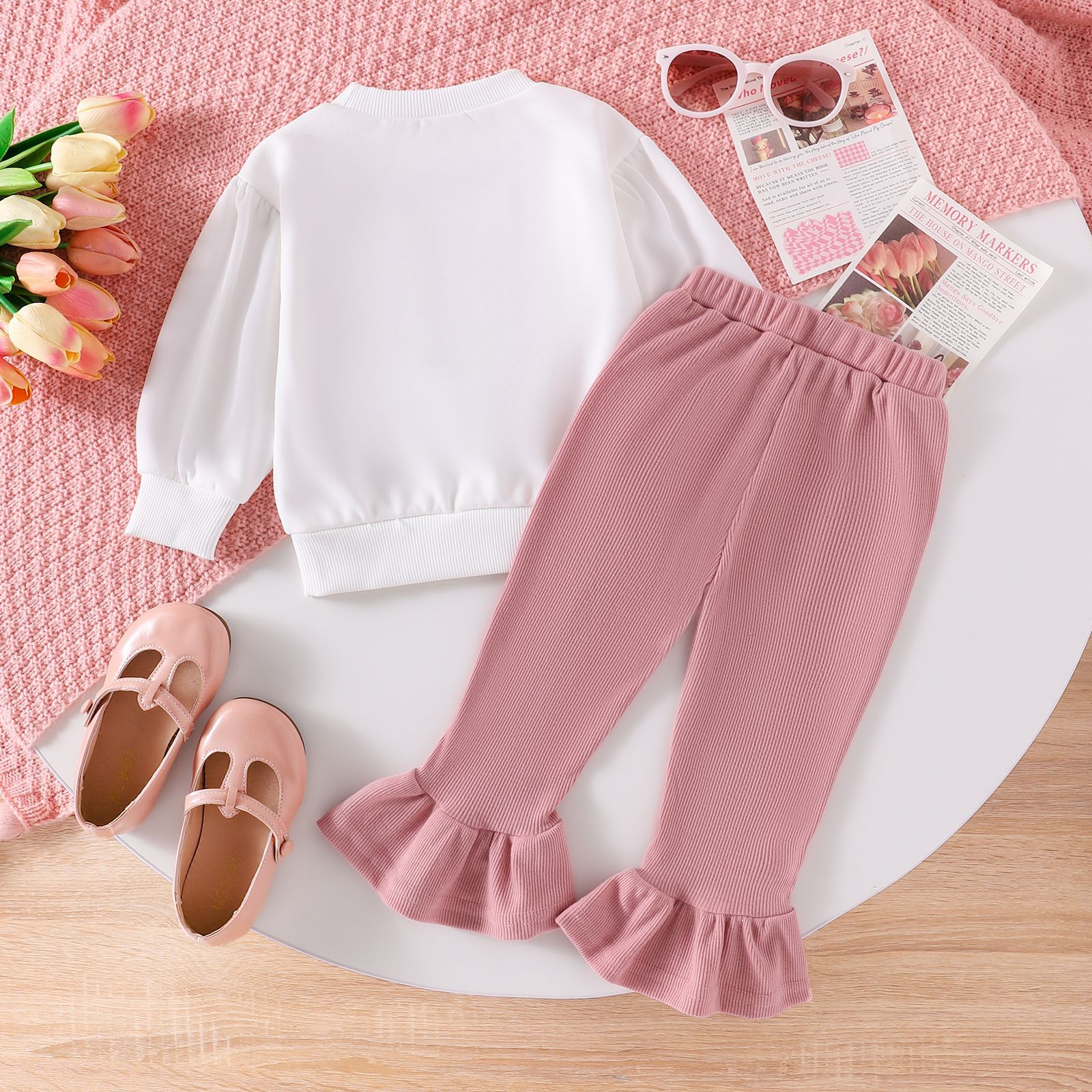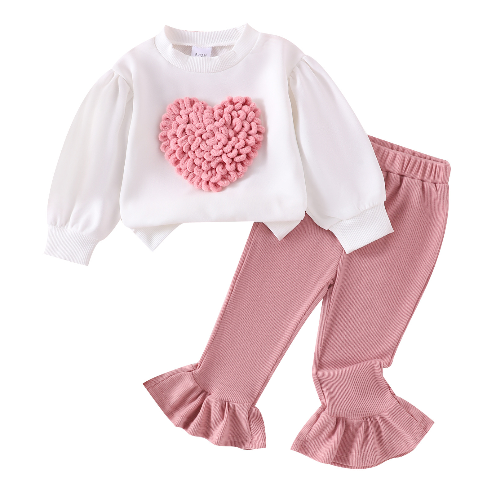 아마존 대외 무역 유럽과 미국 소녀 가을과 겨울 새로운 어린이 풀오버 하트 모양의 흰색 스웨터 플레어 바지 투피스 세트스토어 가기