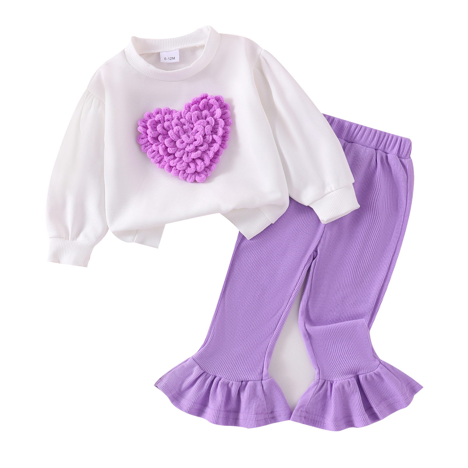 아마존 대외 무역 유럽과 미국 소녀 가을과 겨울 새로운 어린이 풀오버 하트 모양의 흰색 스웨터 플레어 바지 투피스 세트
