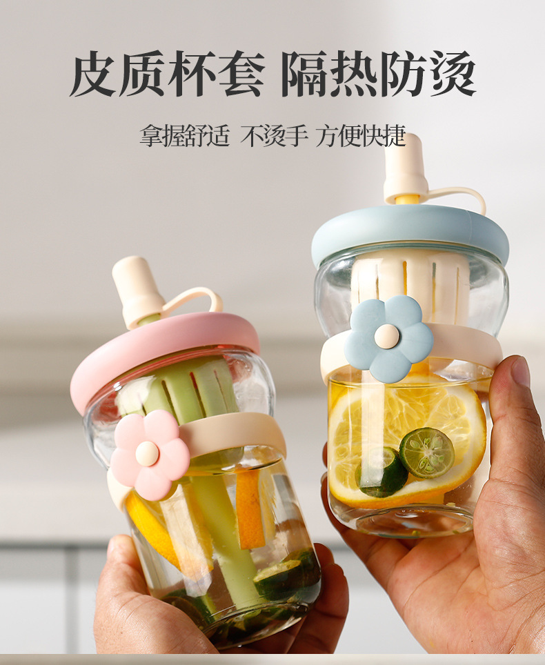 인스 스타일 두꺼운 빨대컵 휴대용 이중 음료컵 귀여운 커피컵 차 물 분리컵 차컵