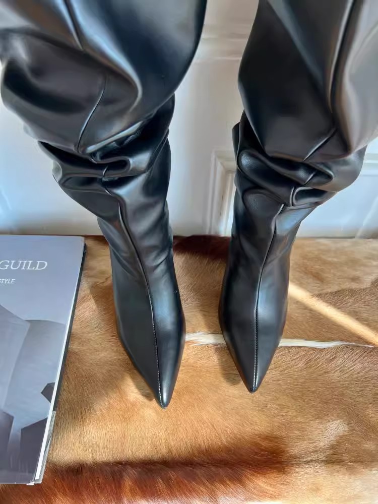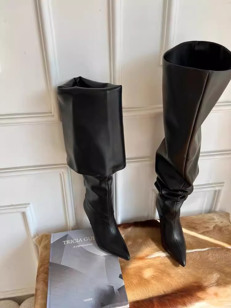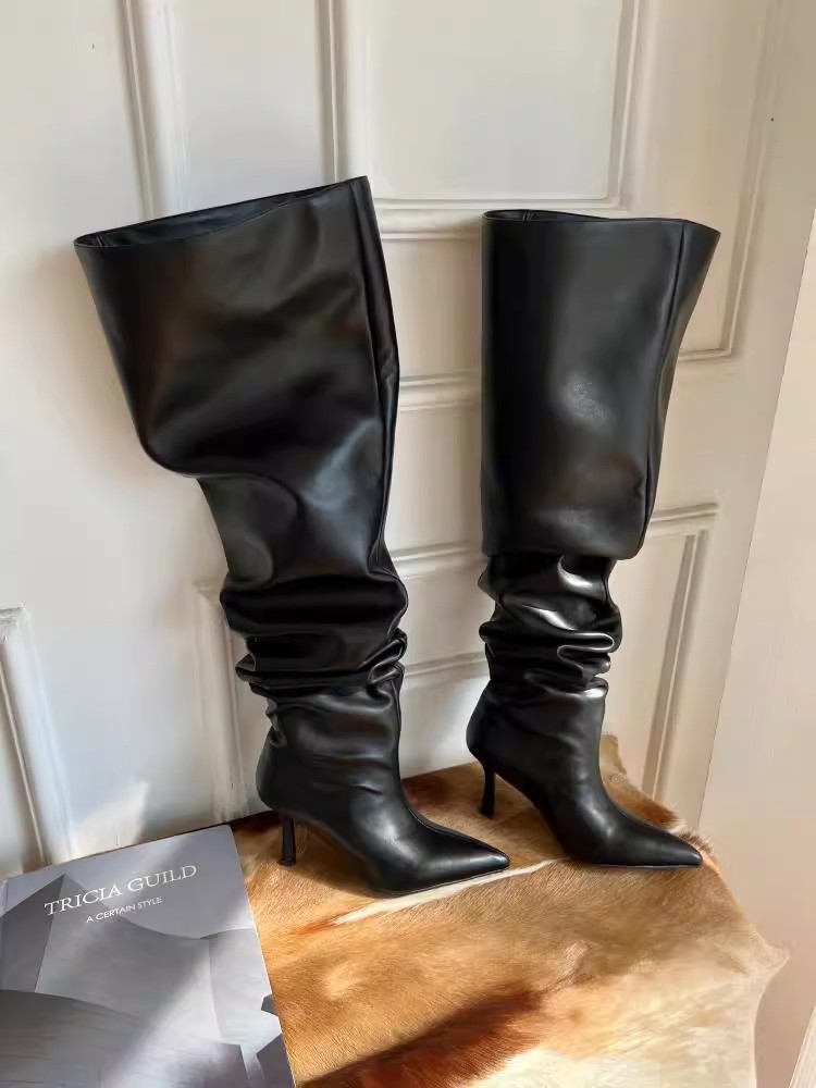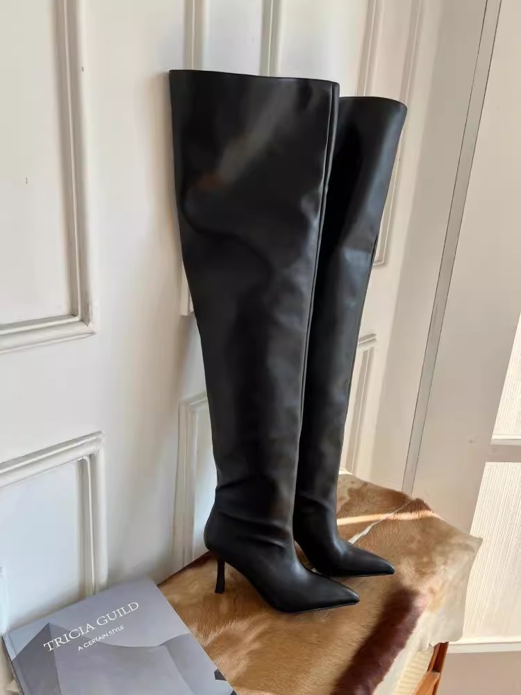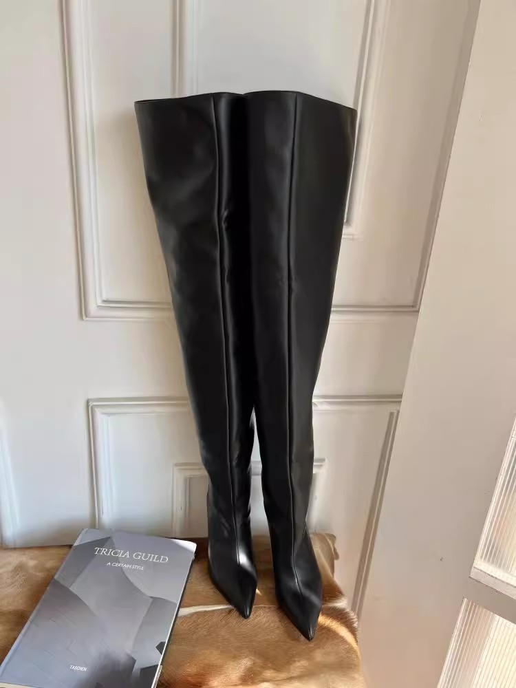 송희희 초대형 하이힐 부츠 유럽과 미국의 스파이스 걸스 포인티드-힐 오버 더-무릎 와이드 힐 부츠 스택 부츠스토어 가기