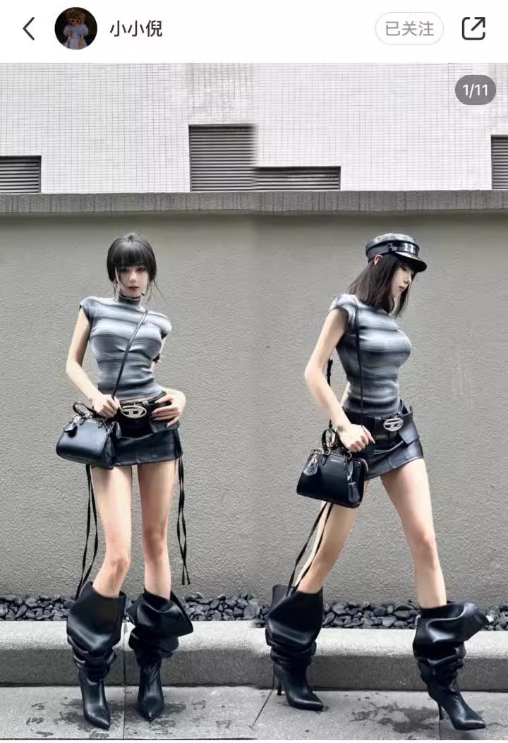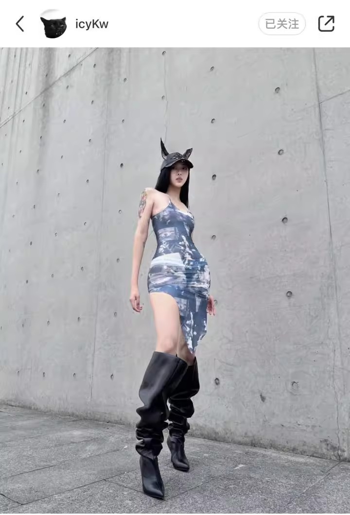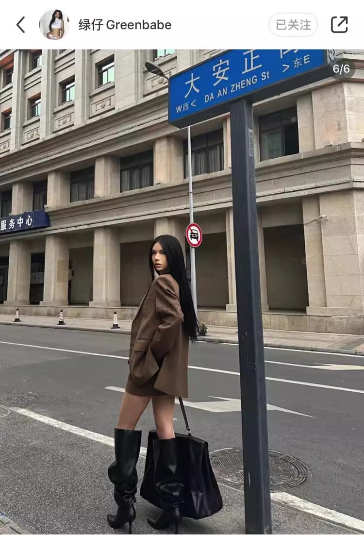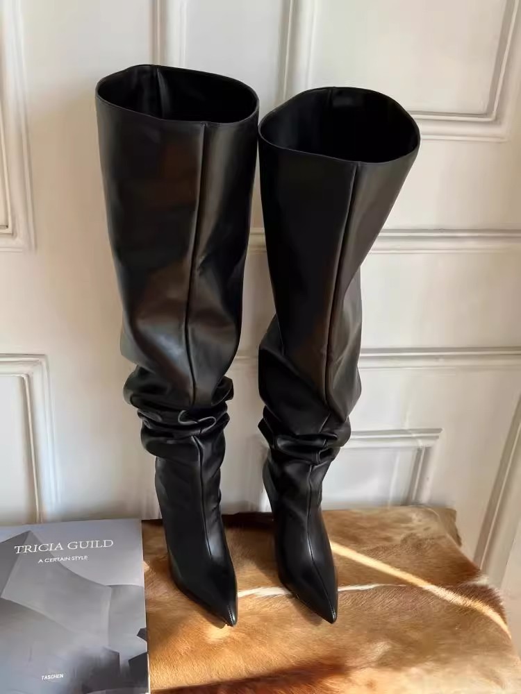 송희희 초대형 하이힐 부츠 유럽과 미국의 스파이스 걸스 포인티드-힐 오버 더-무릎 와이드 힐 부츠 스택 부츠스토어 가기