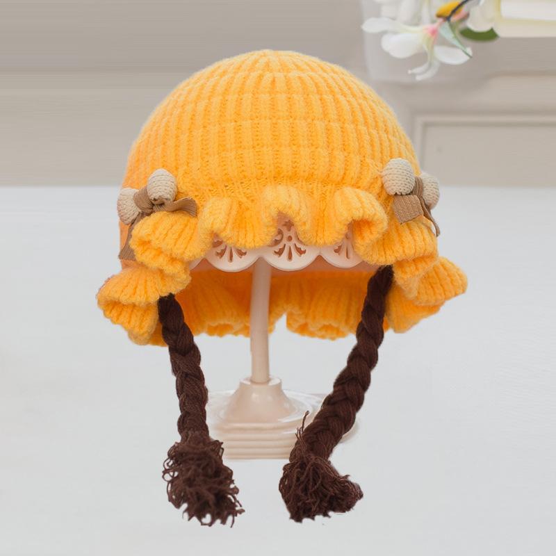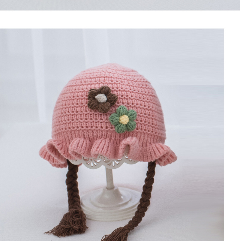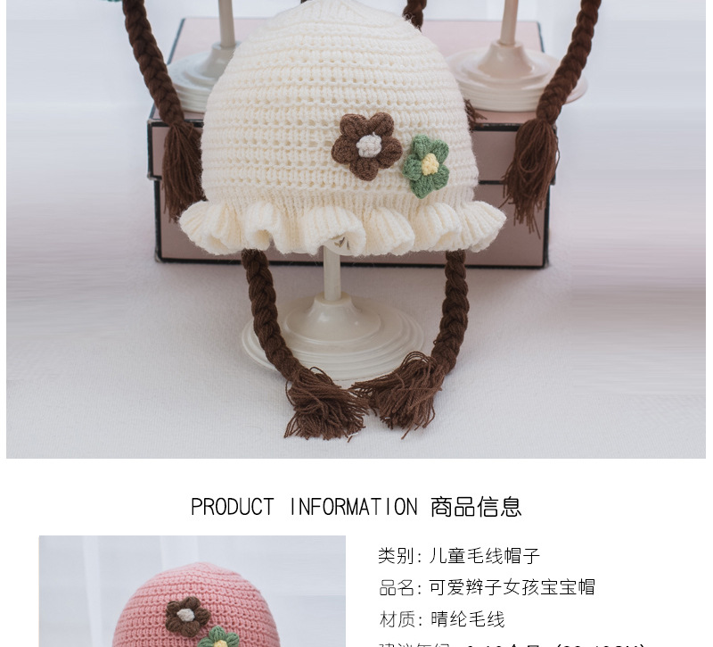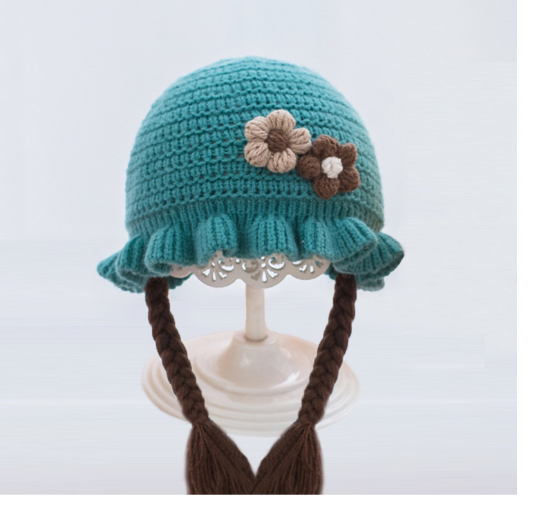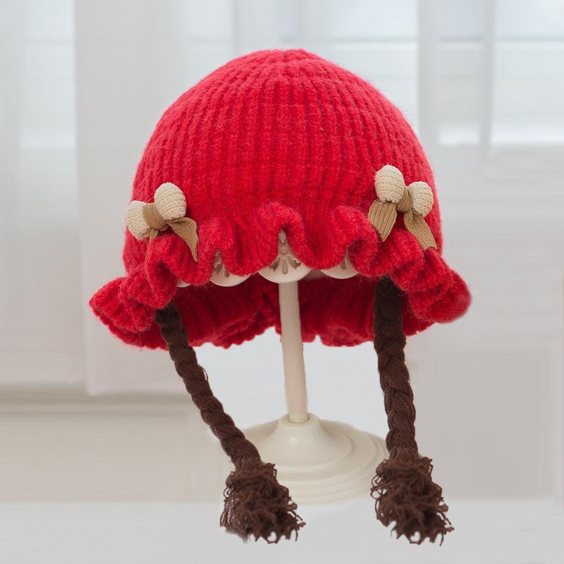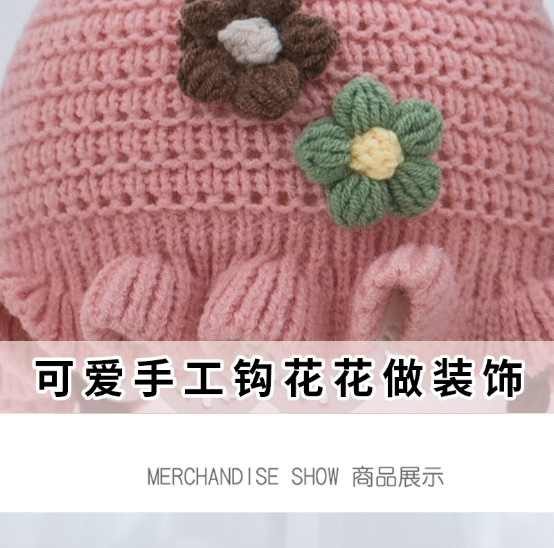 2024 새로운 스타일 땋은 꽃 모자 아기 모자 가을과 겨울 따뜻한 귀여운 귀여운 귀 보호 소녀 공주 울 모자스토어 가기