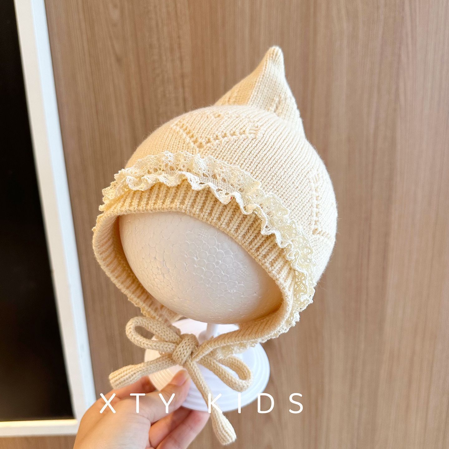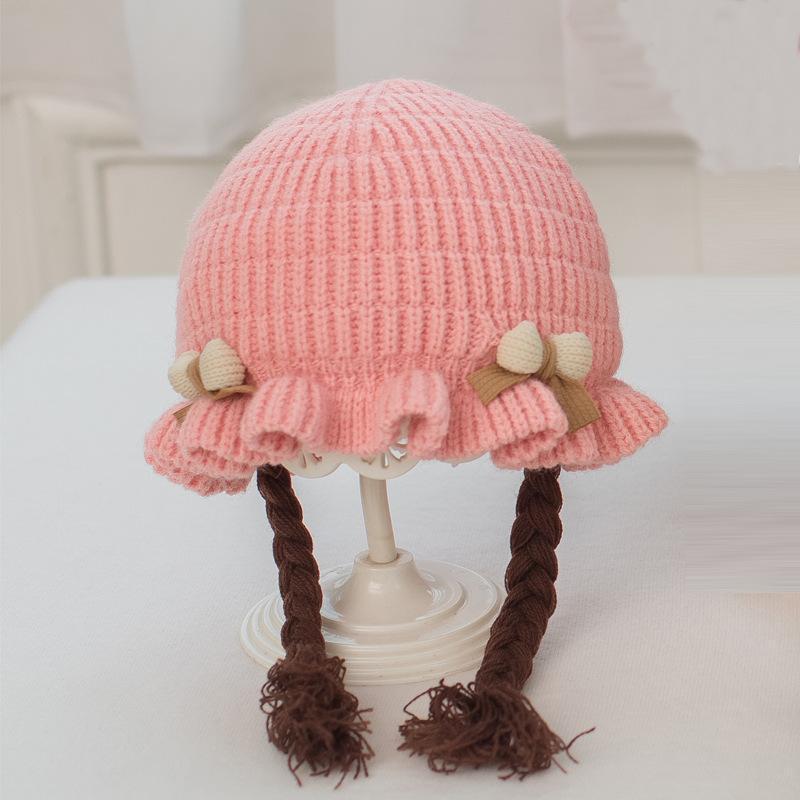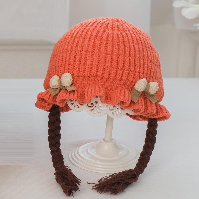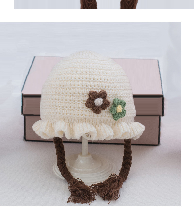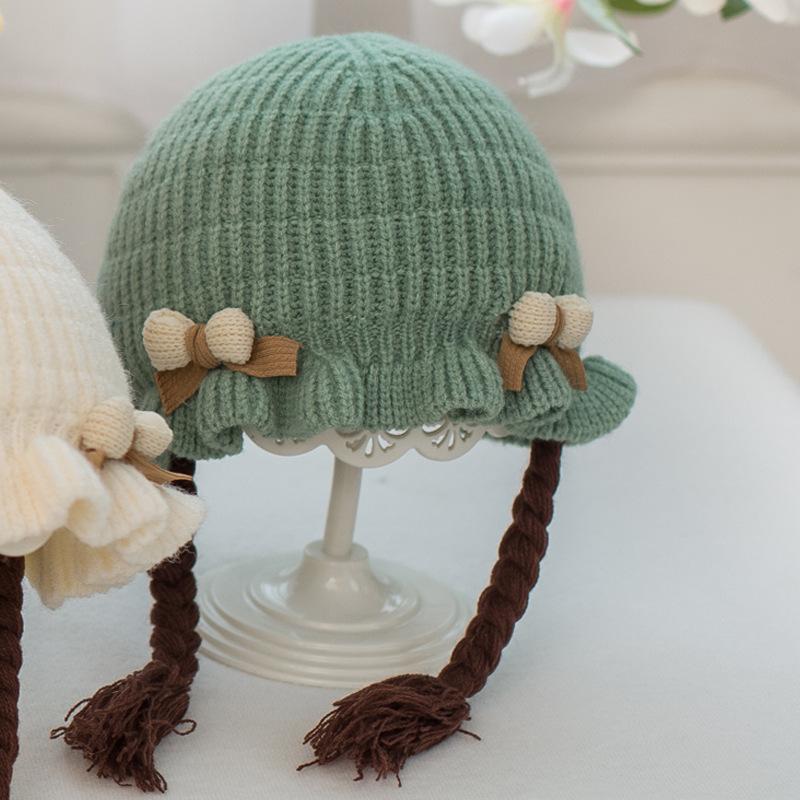 2024 새로운 스타일 땋은 꽃 모자 아기 모자 가을과 겨울 따뜻한 귀여운 귀여운 귀 보호 소녀 공주 울 모자스토어 가기