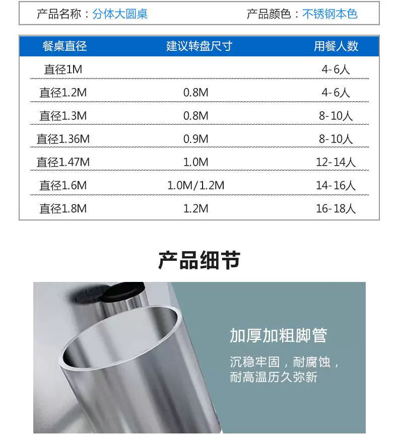• 1.2 턴테이블 브러시드가 포함된 1.8m 접이식 분할 원형 테이블