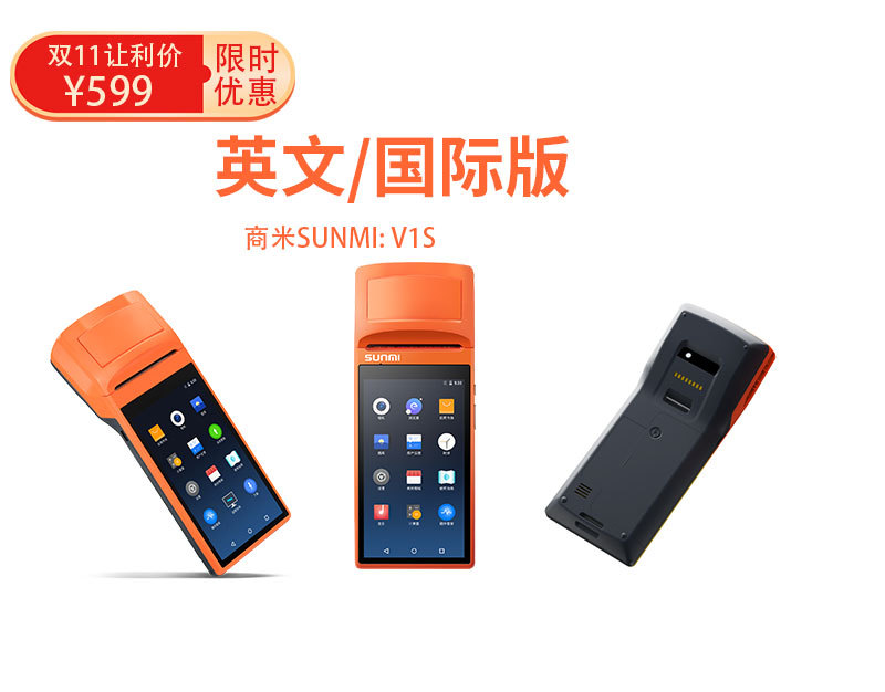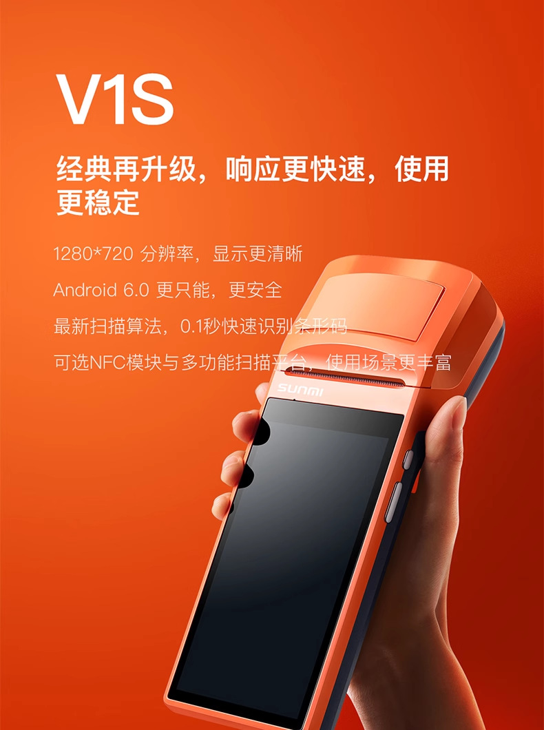 휴대용 모바일 금전 등록기 SUNMI V1S/V2S 테이크아웃 주문 접수 대기열 호출 및 판매 기계 대외 무역스토어 가기