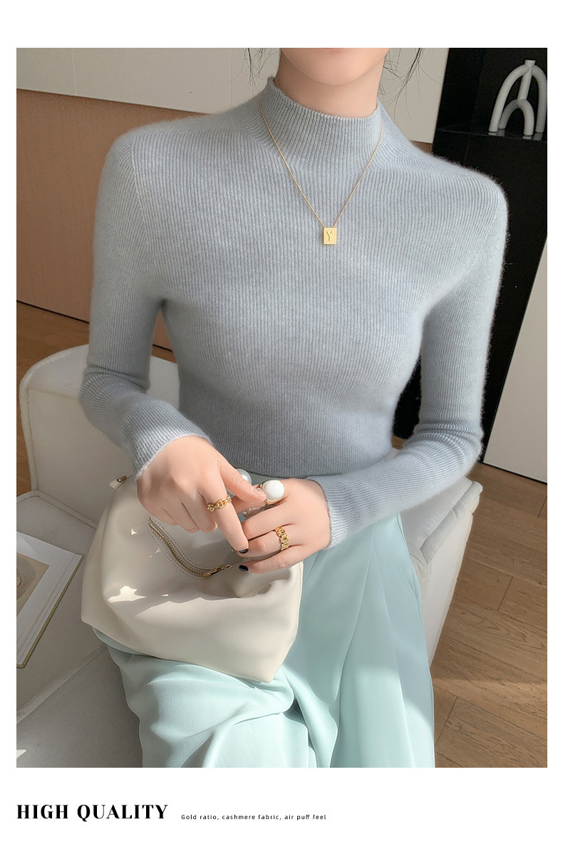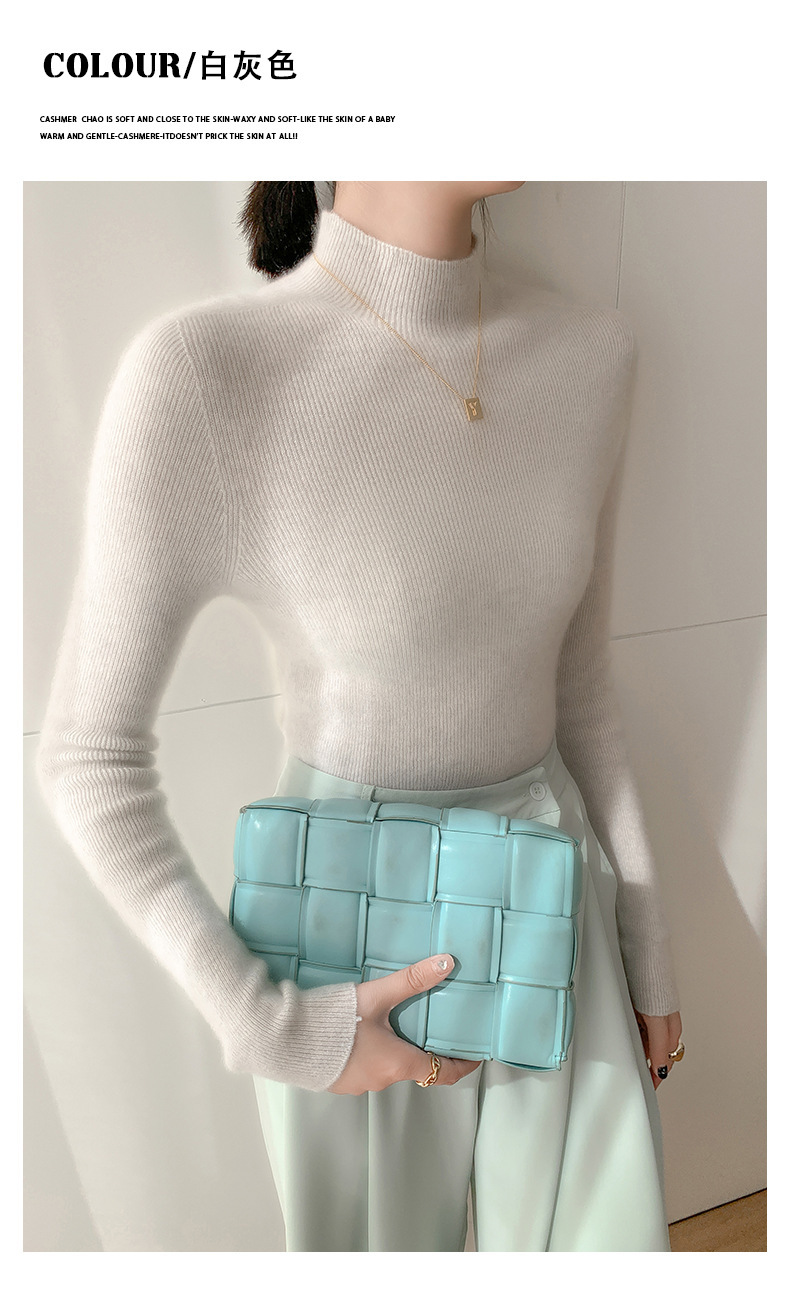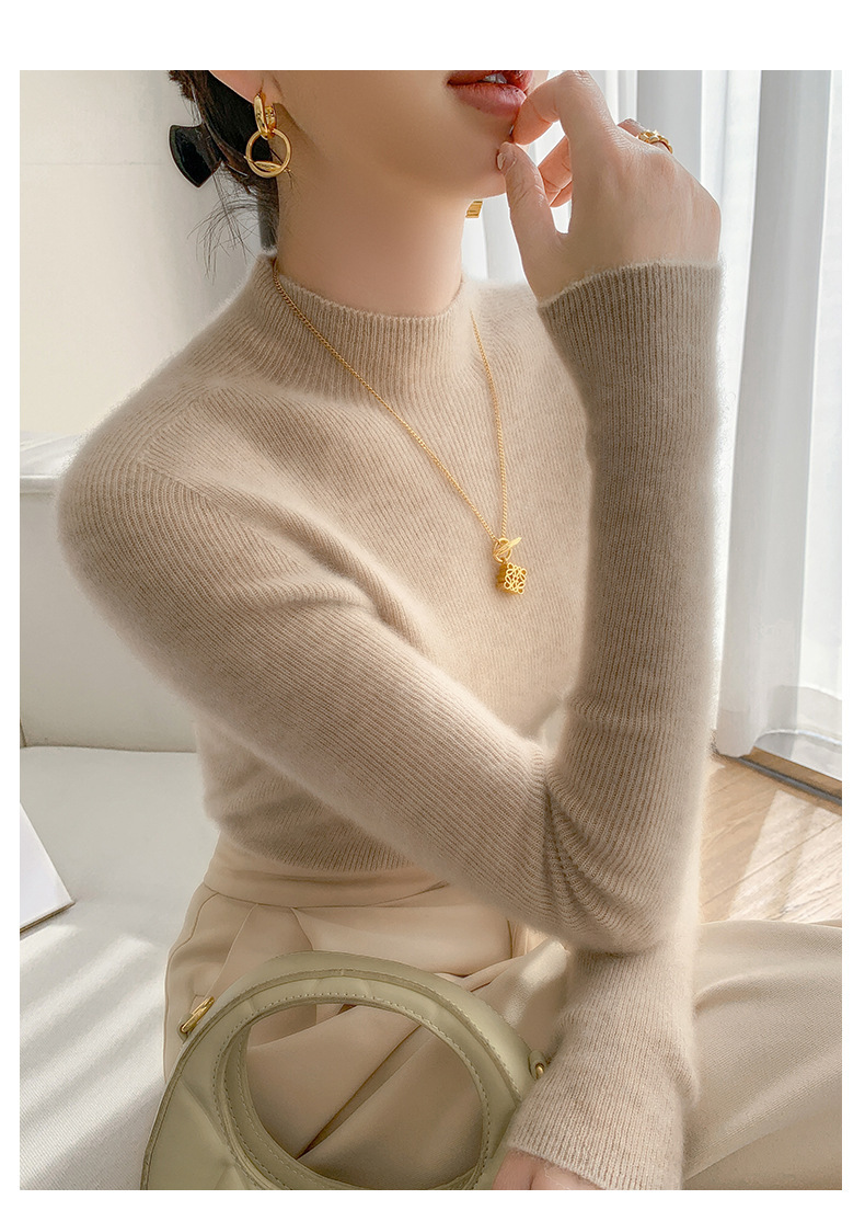 가을 겨울 여성 순수 캐시미어 슬림 얇은 스웨터 바닥 스웨터 원 라인 기성품 하프 터틀넥 캐시미어 스웨터 긴 소매스토어 가기