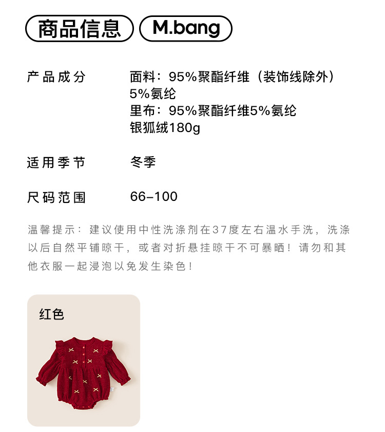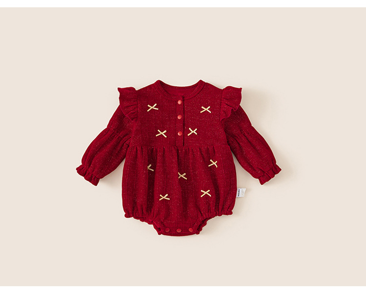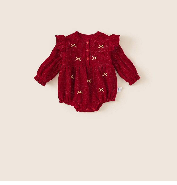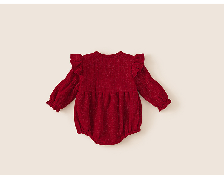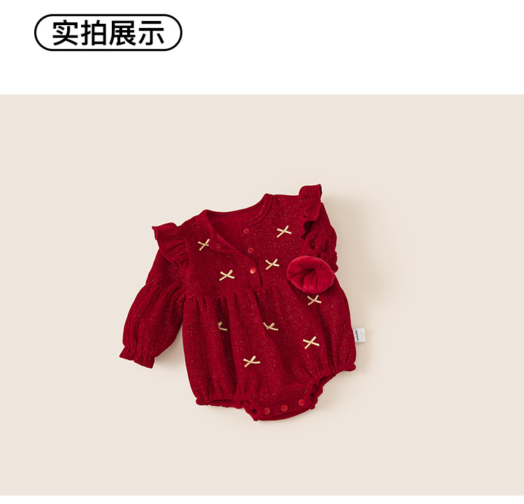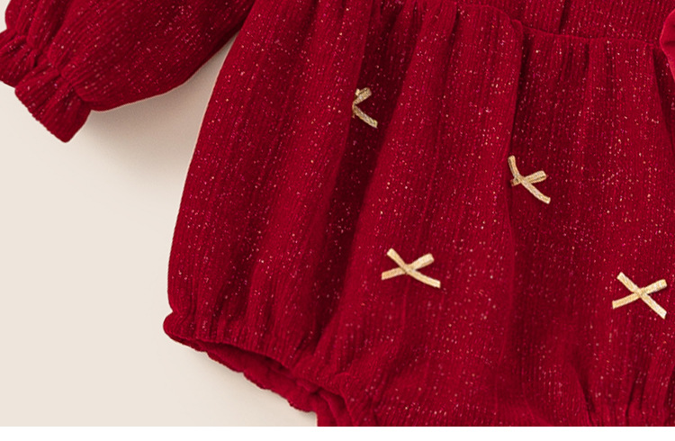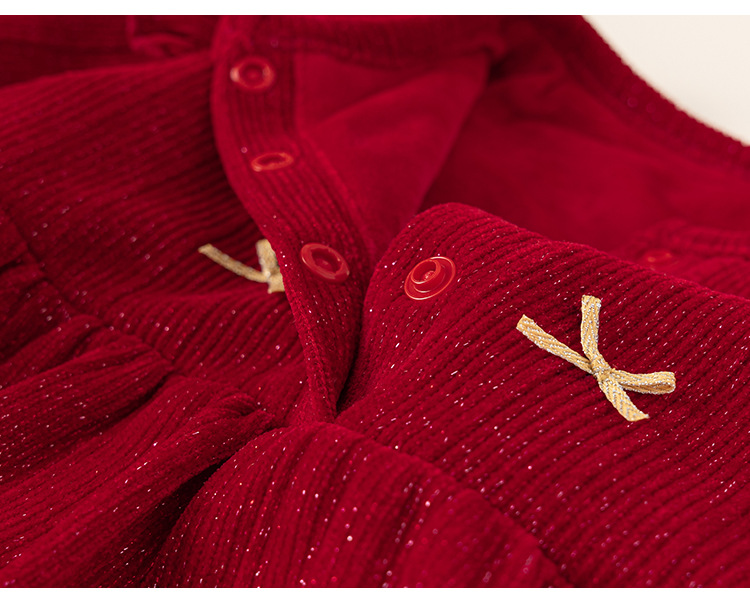 Bang Xuan 2024 겨울 새로운 긴 소매 토끼 빨간 작은 비행 소매 옷 아기 소녀 활 달콤한 좀폰
