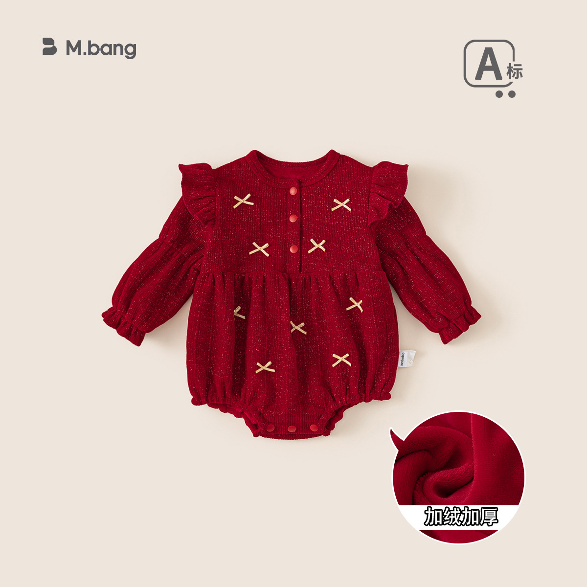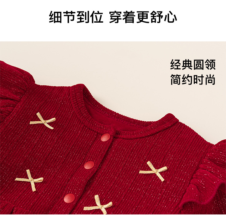 Bang Xuan 2024 겨울 새로운 긴 소매 토끼 빨간 작은 비행 소매 옷 아기 소녀 활 달콤한 좀폰스토어 가기
