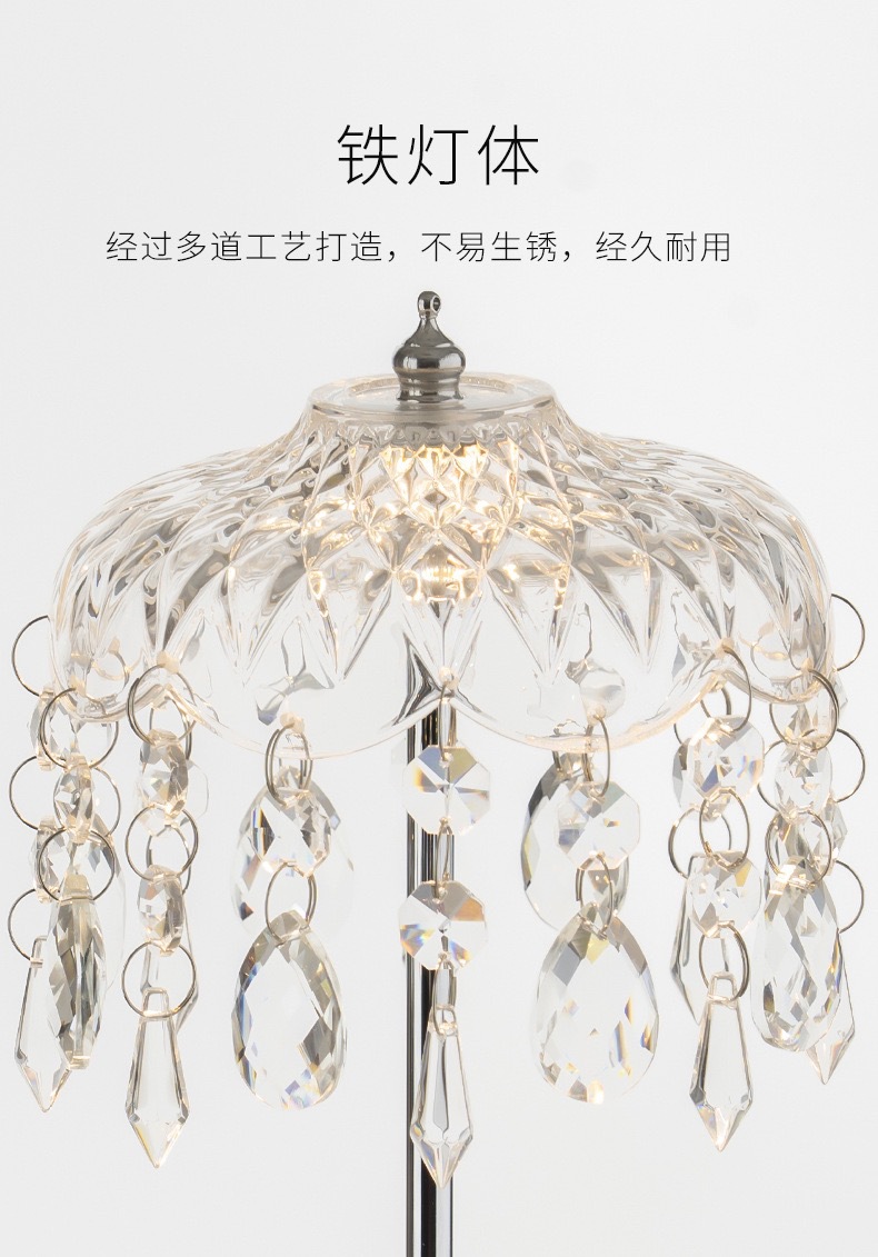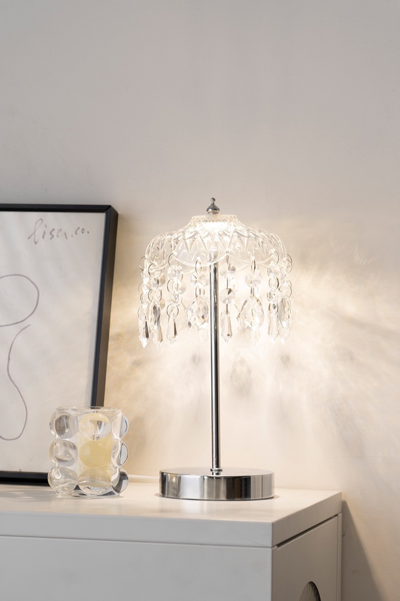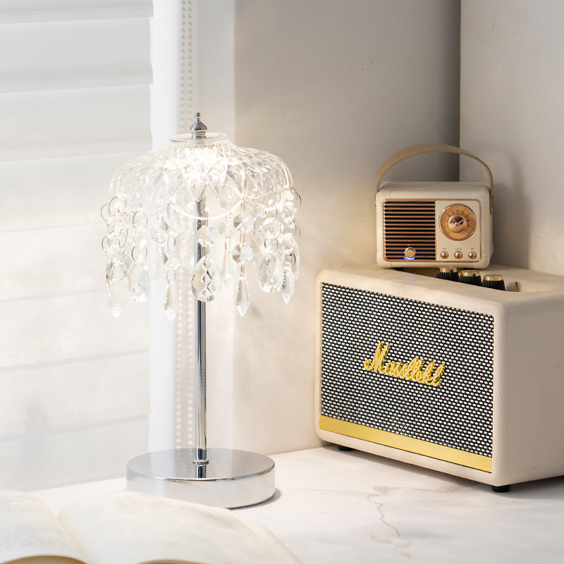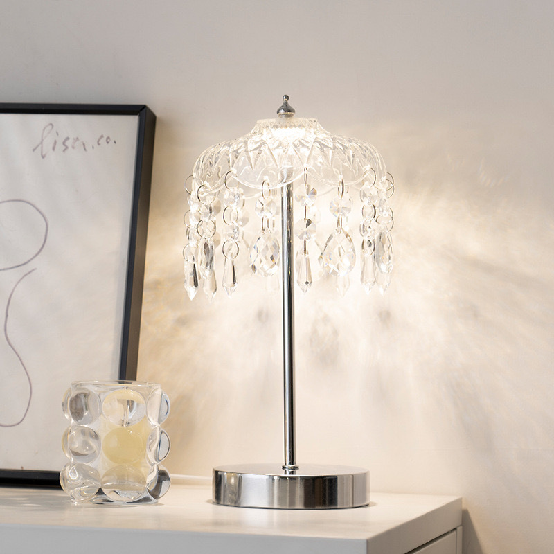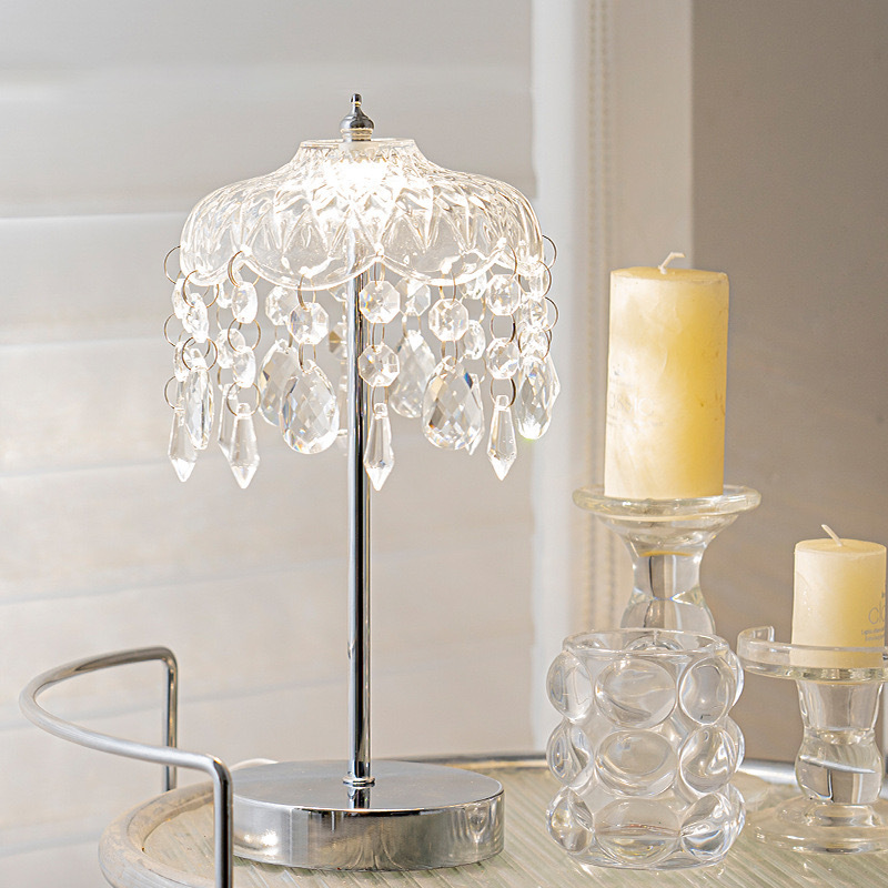 국경 간 빛 럭셔리 크리스탈 테이블 램프 복고풍 책 온라인 유명 크림 스타일 분위기 장식 홈 램프 침실 침실 램프