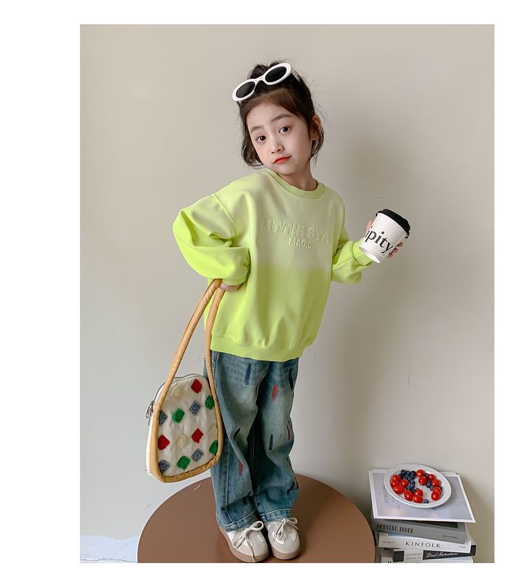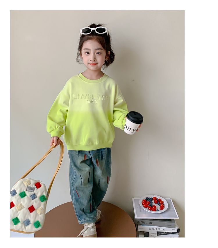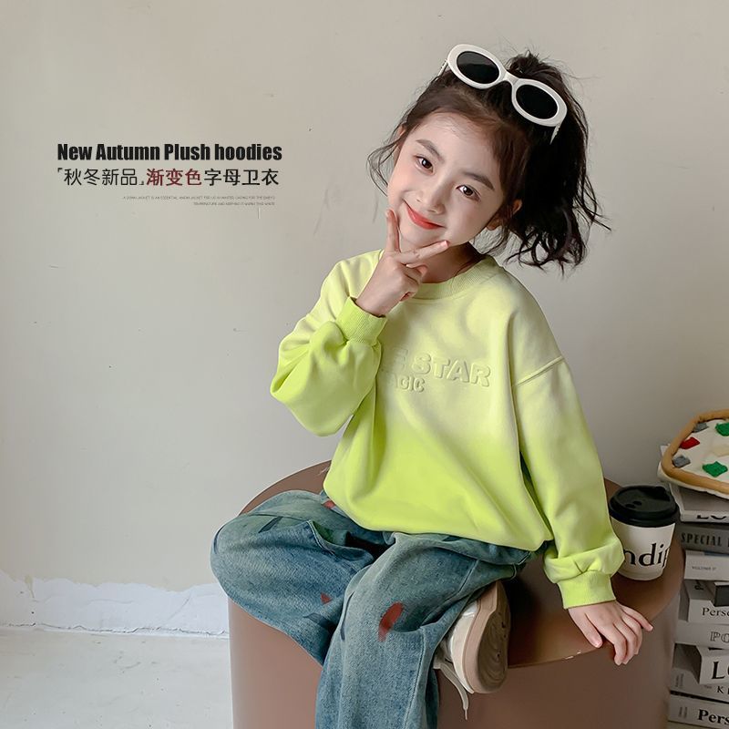 스웨트 그라디언트 탑 2024 새로운 어린이 봄과 가을 소녀 긴 소매 소녀의 서양식 아동복 느슨한스토어 가기
