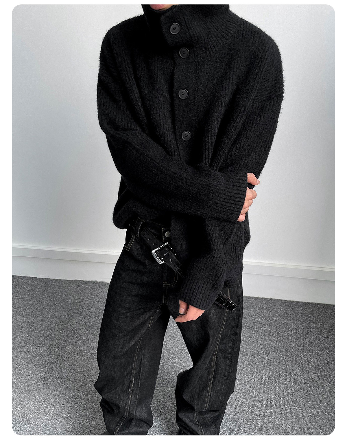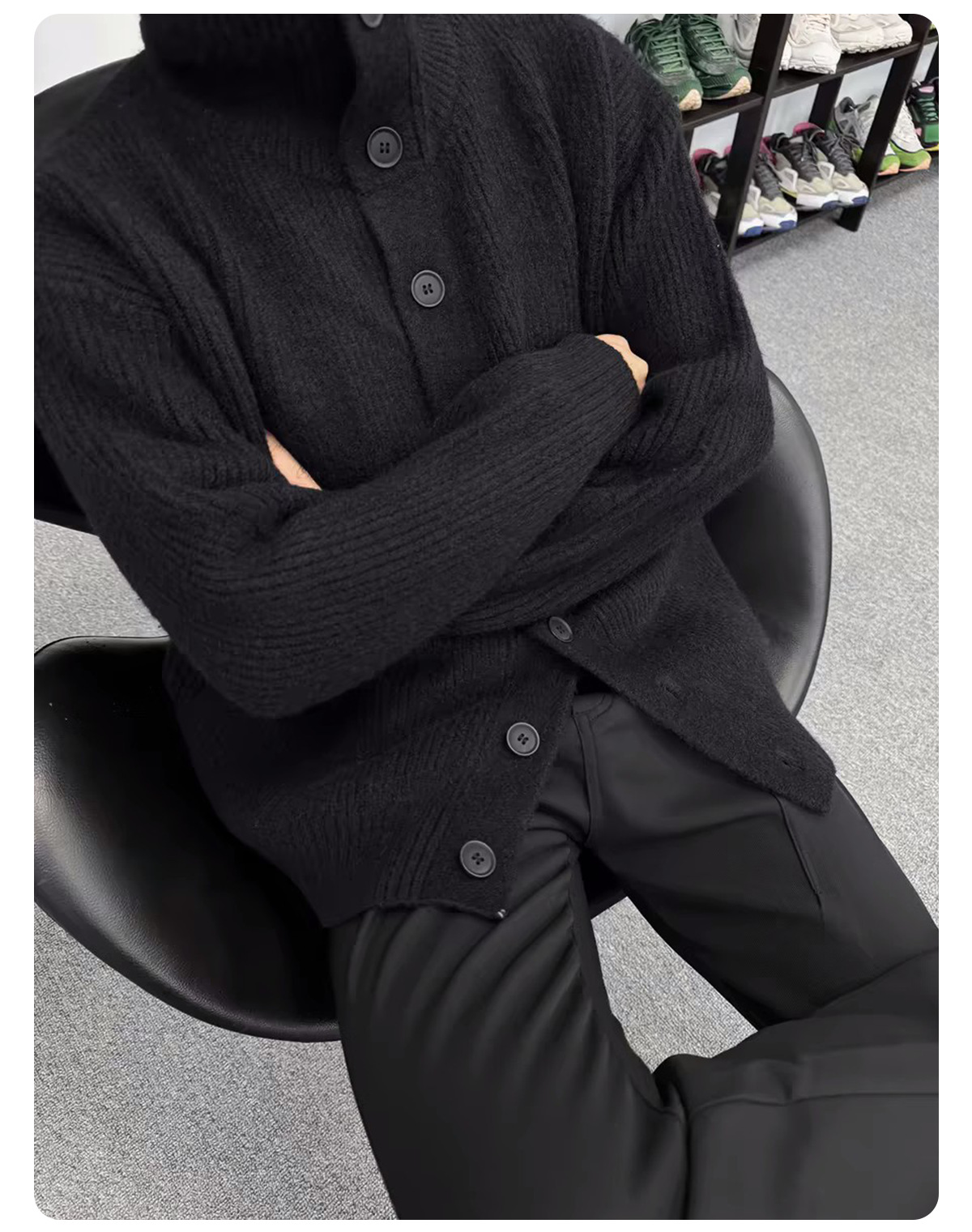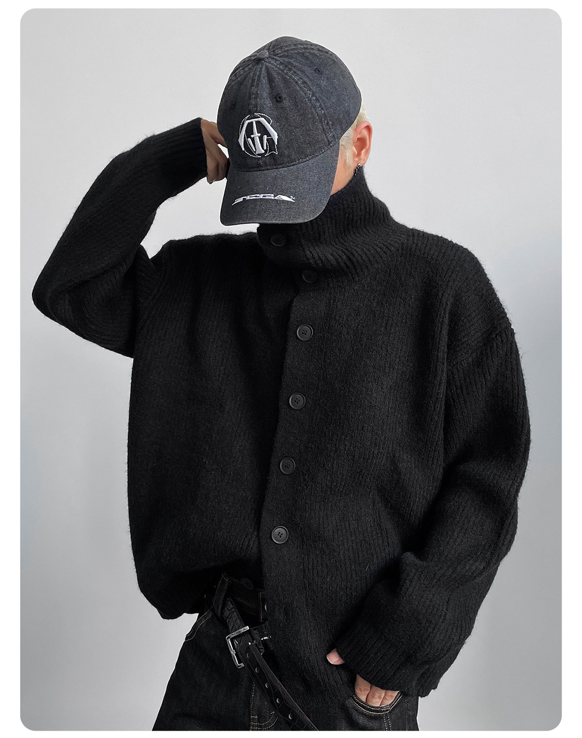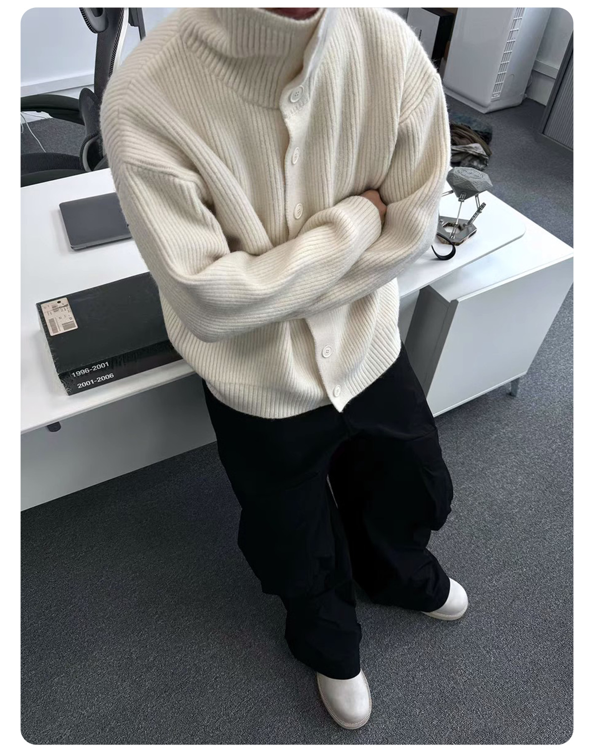 CSMY 가을 겨울 삼색 하이넥 버튼 가디건 스웨터 캐주얼 루즈 긴팔 남녀공용 메일라드 클린핏스토어 가기