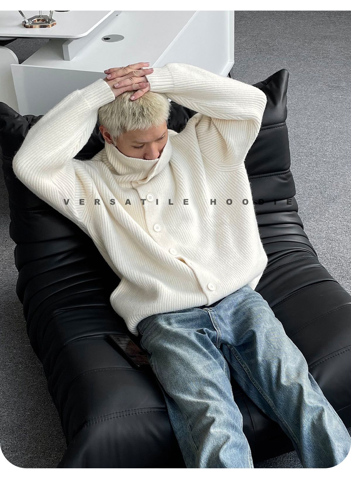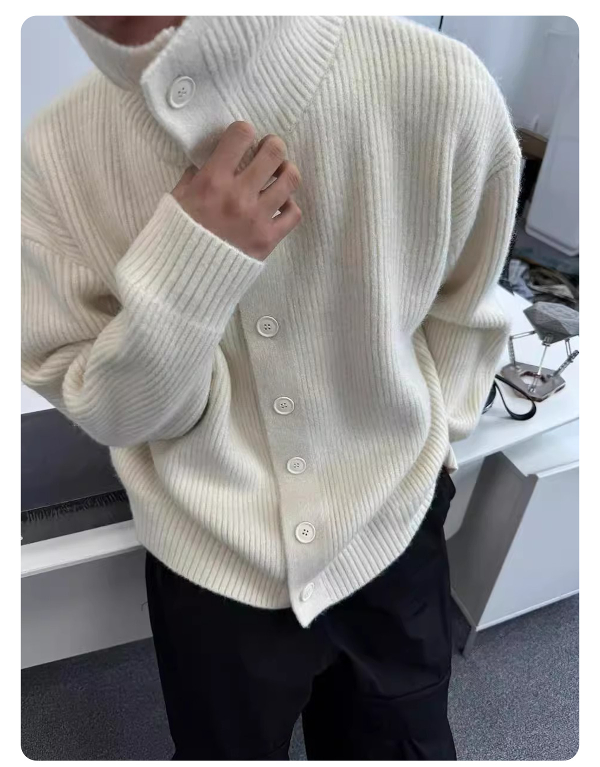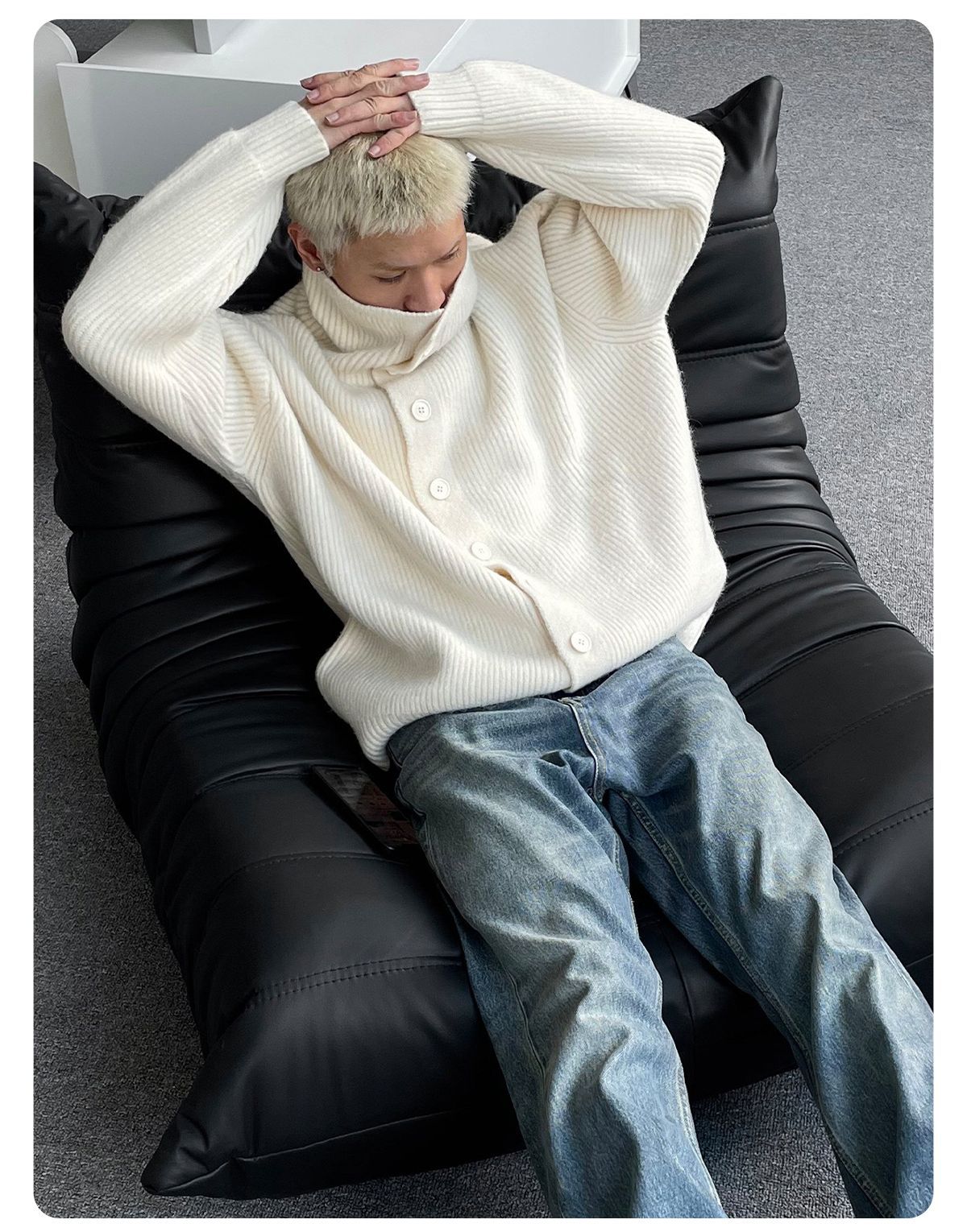 CSMY 가을 겨울 삼색 하이넥 버튼 가디건 스웨터 캐주얼 루즈 긴팔 남녀공용 메일라드 클린핏스토어 가기