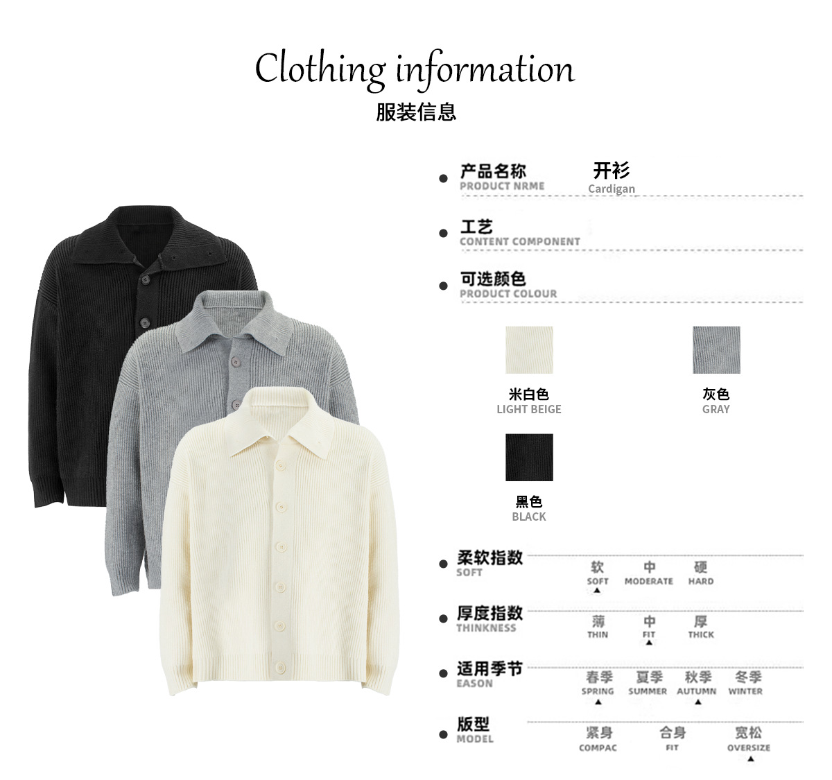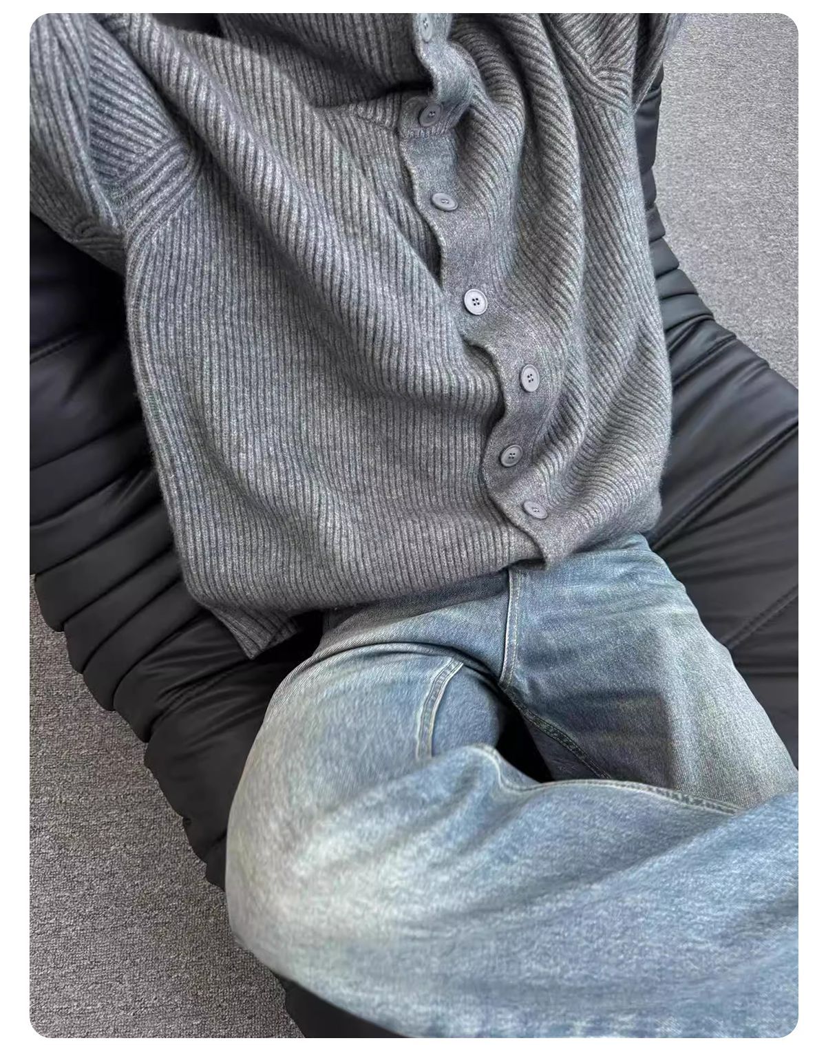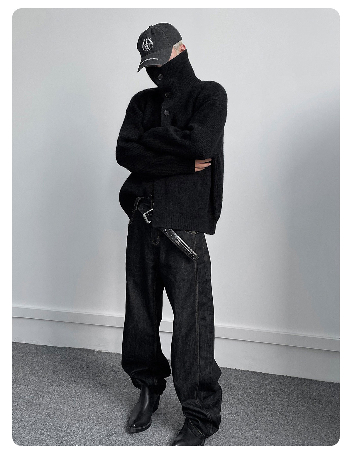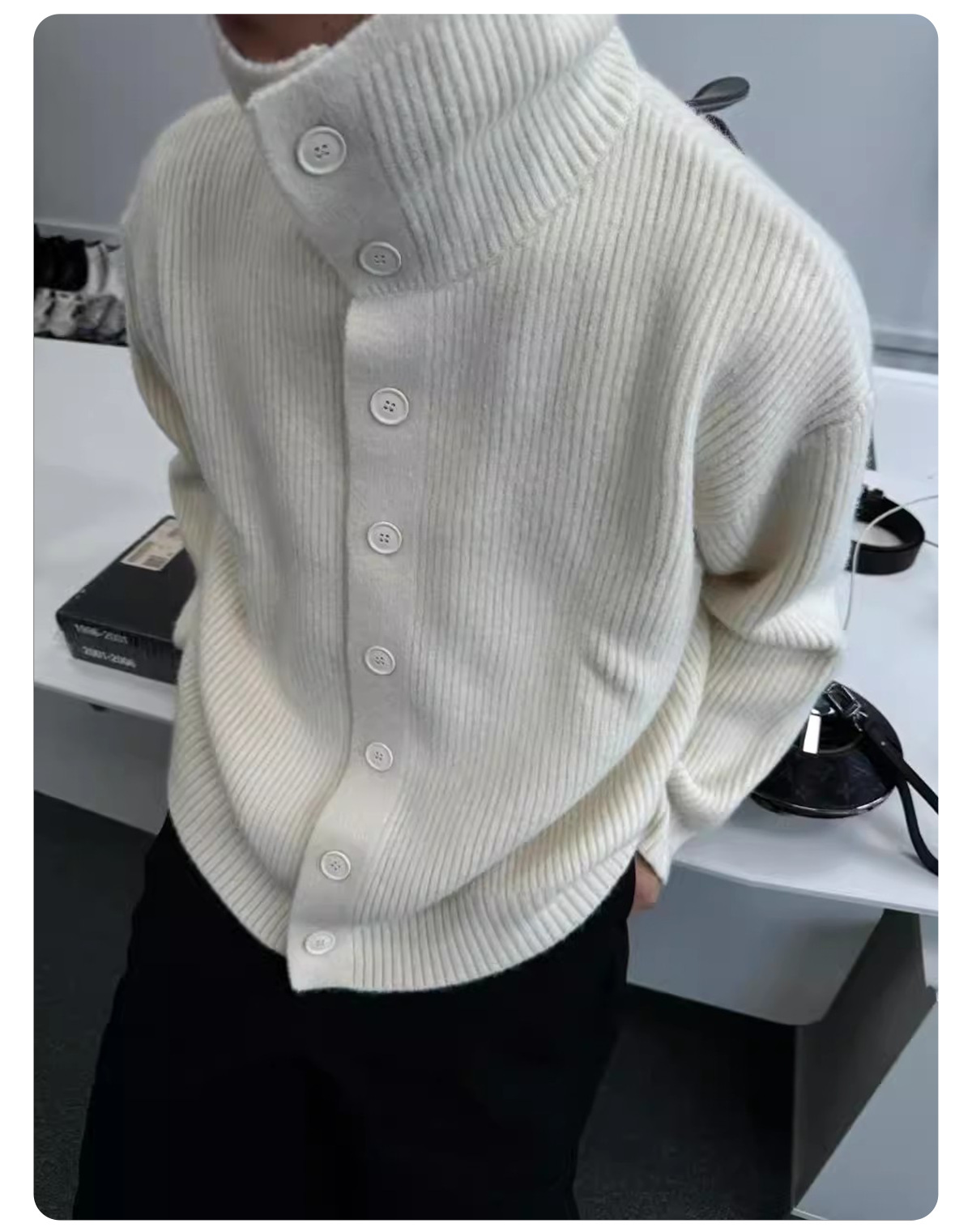 CSMY 가을 겨울 삼색 하이넥 버튼 가디건 스웨터 캐주얼 루즈 긴팔 남녀공용 메일라드 클린핏스토어 가기