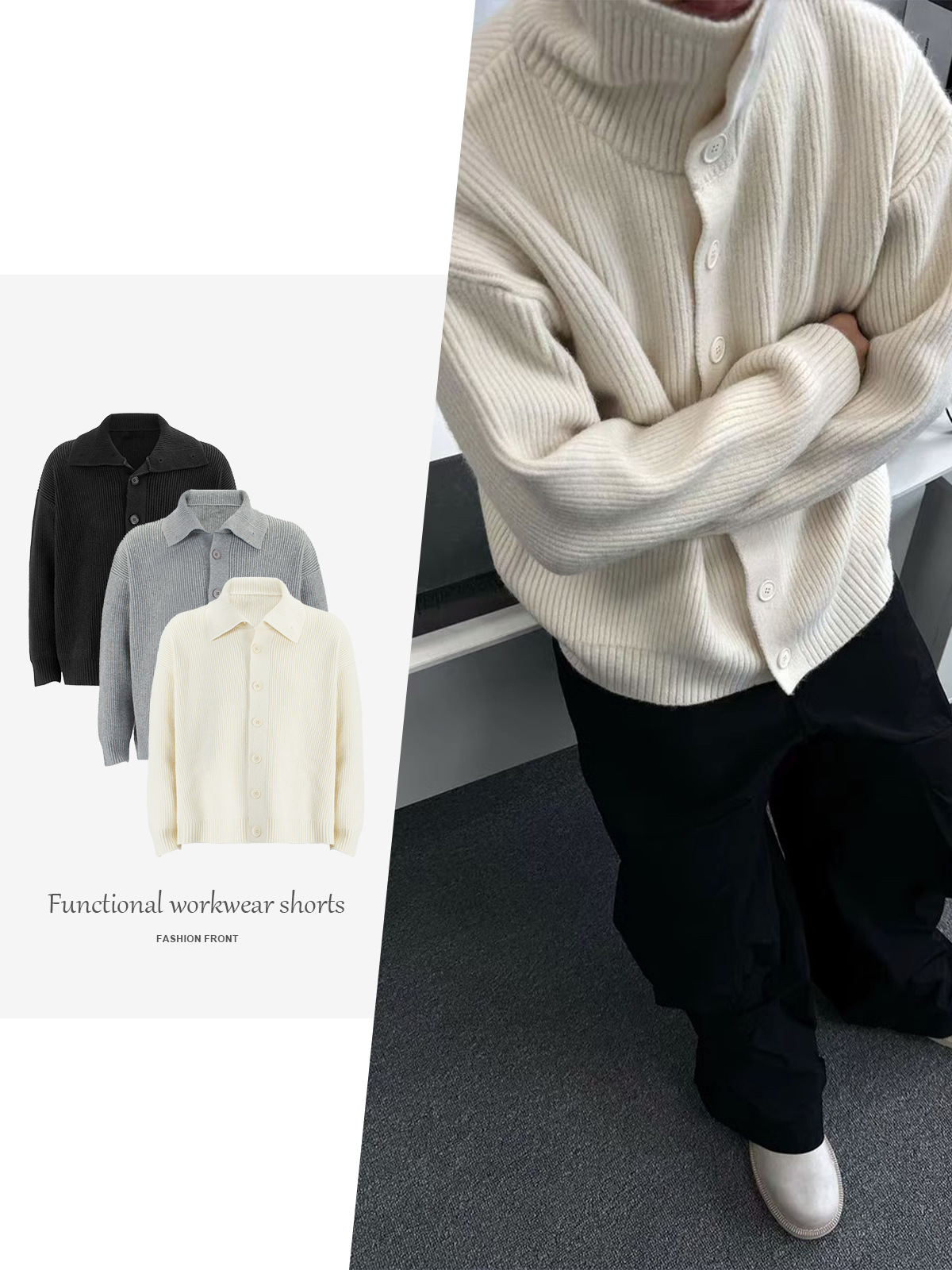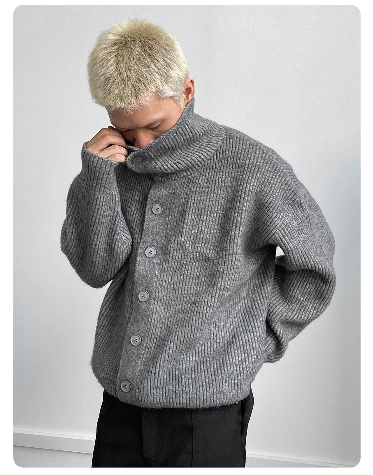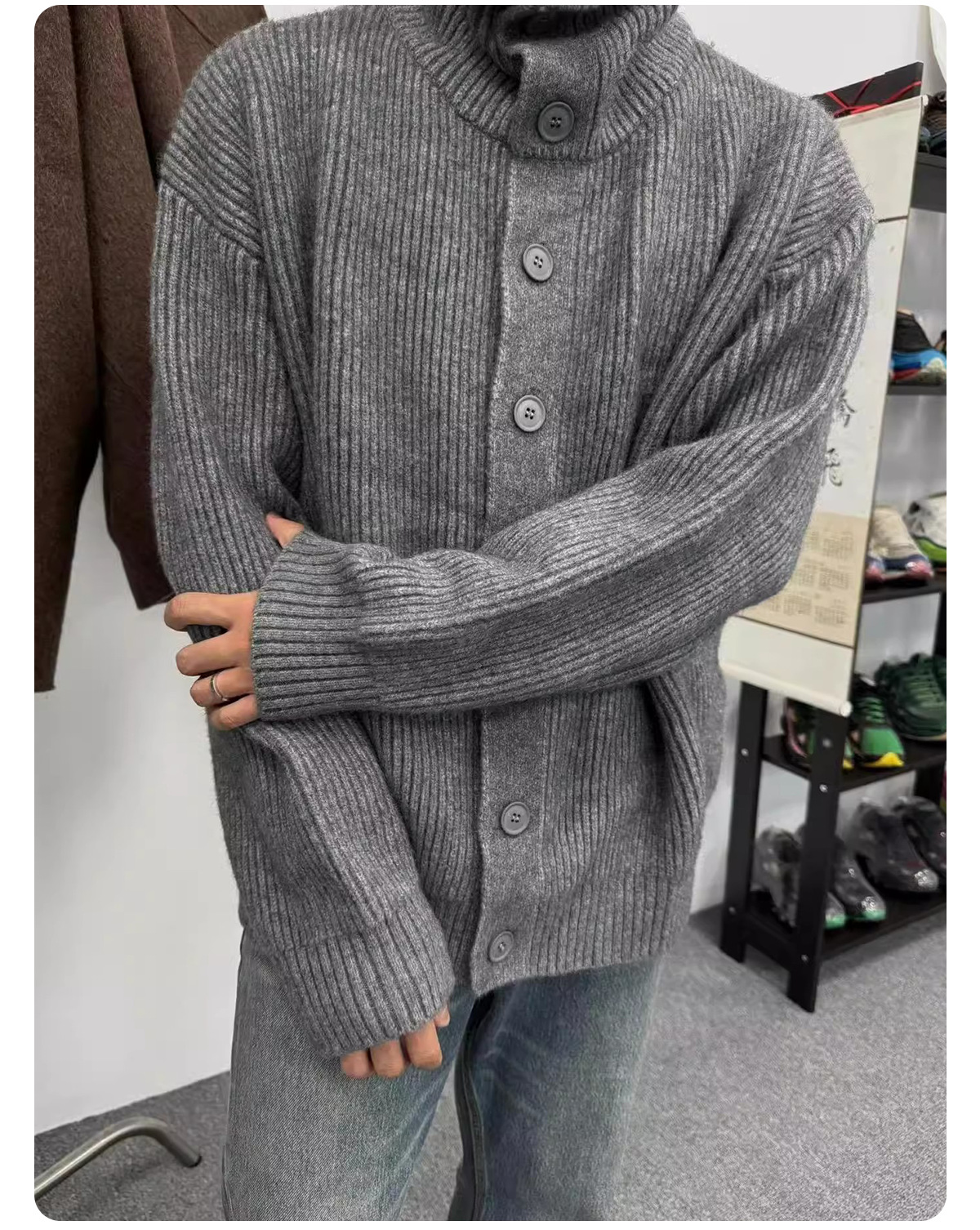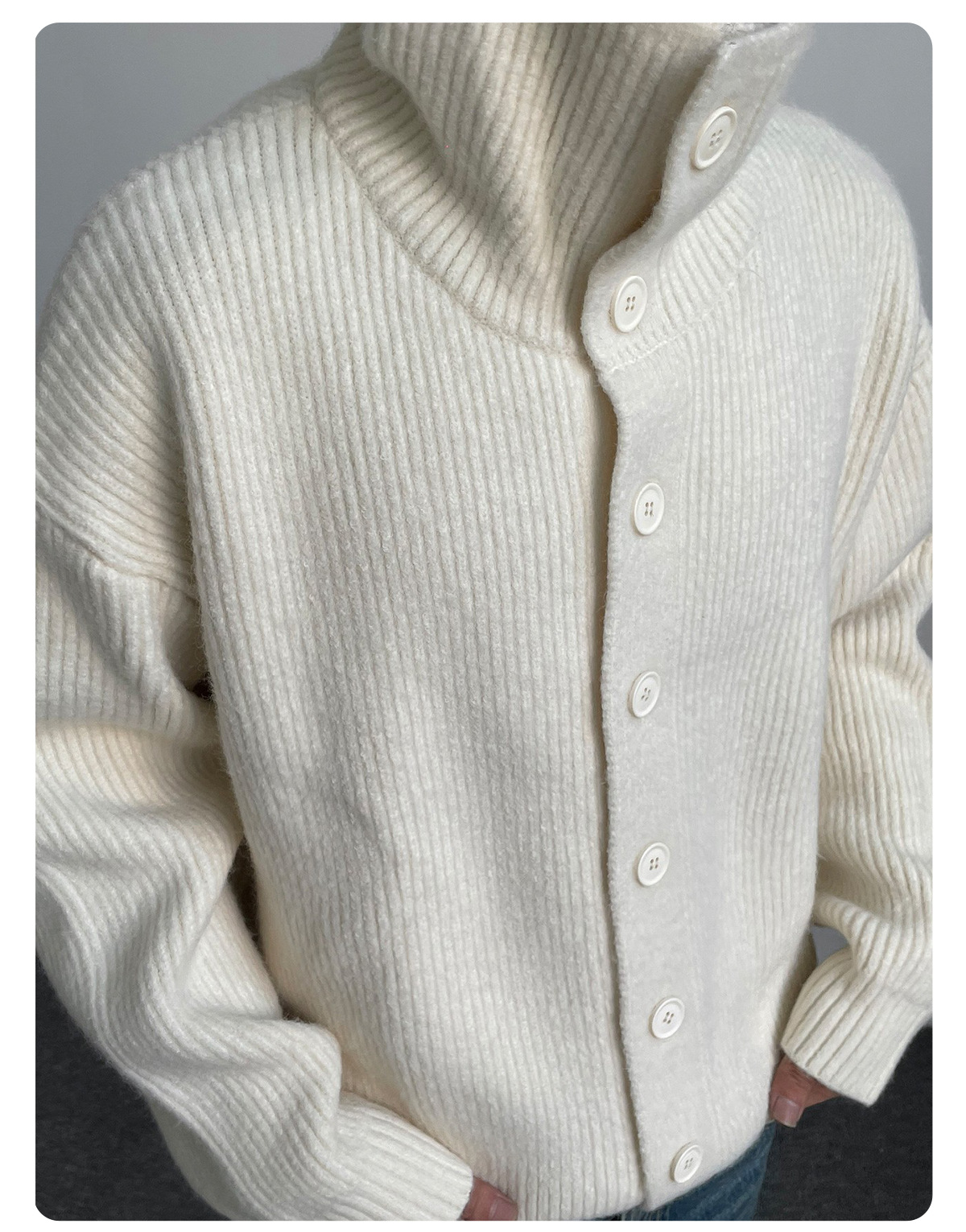 CSMY 가을 겨울 삼색 하이넥 버튼 가디건 스웨터 캐주얼 루즈 긴팔 남녀공용 메일라드 클린핏