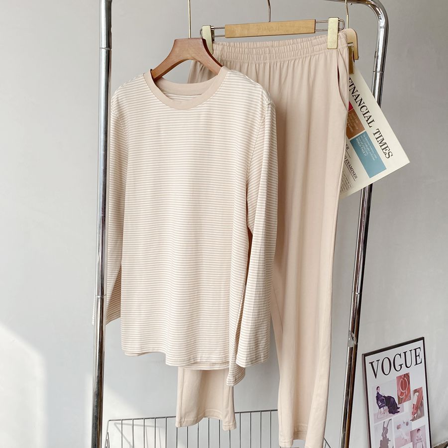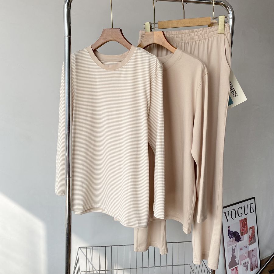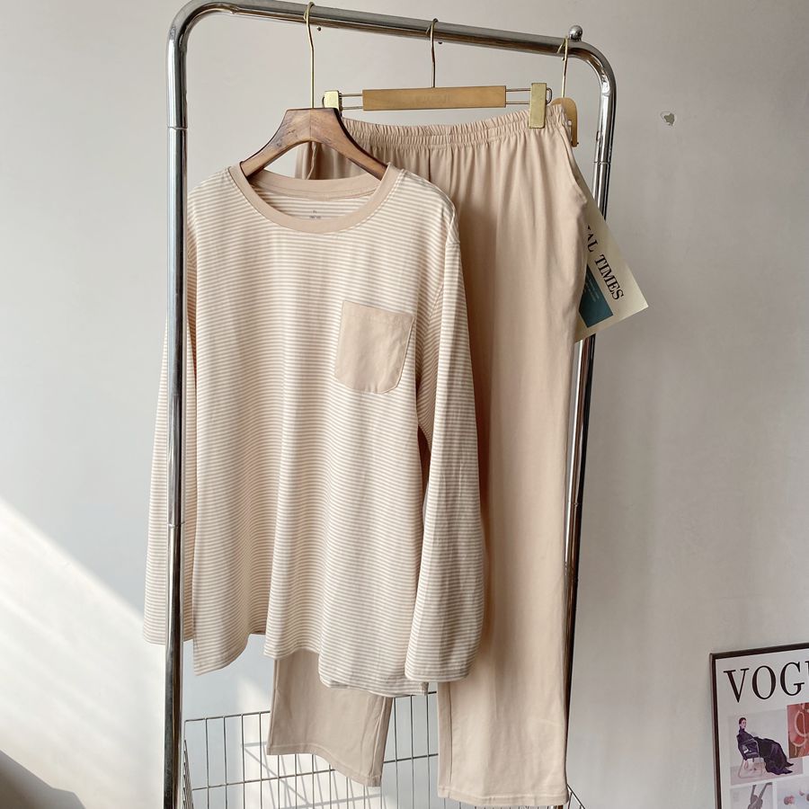 가을과 겨울 새로운 두꺼운 신장 색면 긴 소매 잠옷 세트 남성과 여성의 홈 의류 커플 잠옷 23322스토어 가기