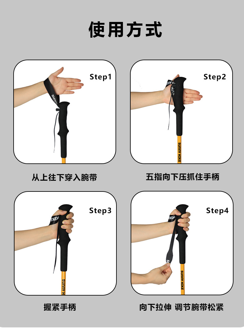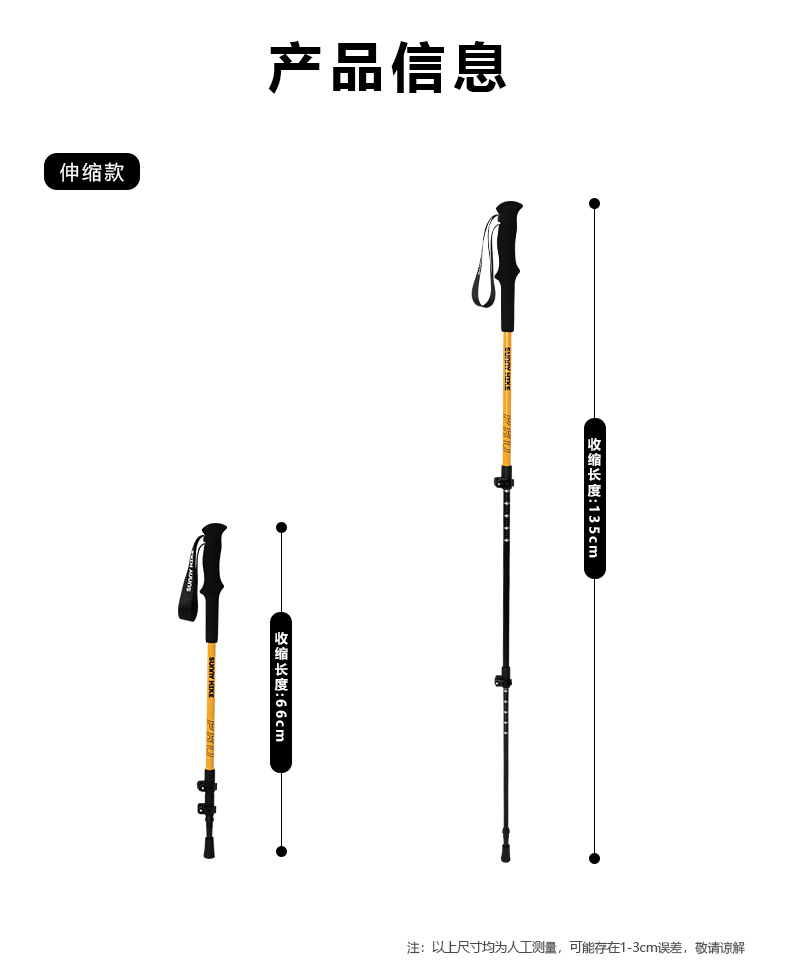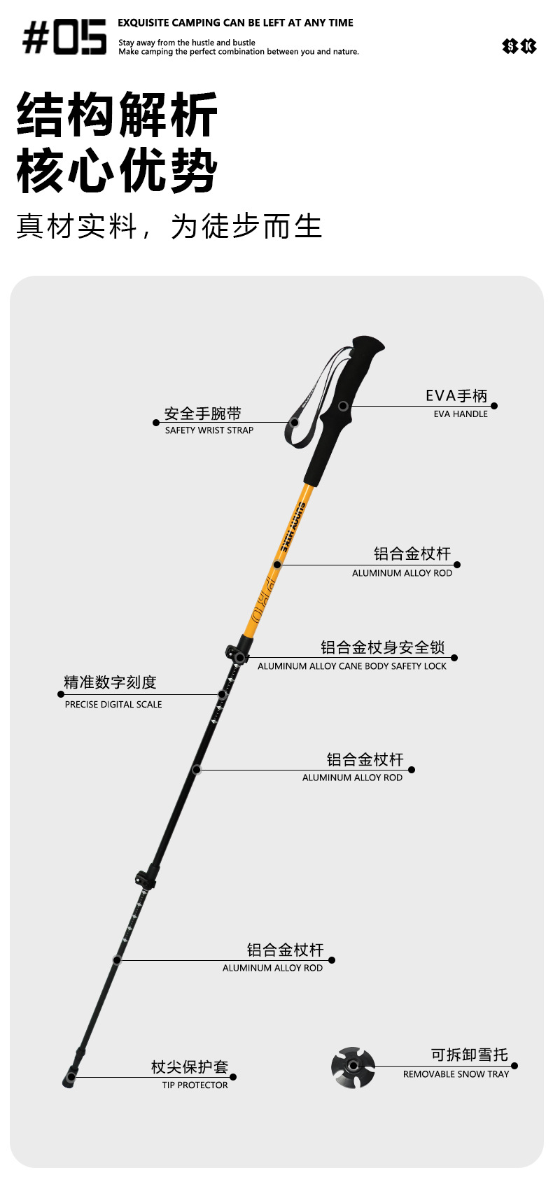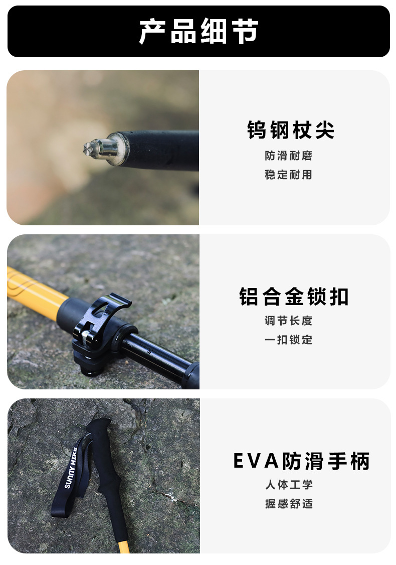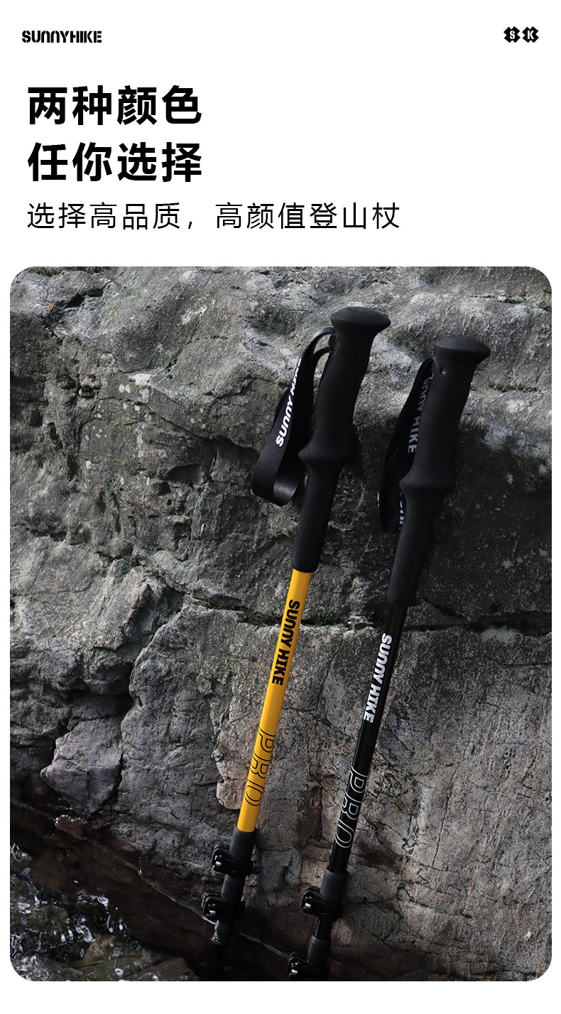 알루미늄 합금 망원경 등반 스틱 전문 등반 스틱 휴대용 야외 하이킹 장비 3 섹션 경량 미끄럼 방지 목발스토어 가기