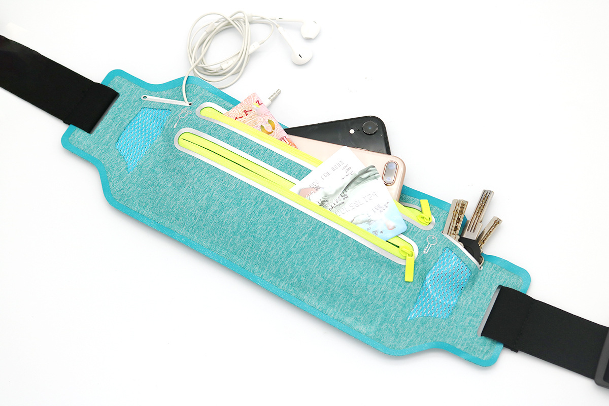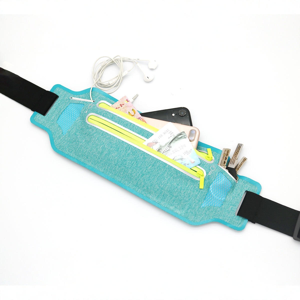 남성과 여성을 위한 고급 새로운 더블 지퍼 라이크라 방수 반사 얇은 탄성 밀착 스포츠 러닝 휴대폰 허리 가방