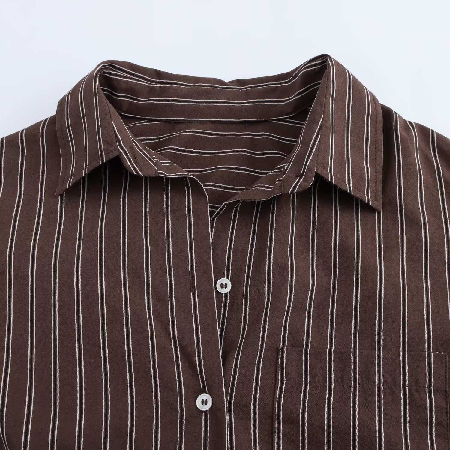대외 무역 2024 유럽과 미국의 가을 겨울 새로운 우아한 옷깃 긴 소매 싱글 브레스트 스트라이프 올 매치 셔츠 여자 3067106스토어 가기