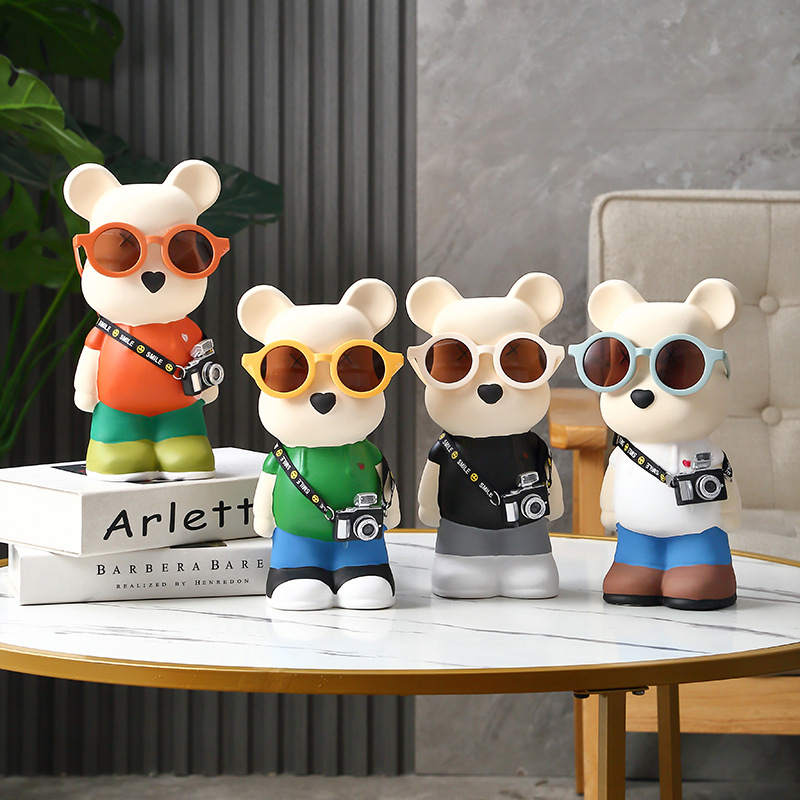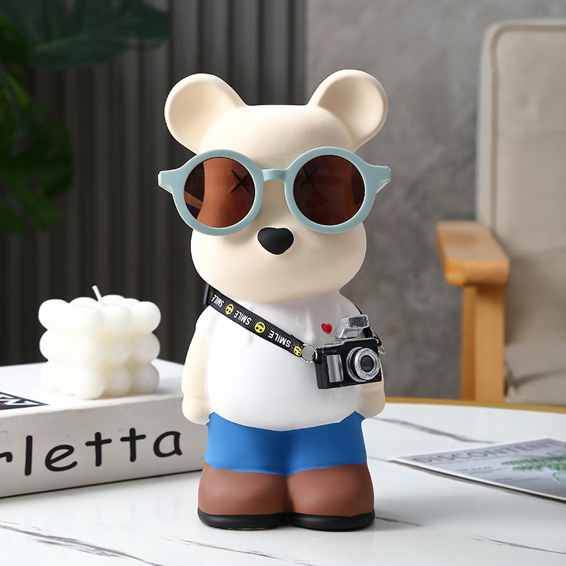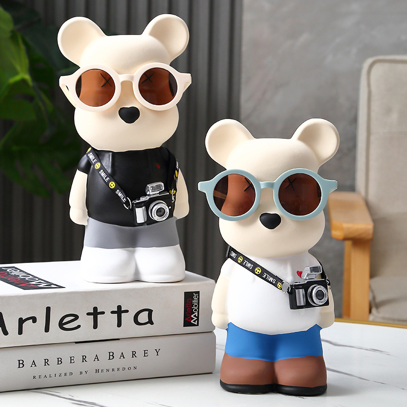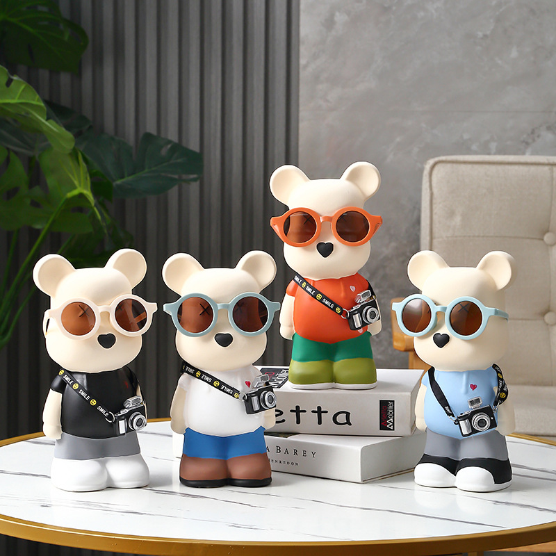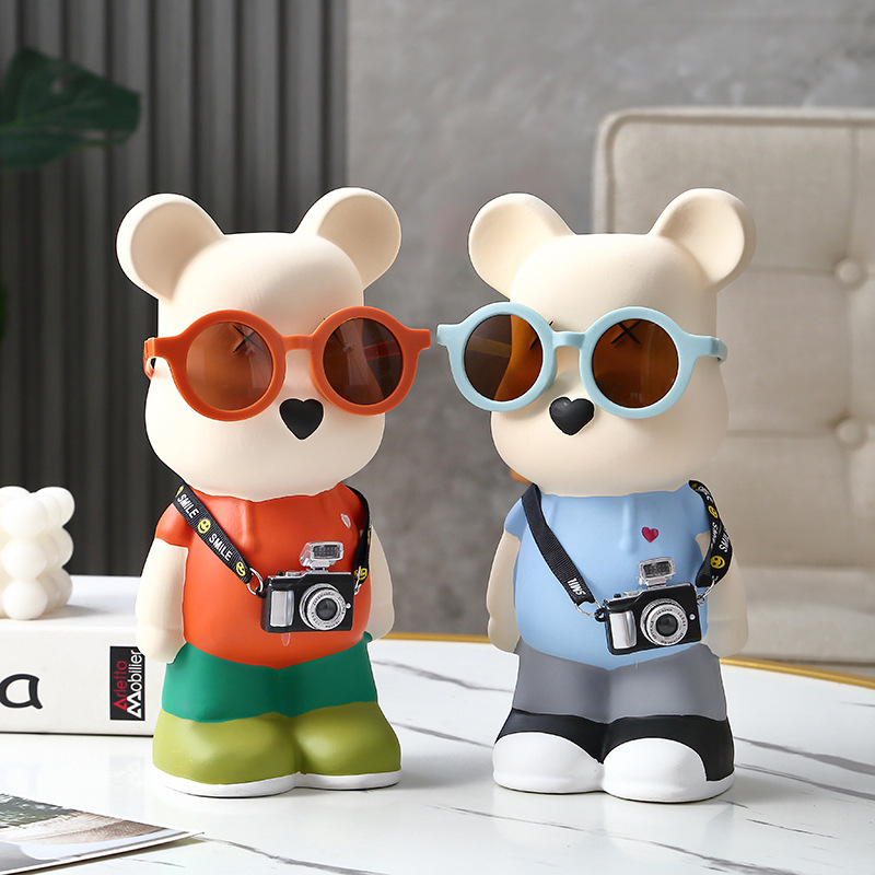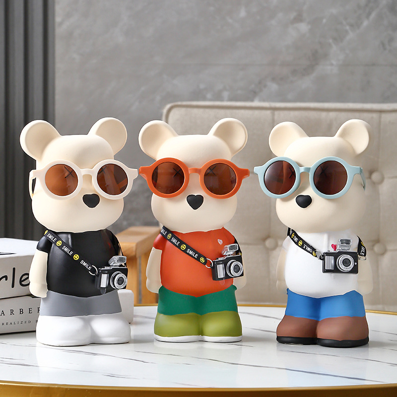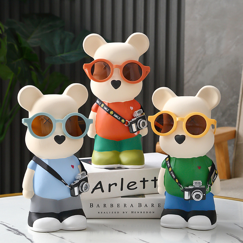 세라믹 여행 곰 장식품 큰 거실 돼지 저금통 돼지 저금통 북유럽 빛 럭셔리 장식품 선글라스 곰 만화 장식품