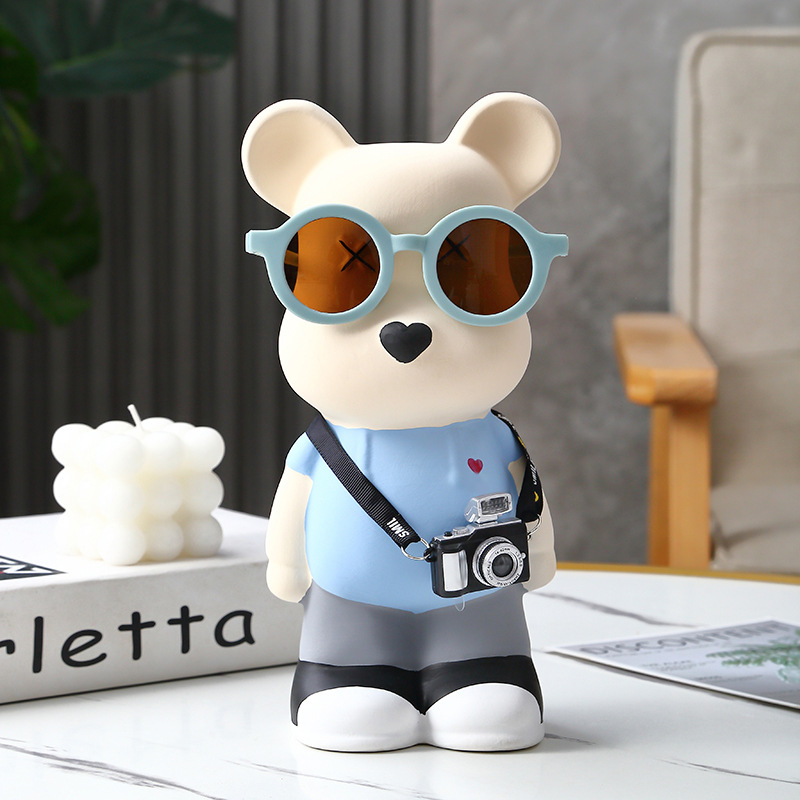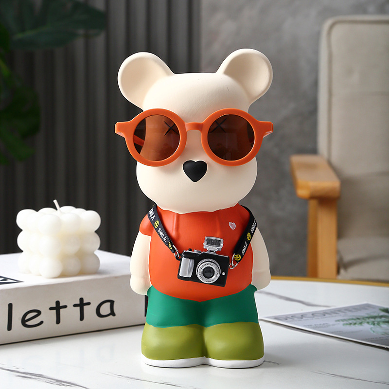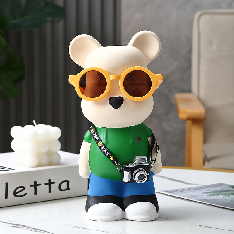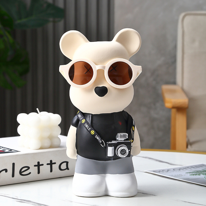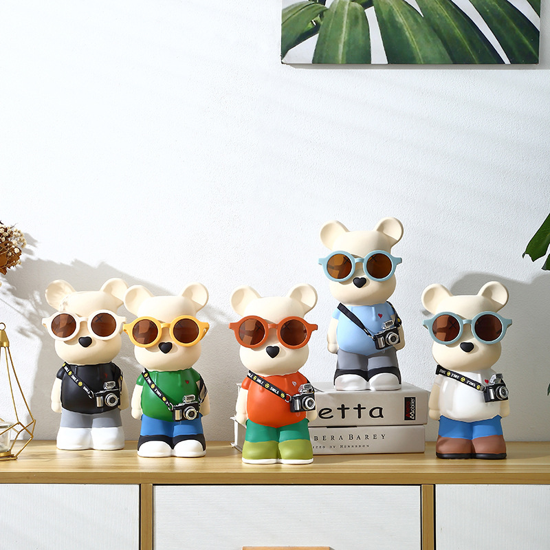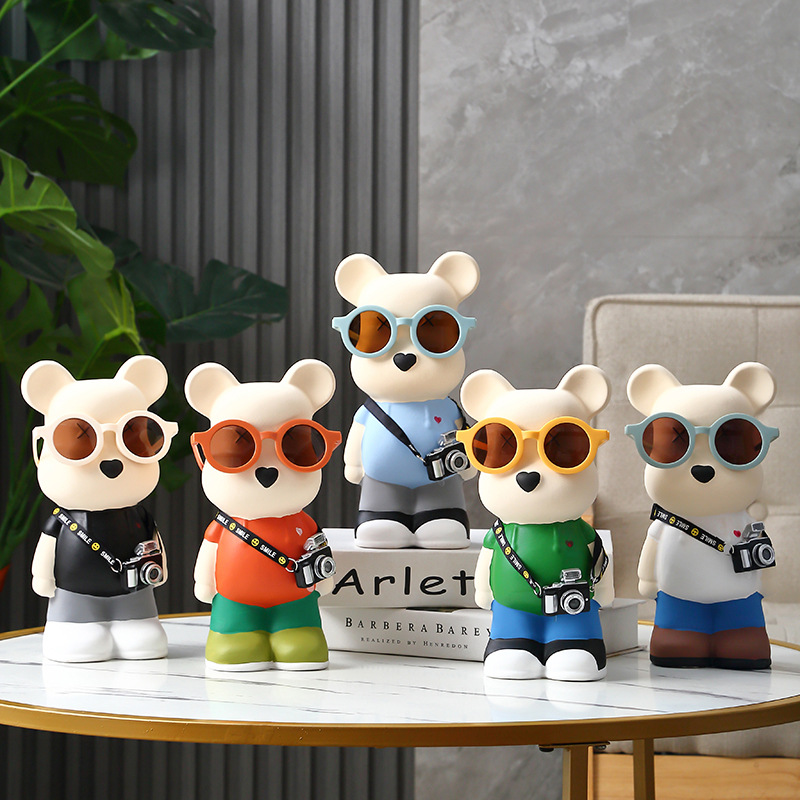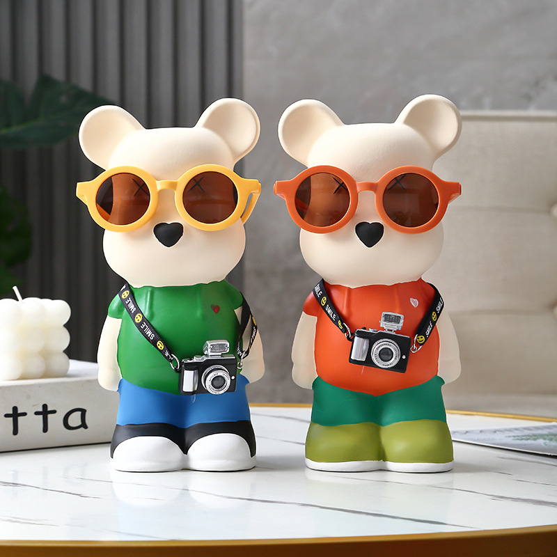 세라믹 여행 곰 장식품 큰 거실 돼지 저금통 돼지 저금통 북유럽 빛 럭셔리 장식품 선글라스 곰 만화 장식품