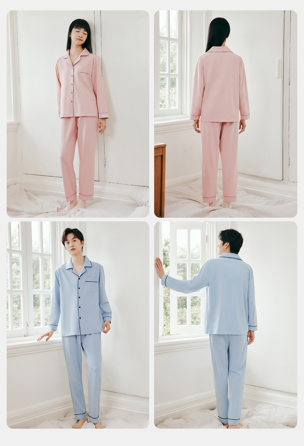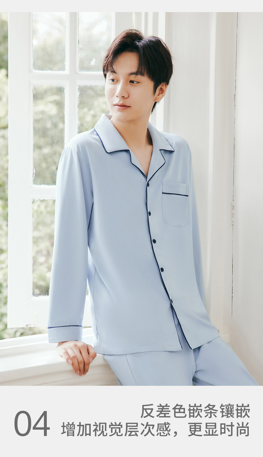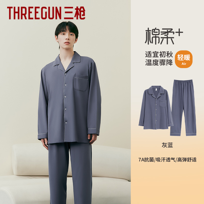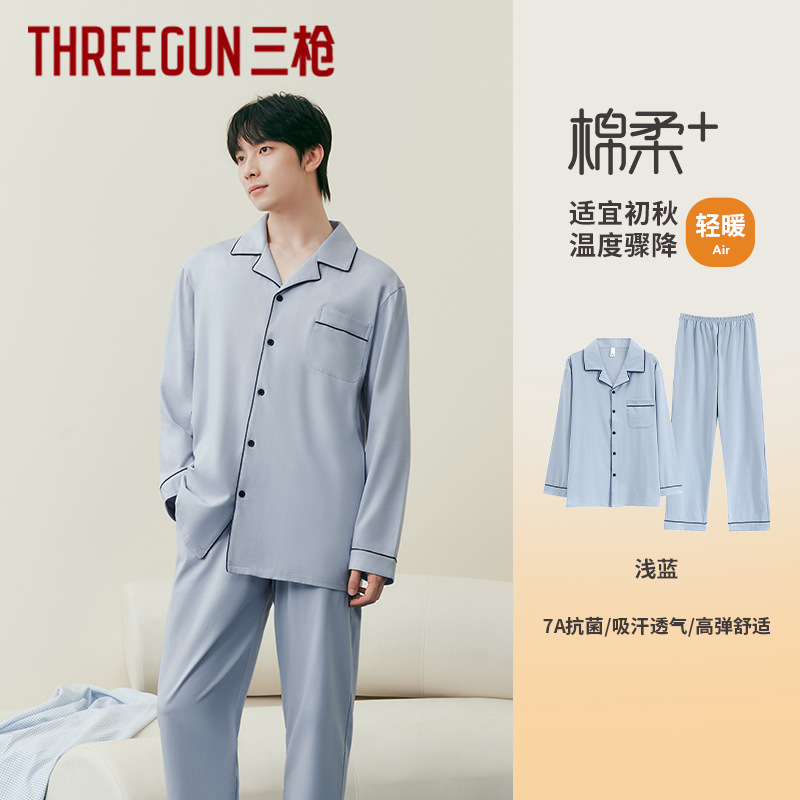 3 발 남자 잠옷 가을과 겨울 얇은 순면 세트 긴 소매 옷깃 카디건 파자마 홈 옷스토어 가기