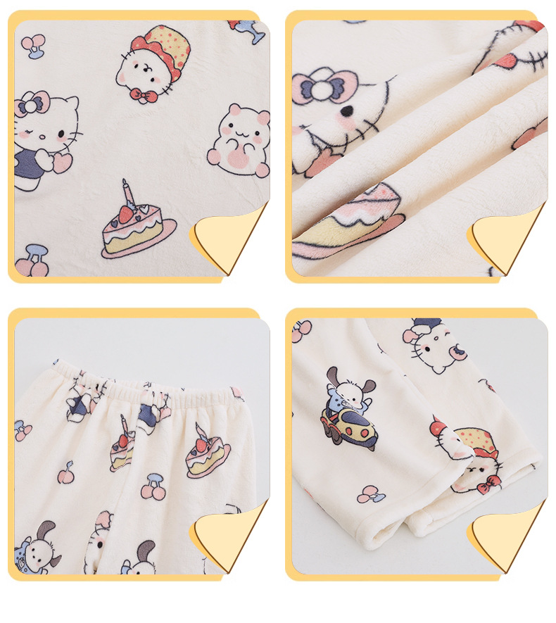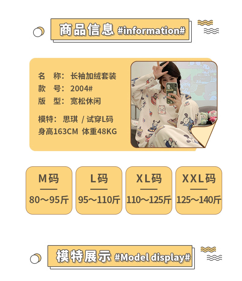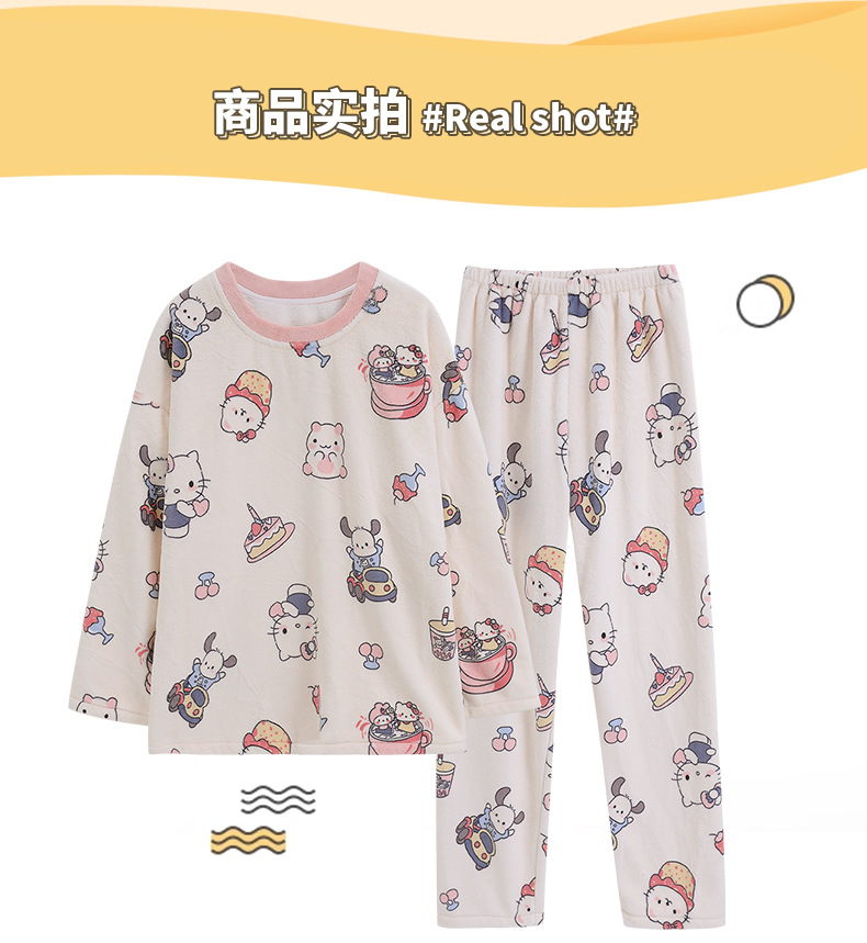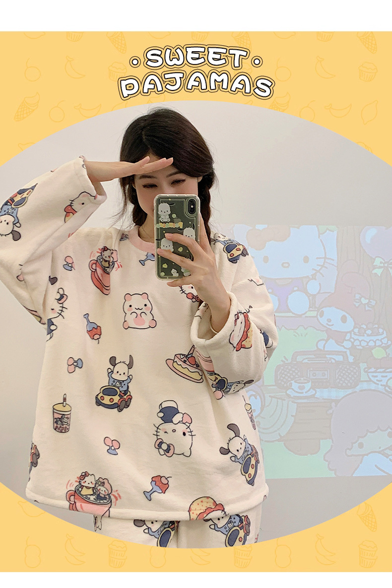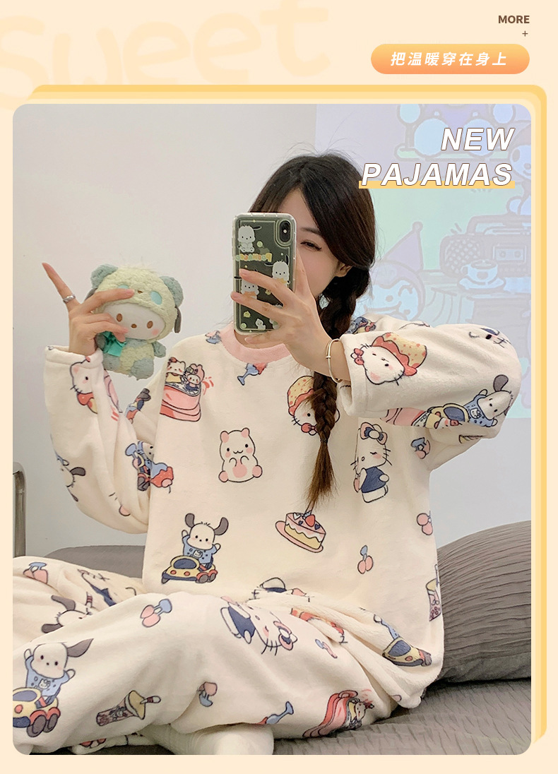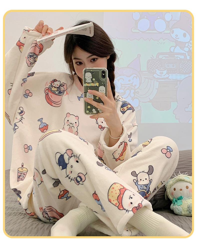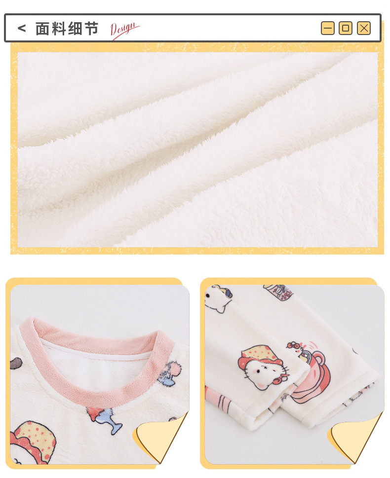 Ins Pajamas 여성의 겨울 산호 양털 기모 따뜻한 가을과 겨울 학생 귀여운 만화 긴 소매 플란넬 홈 옷스토어 가기