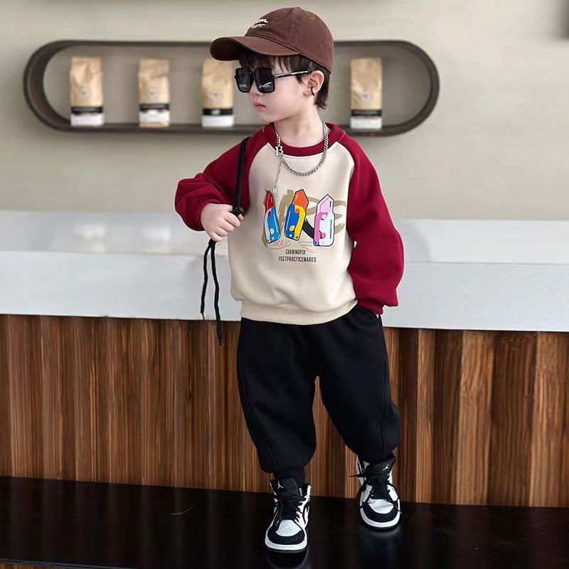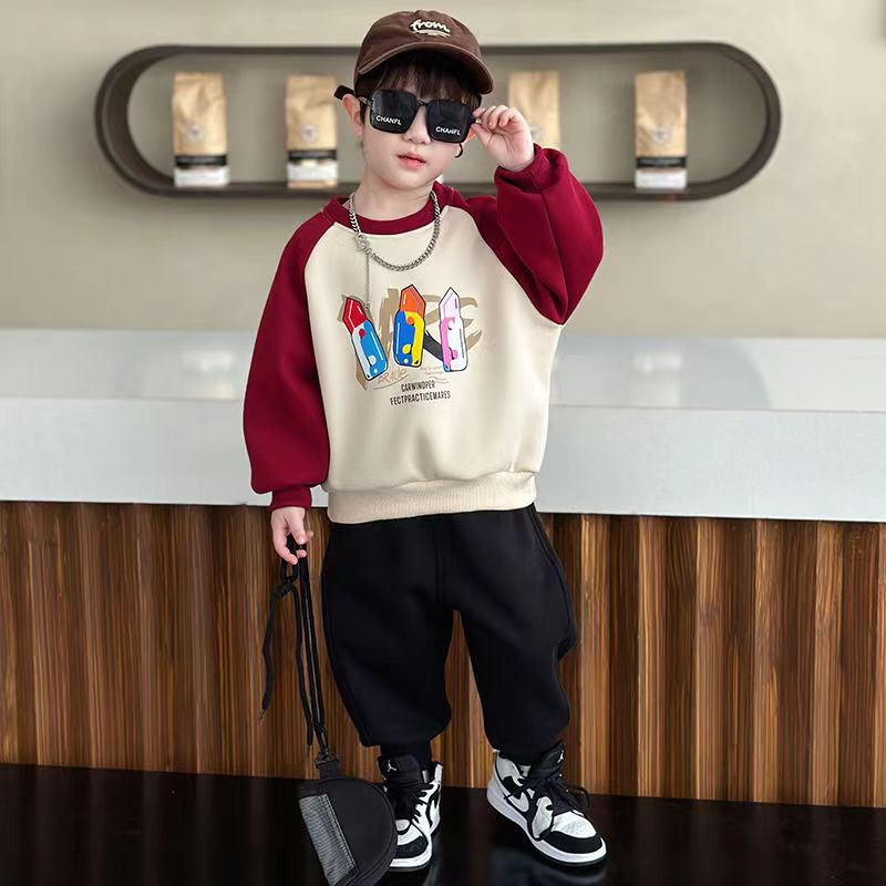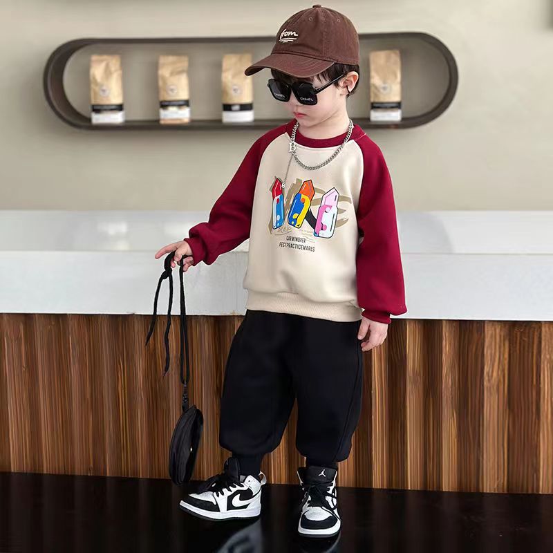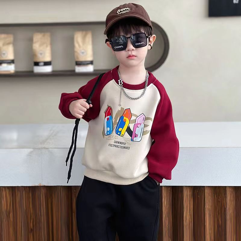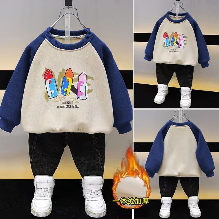 2025 가을 겨울 아동용 기모 두꺼운 스웨트셔츠, 유아 및 어린이 캐주얼 상의, 트렌디한 디자인