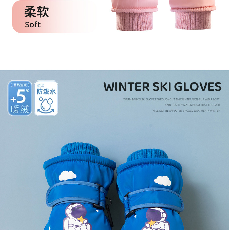 어린이 스키 장갑 겨울 소년과 소녀 소년 소녀 놀이 눈 방수 기모 두꺼운 면 손가락 따뜻한 장갑