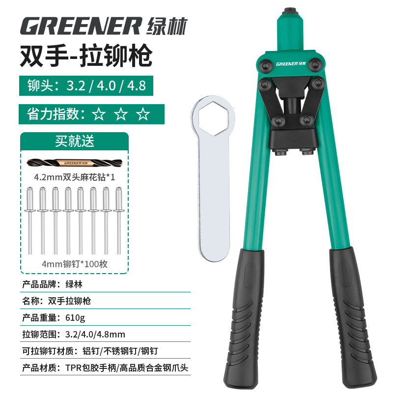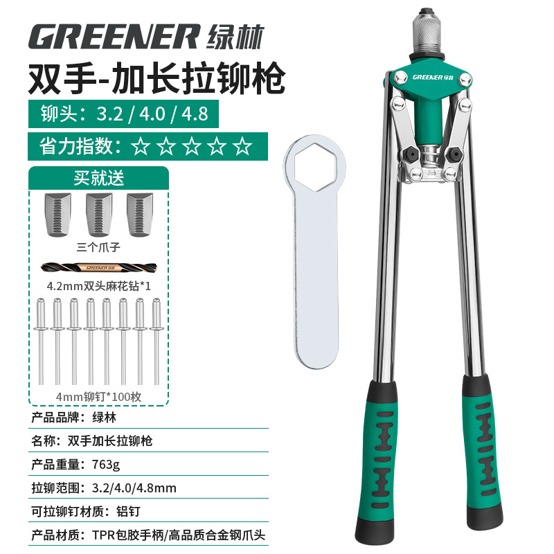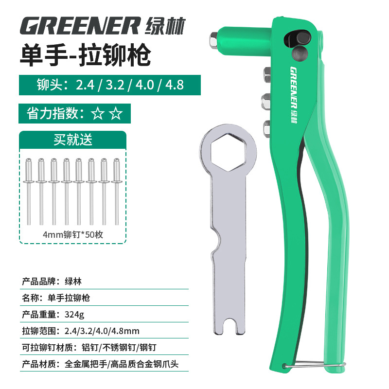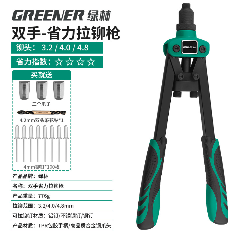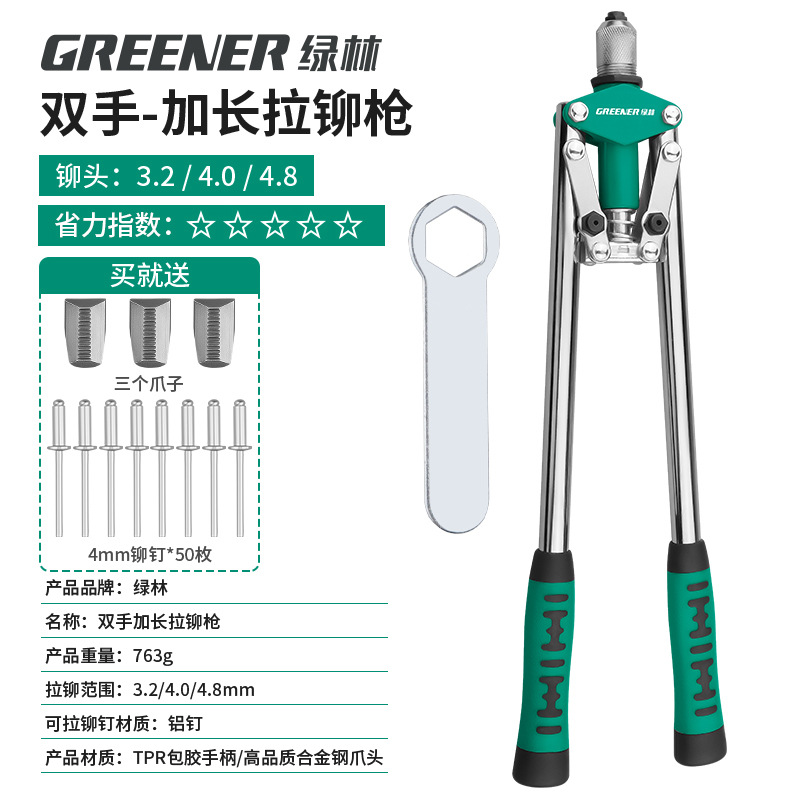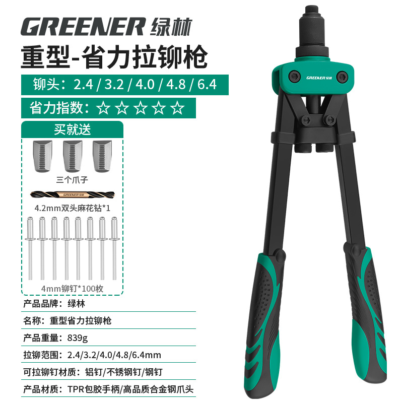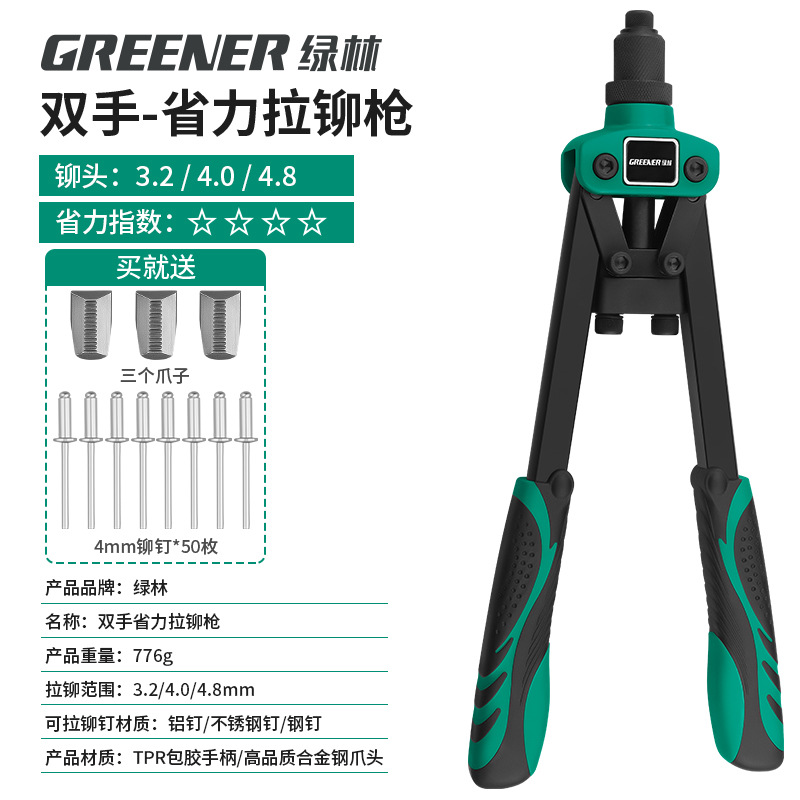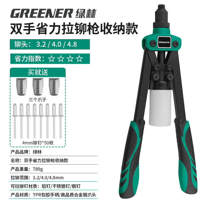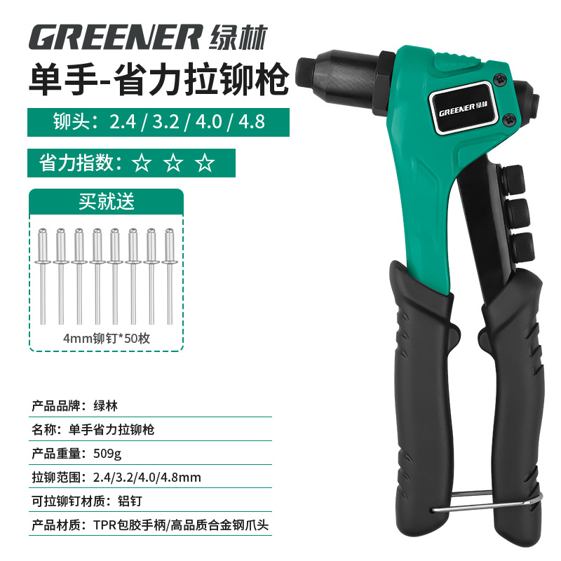 녹색 숲 리벳 총 수동 리벳 건 너트 네일 홈 코어 풀 노동 절약 네일 잡아 라틴어